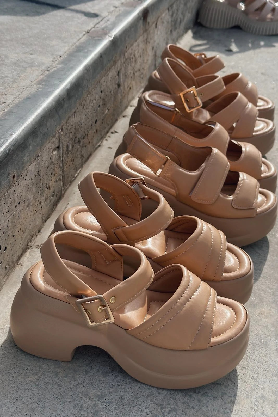Mogres Mat Deri Cırt Cırt Kalın Taban Kadın Sandalet Nude