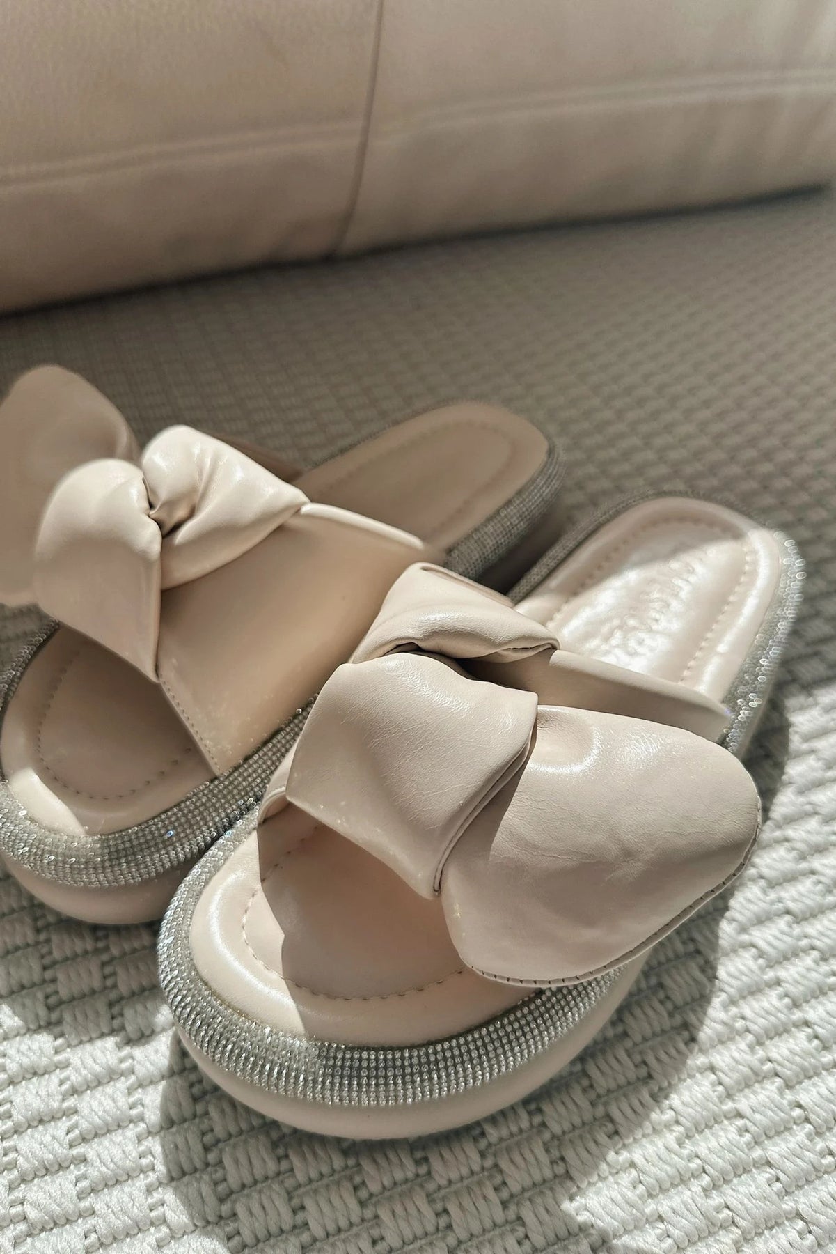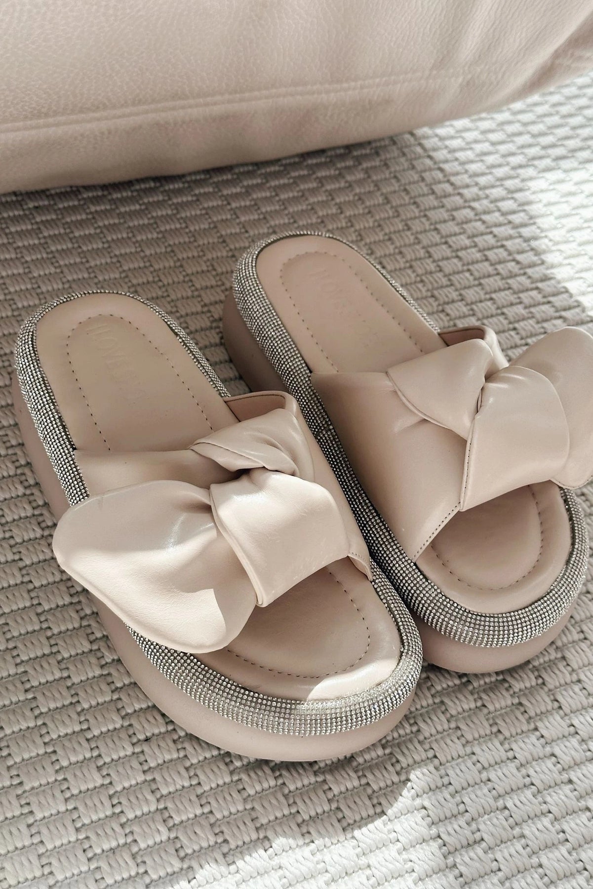 Monnet Mat Deri Kurdele Detaylı Kadın Terlik Bej