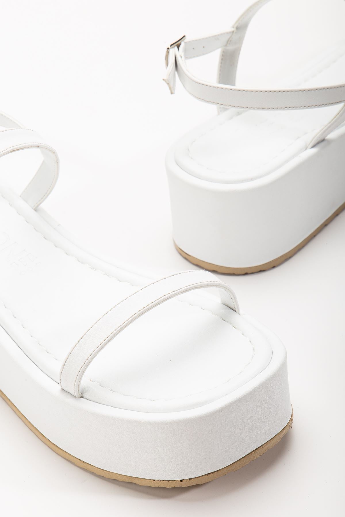 Alveris Mat Beyaz Dolgu Topuklu Kadın Sandalet