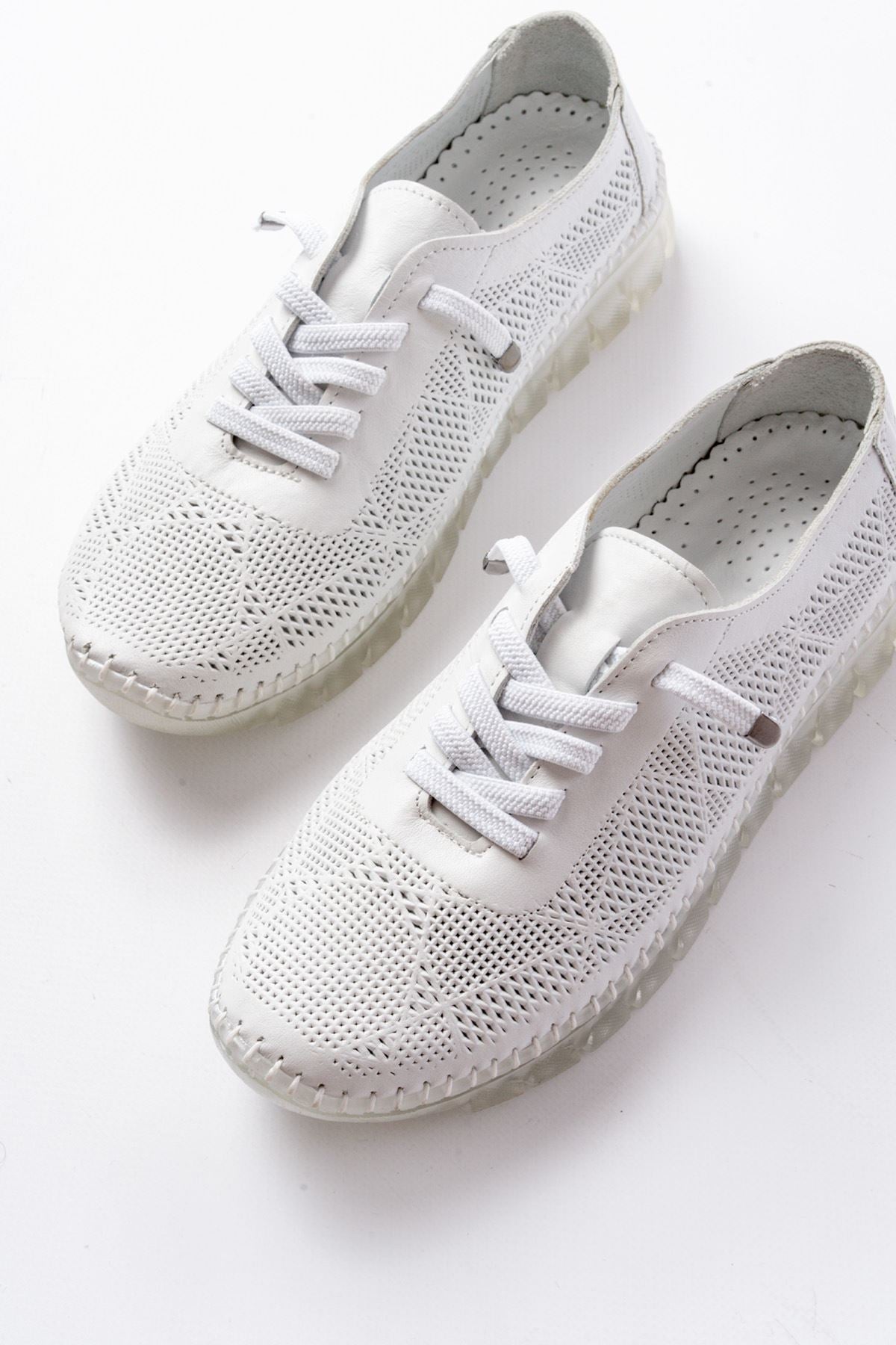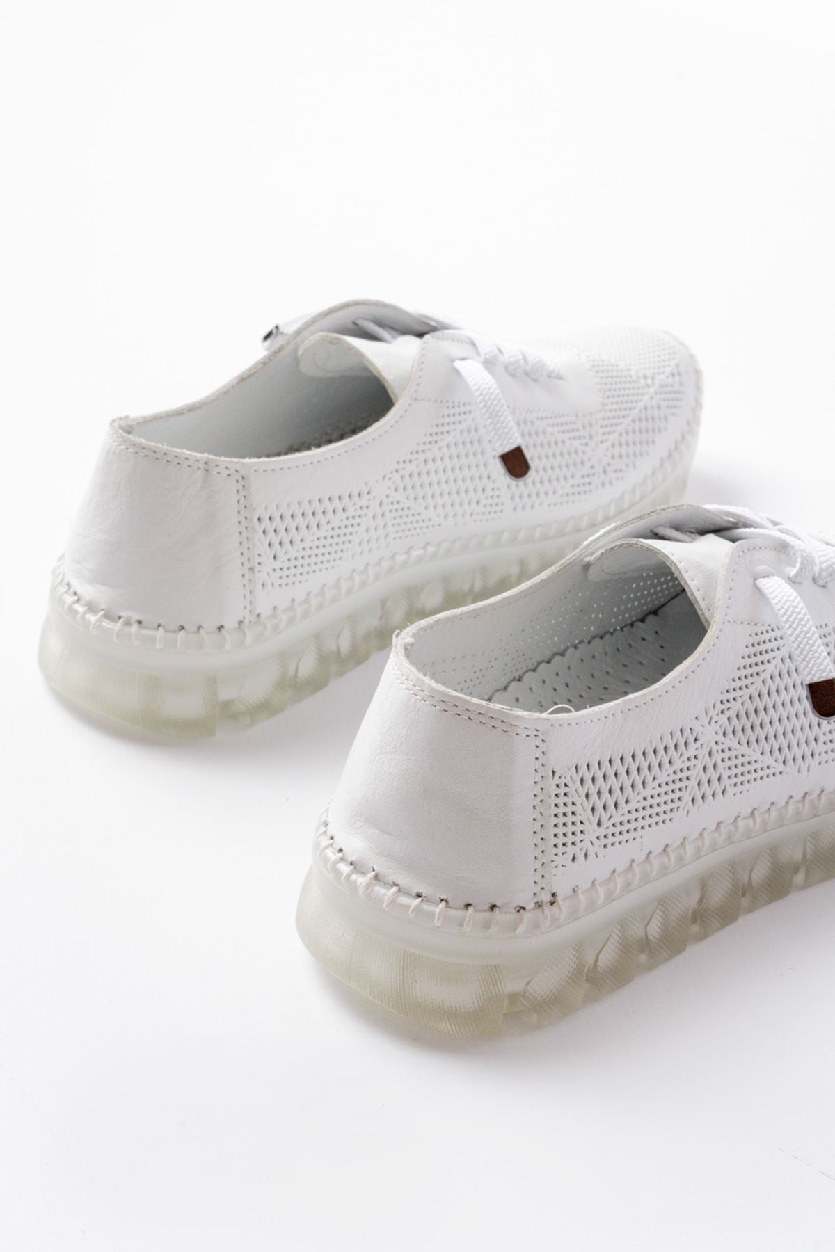 Narissa Hakiki Deri Beyaz Şeffaf Taban Kadın Spor Ayakkabı