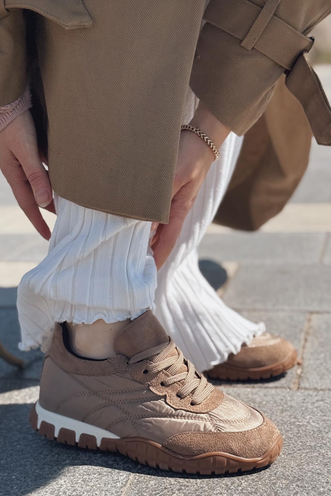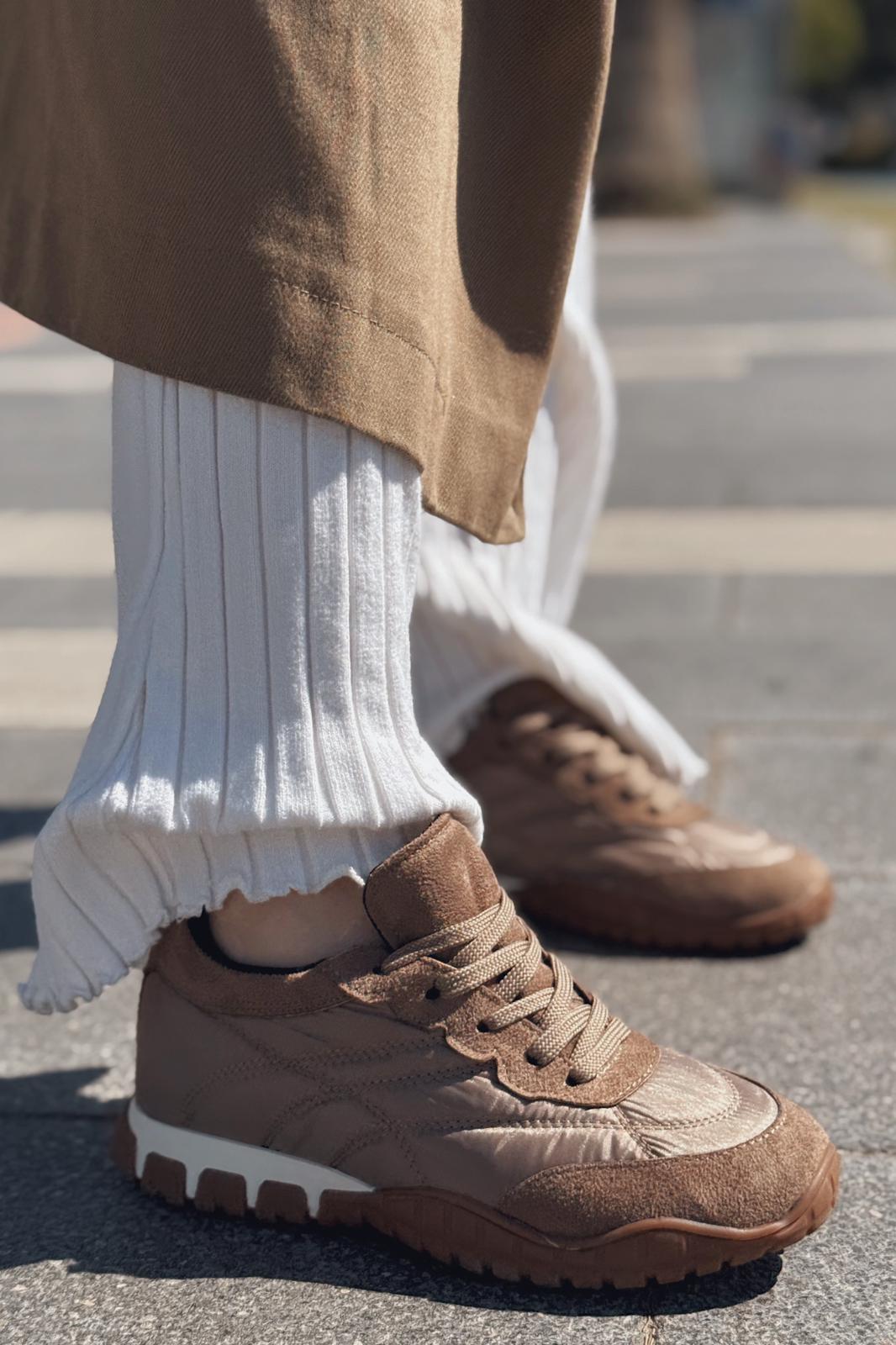 Romine Paraşüt Kumaş Bej Kadın Spor Ayakkabı - ILOVESHOES