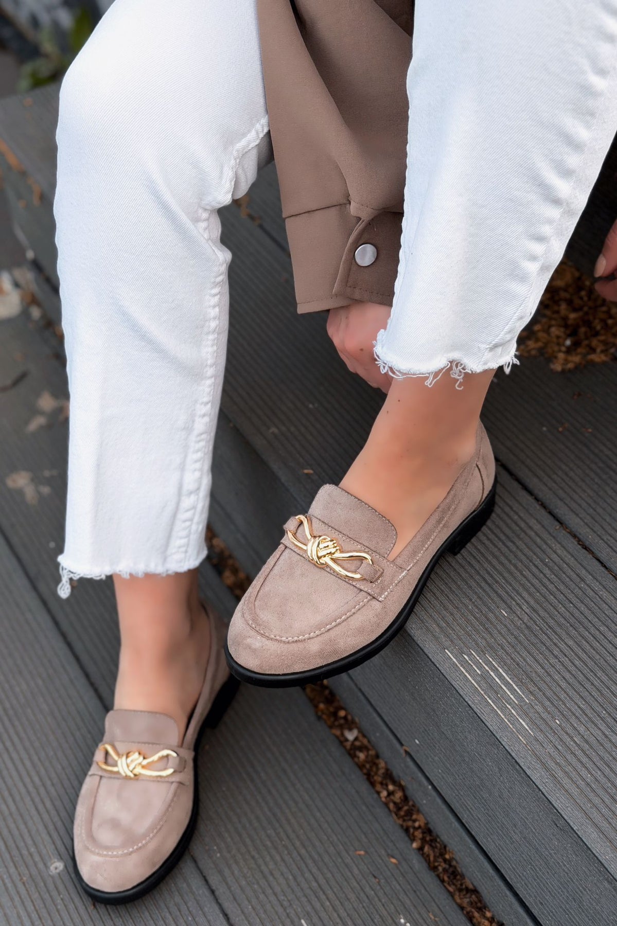 Norel Kadın Loafer Vizon Süet Fiyonk Detaylı - ILOVESHOES