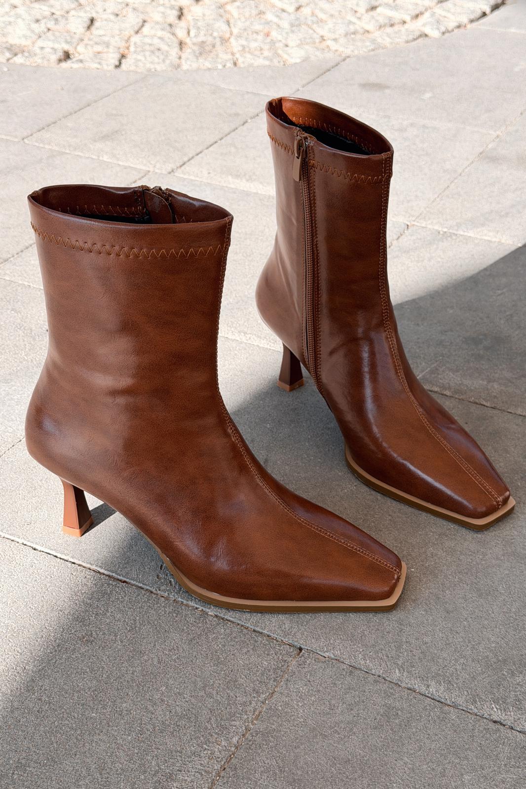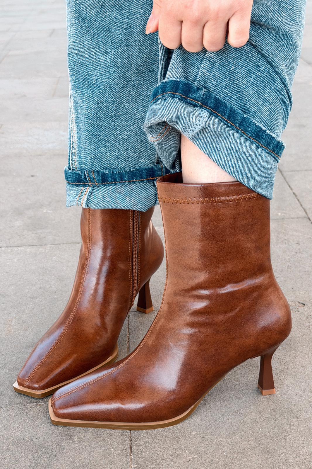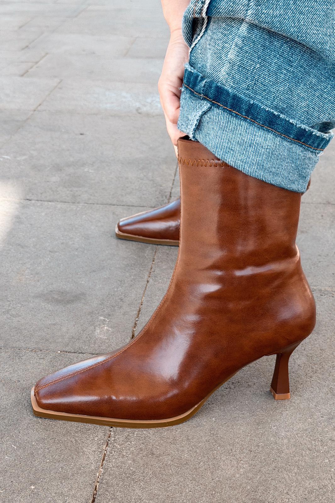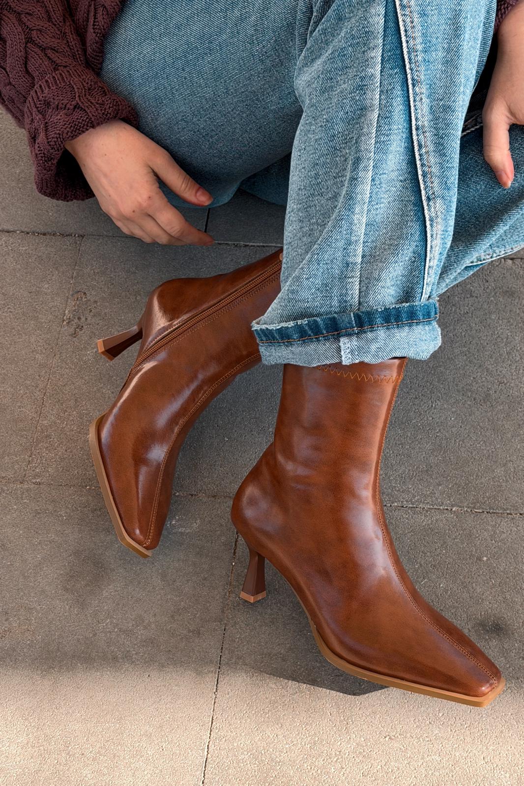 Alderie Kadın Topuklu Bot Taba Mat Deri