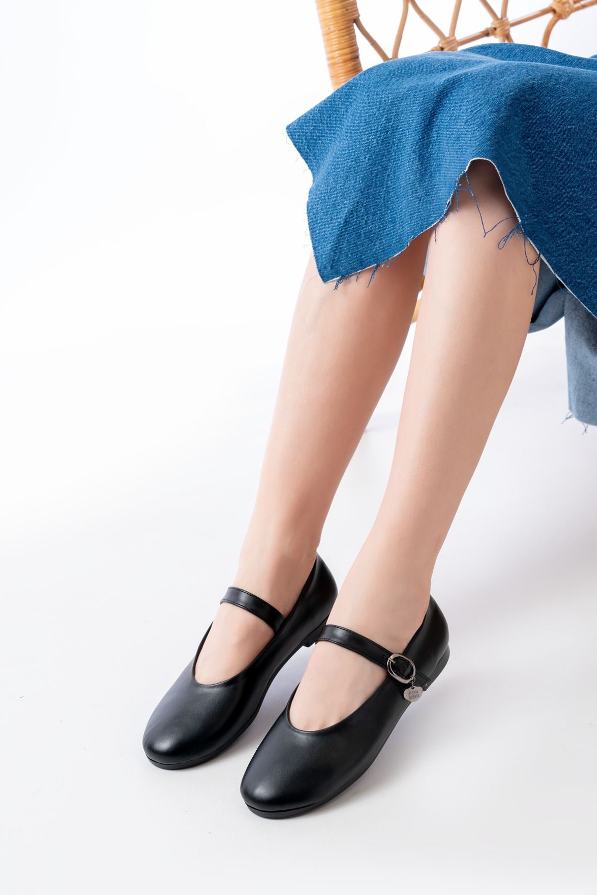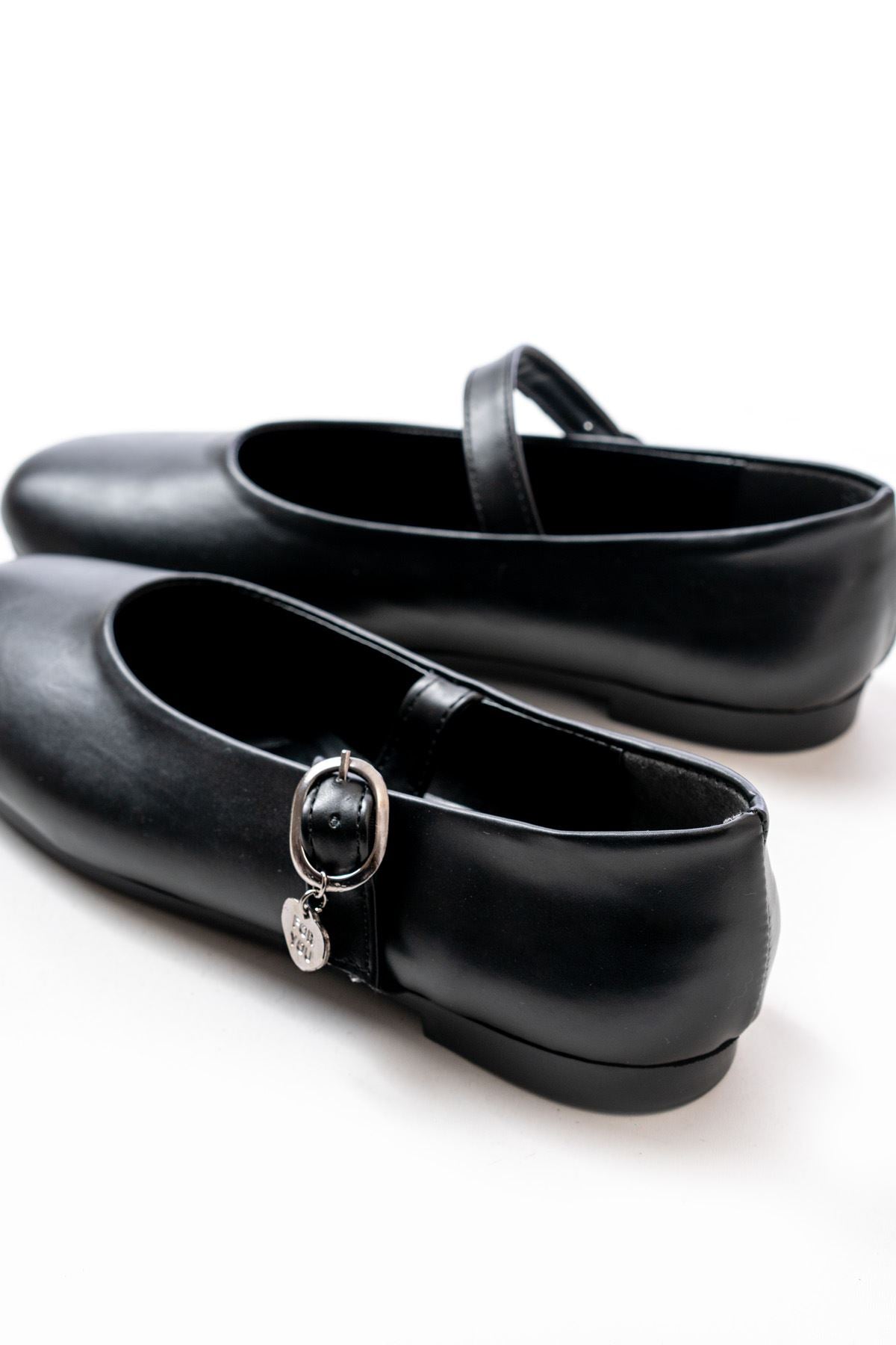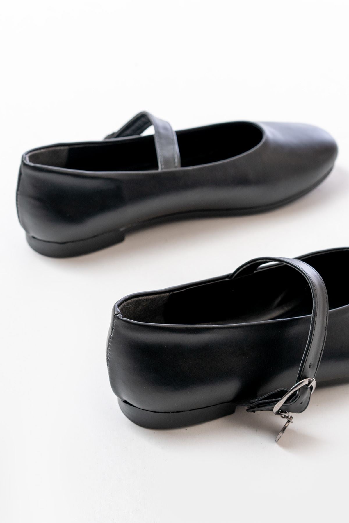 Altren Mat Deri Siyah Kadın Babet
