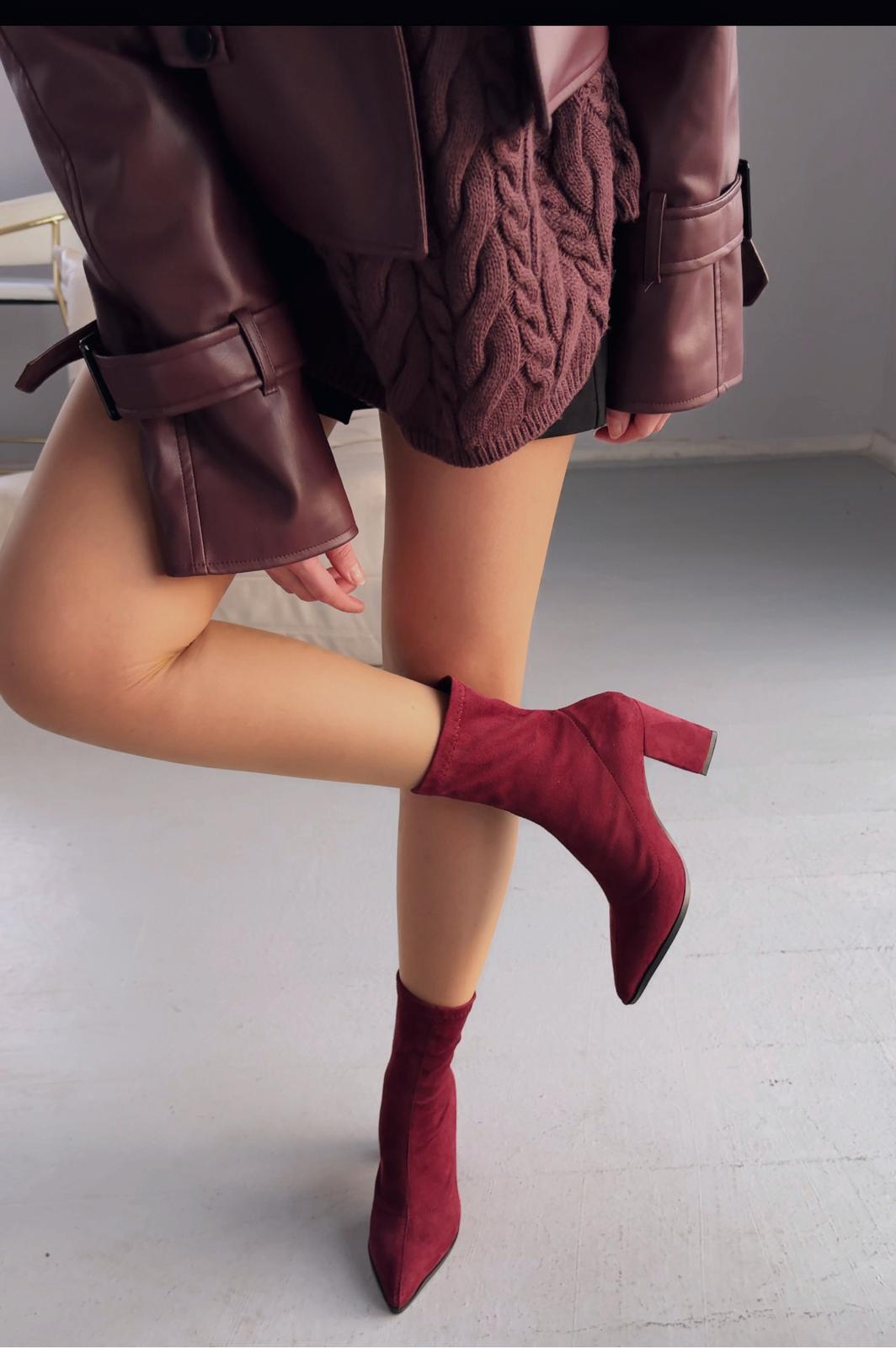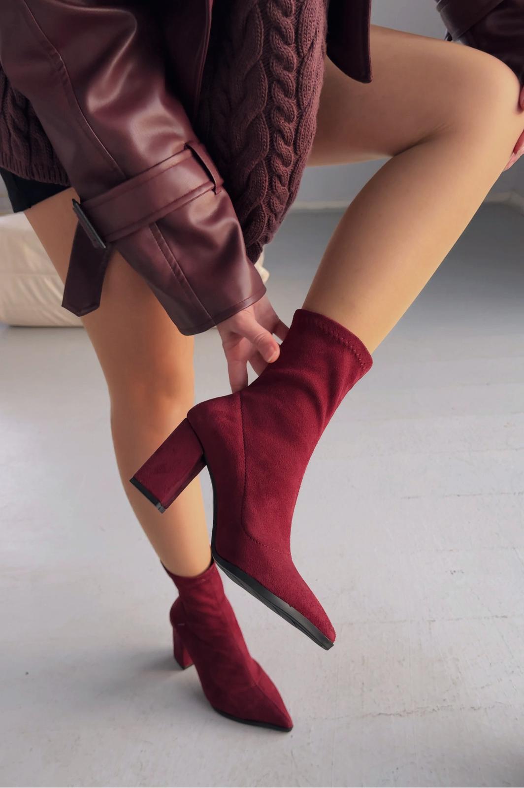 Ardews Süet Topuklu Çorap Bot Bordo