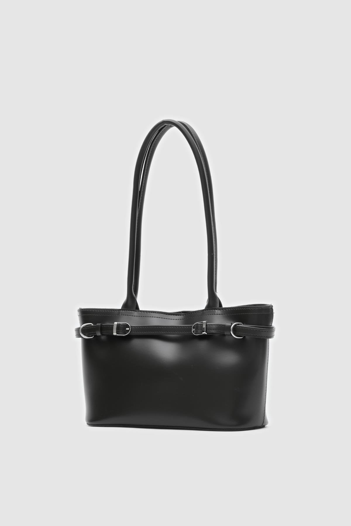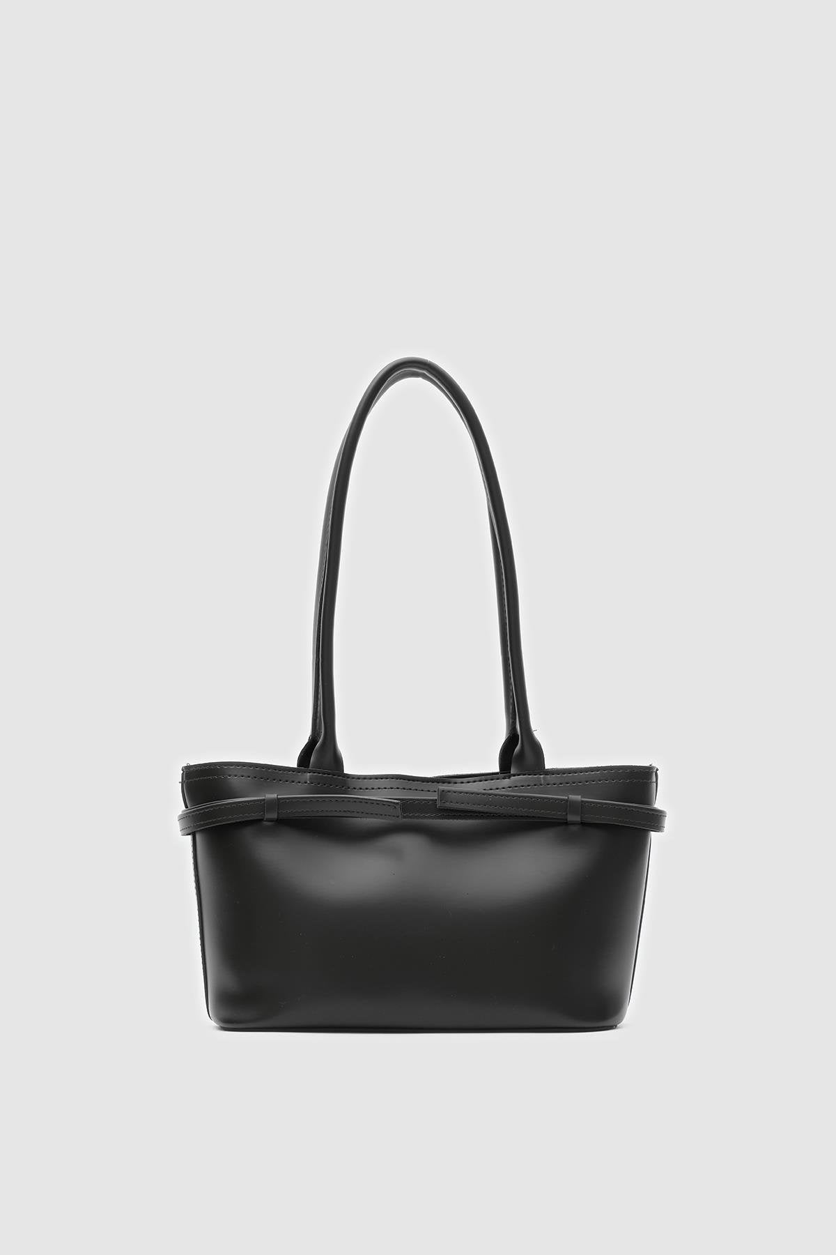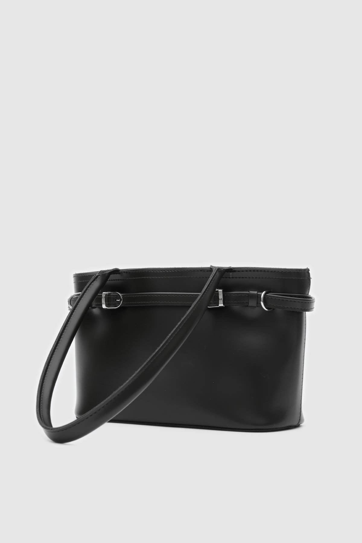 Aurin Omuz Çantası Siyah Mat Deri