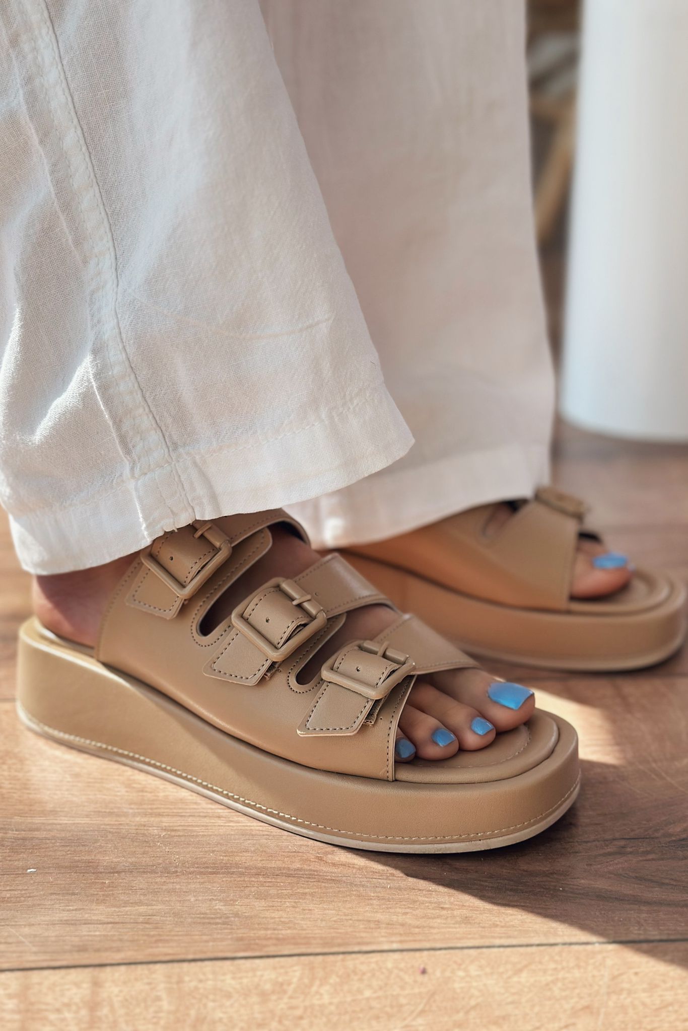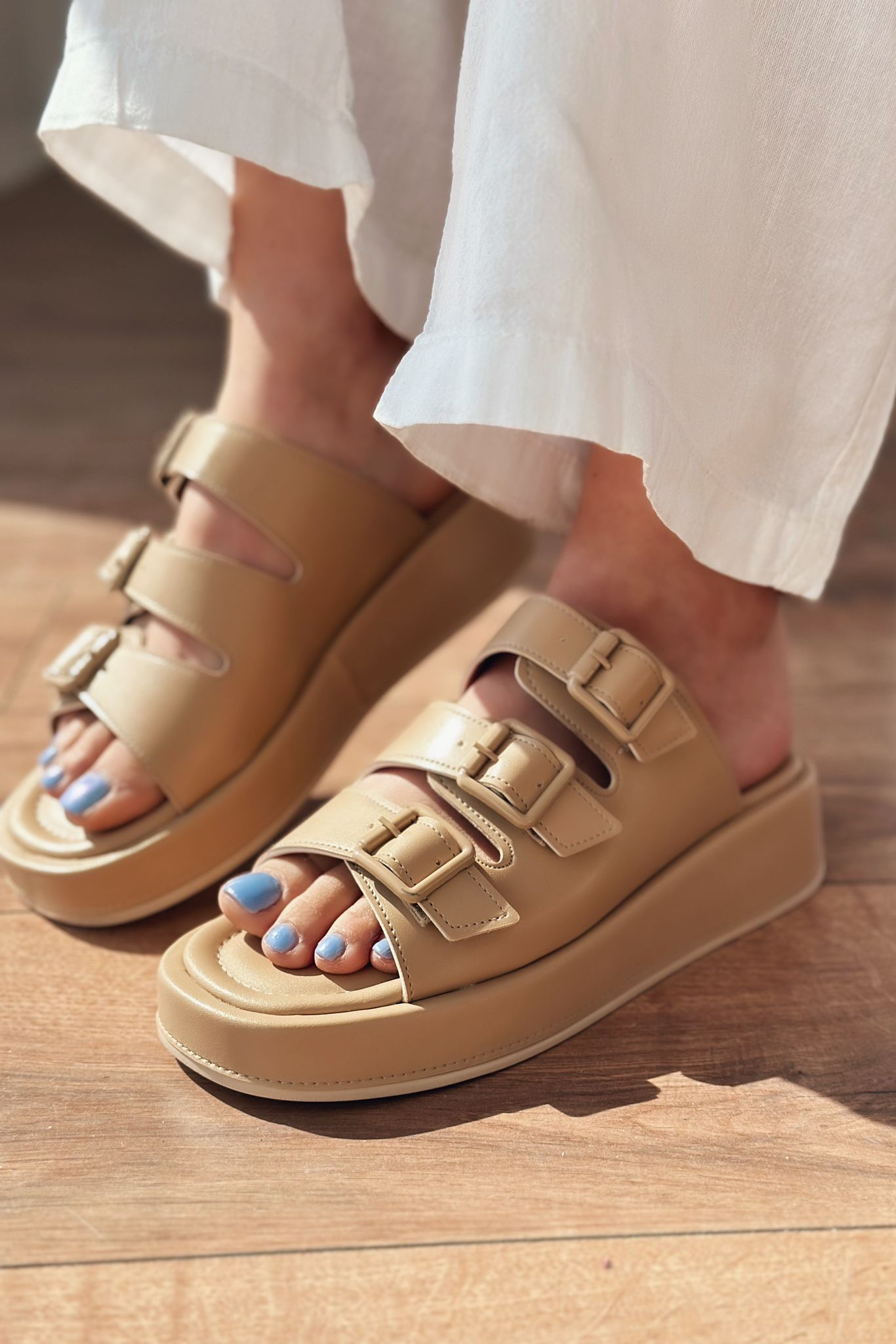 Bertix Mat Deri Toka Detaylı Kadın Terlik Nude