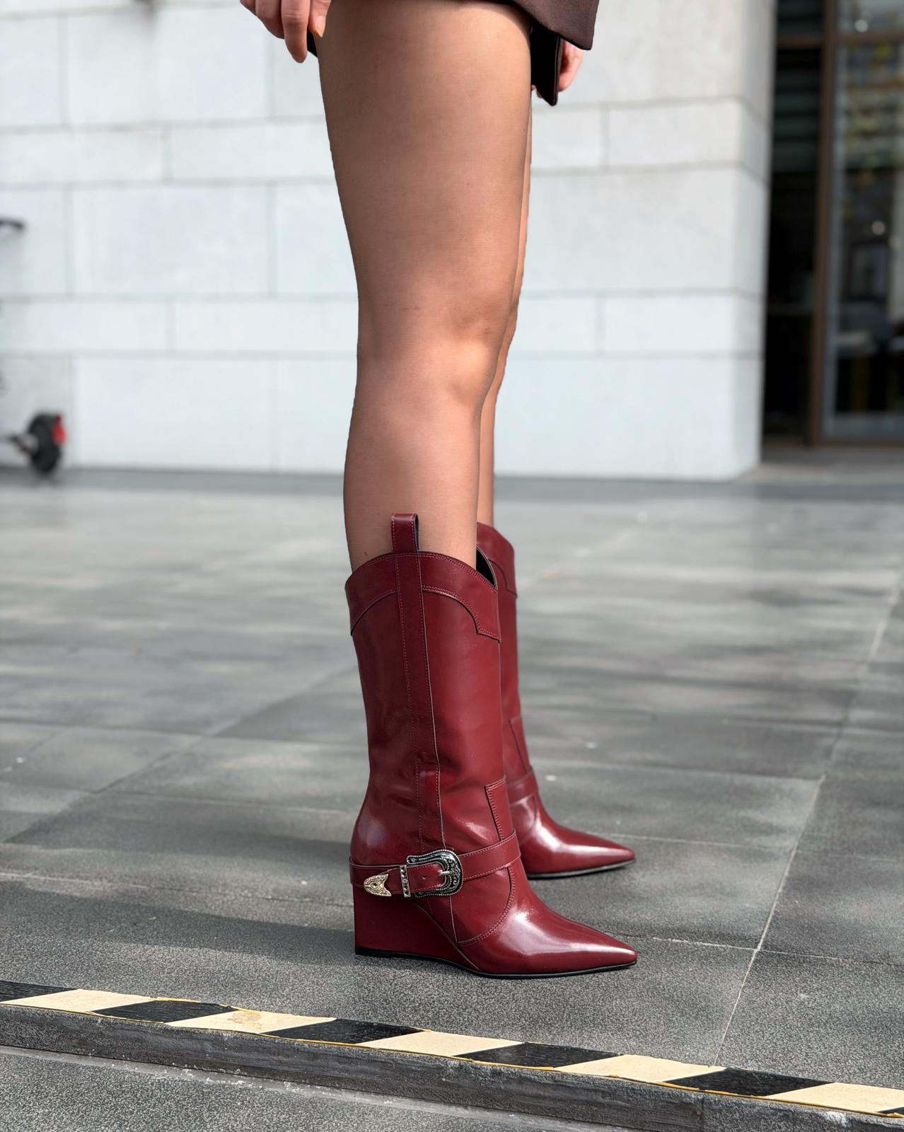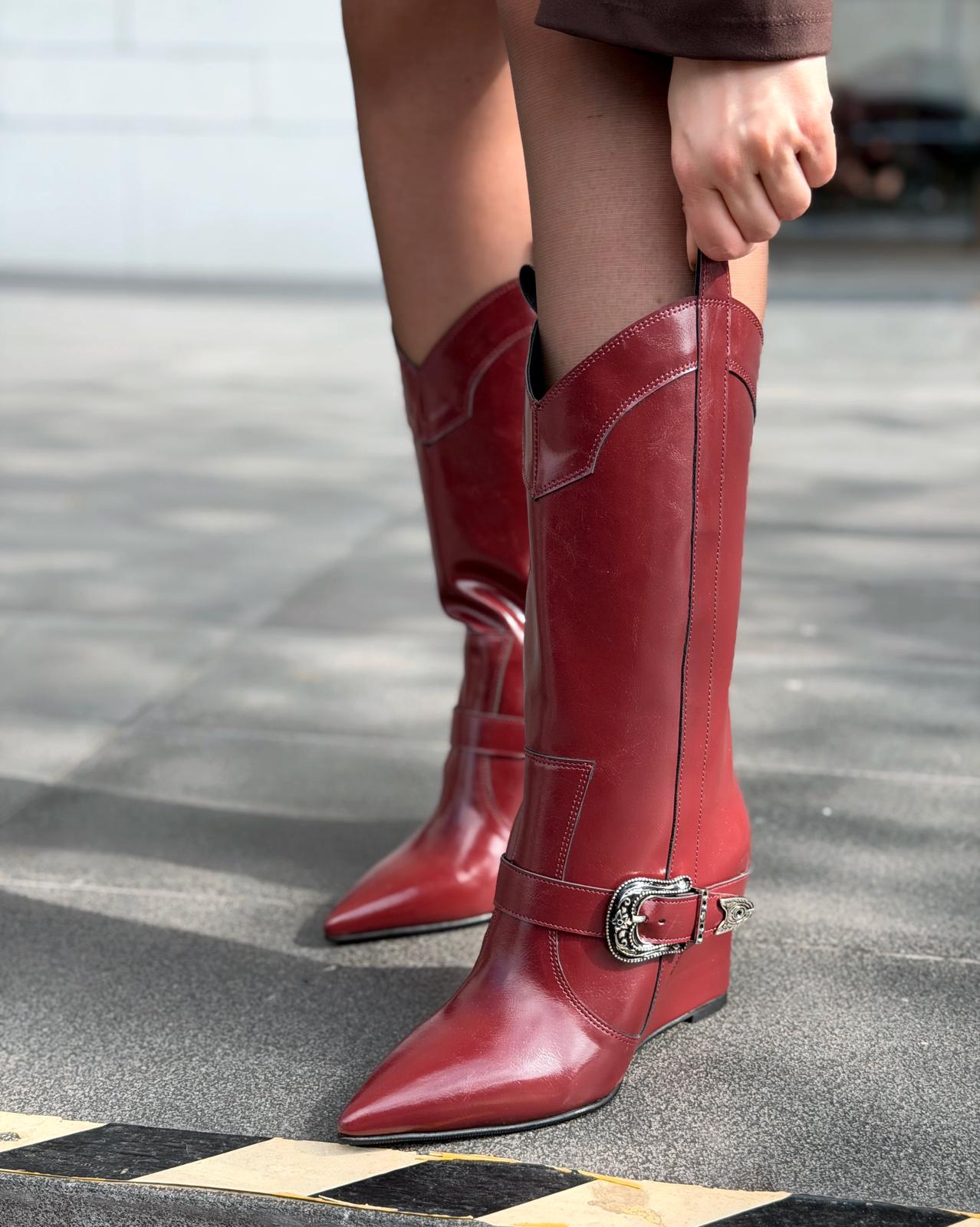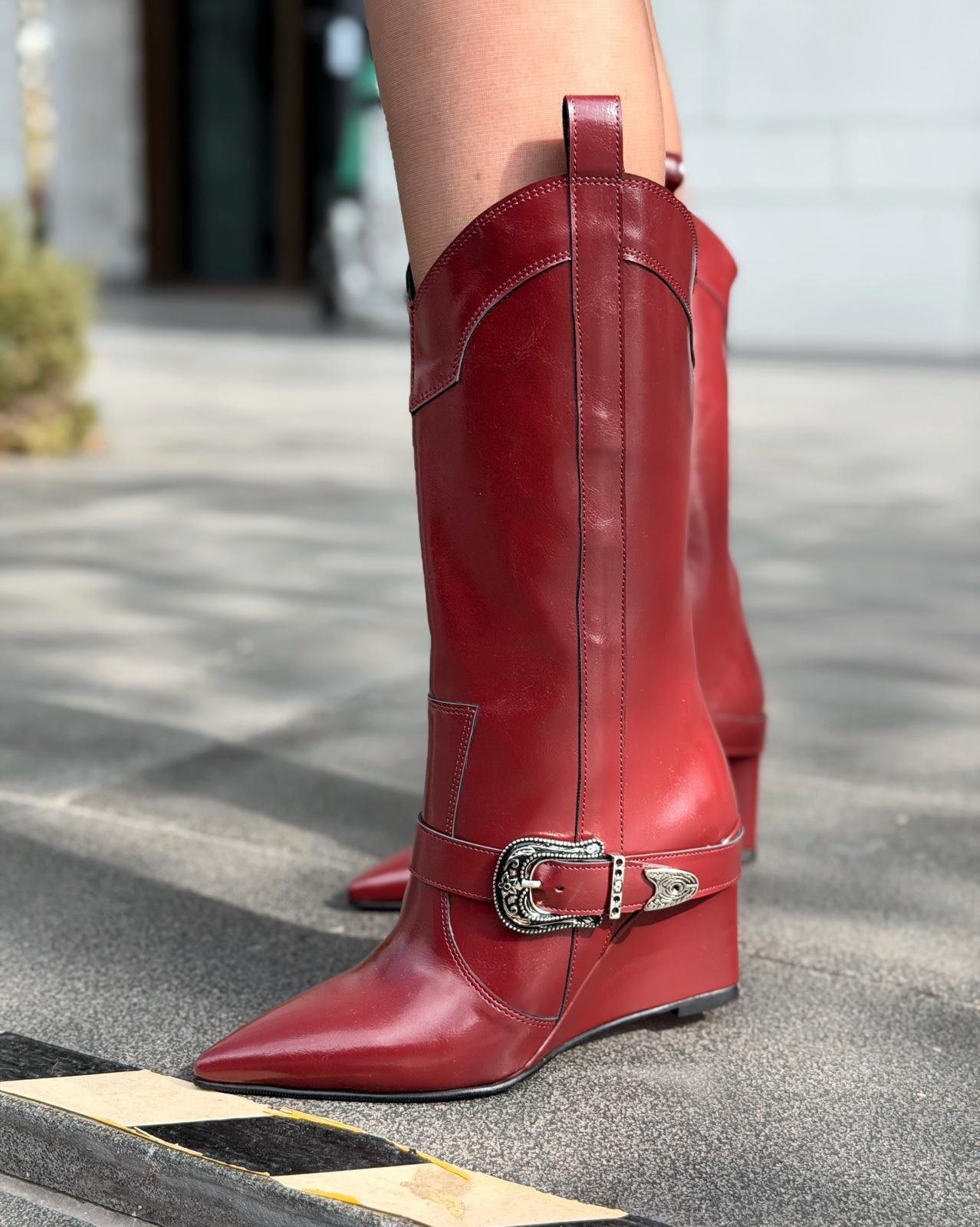 Bonvir Kadın Kovboy Çizme BordoParlak Deri