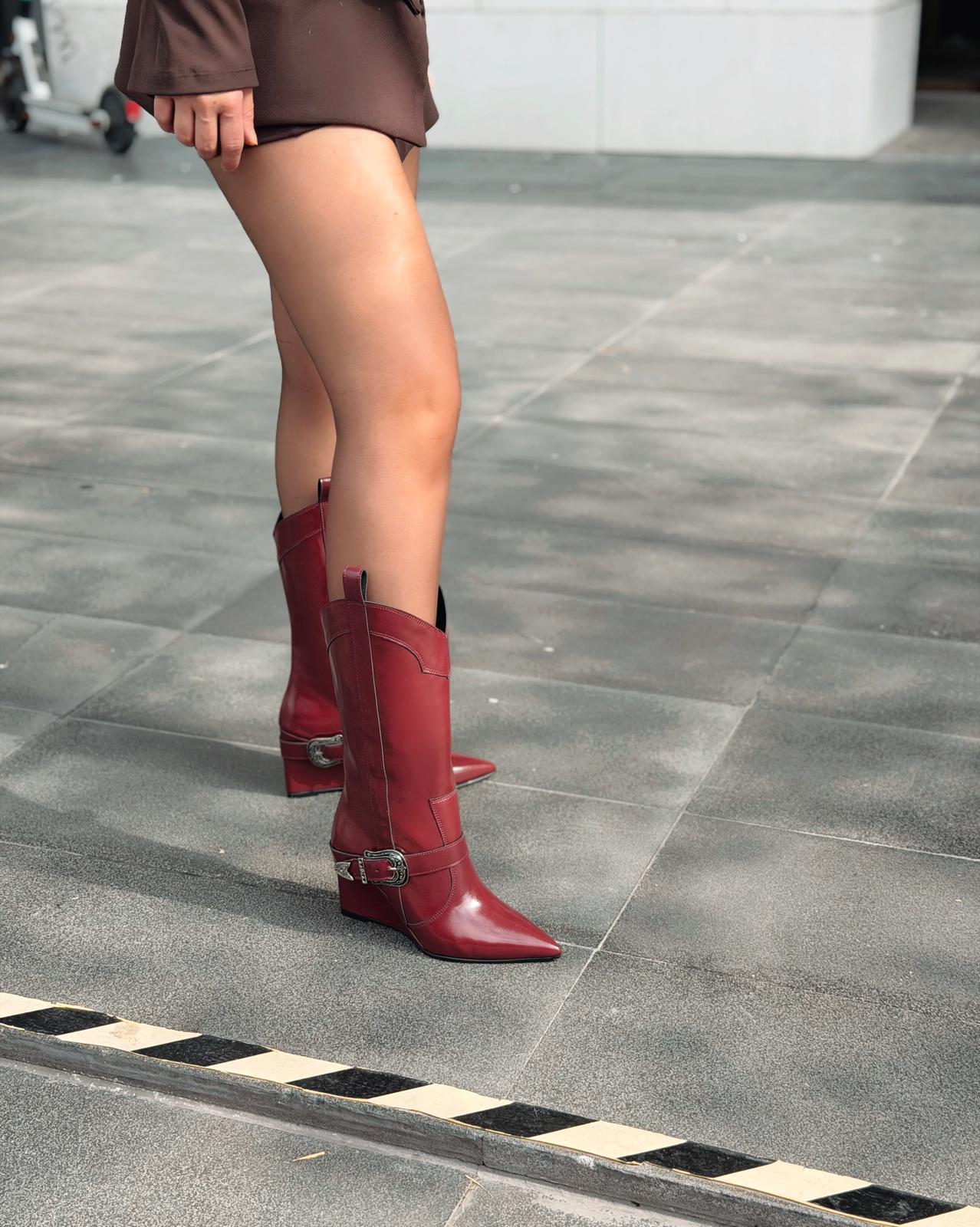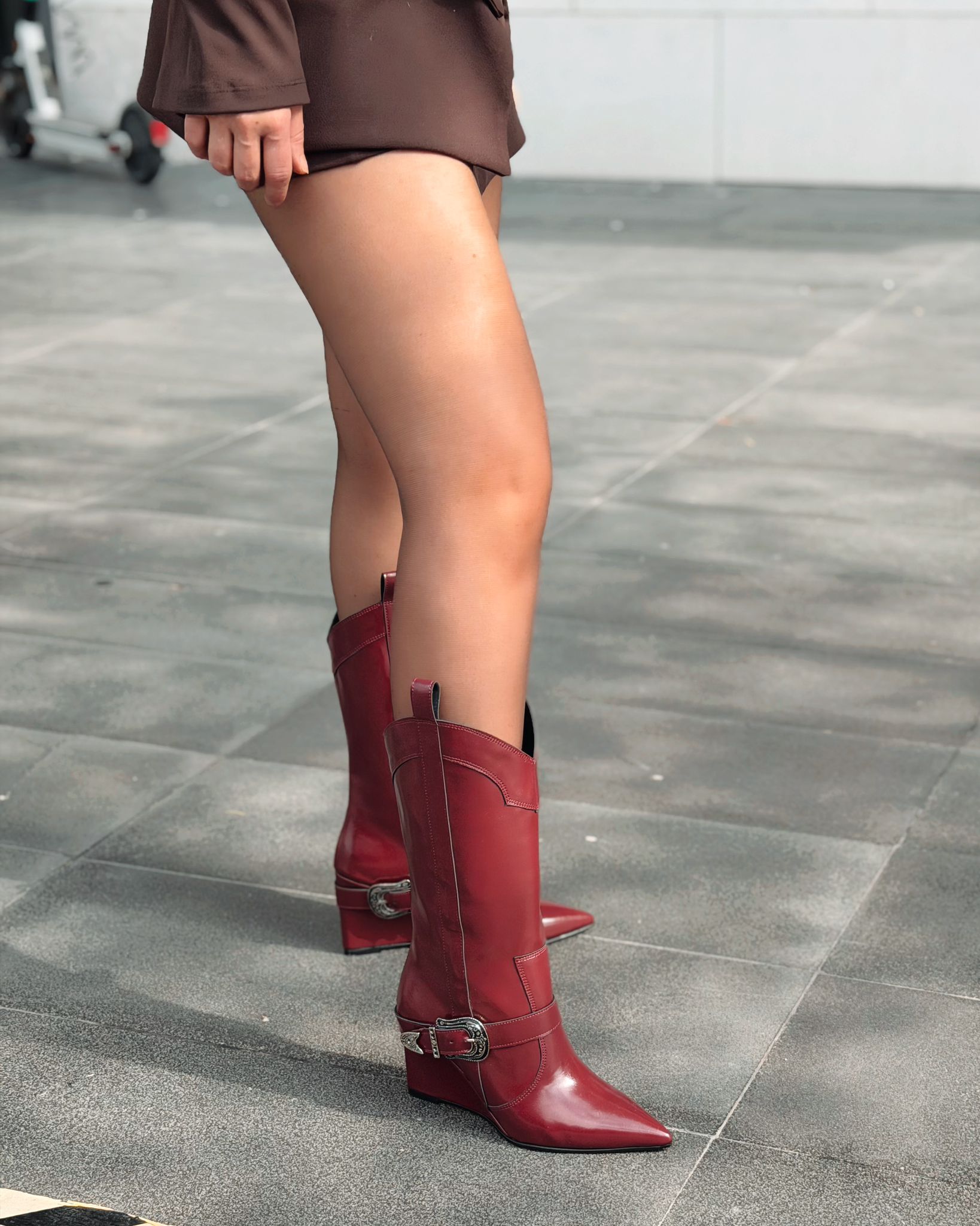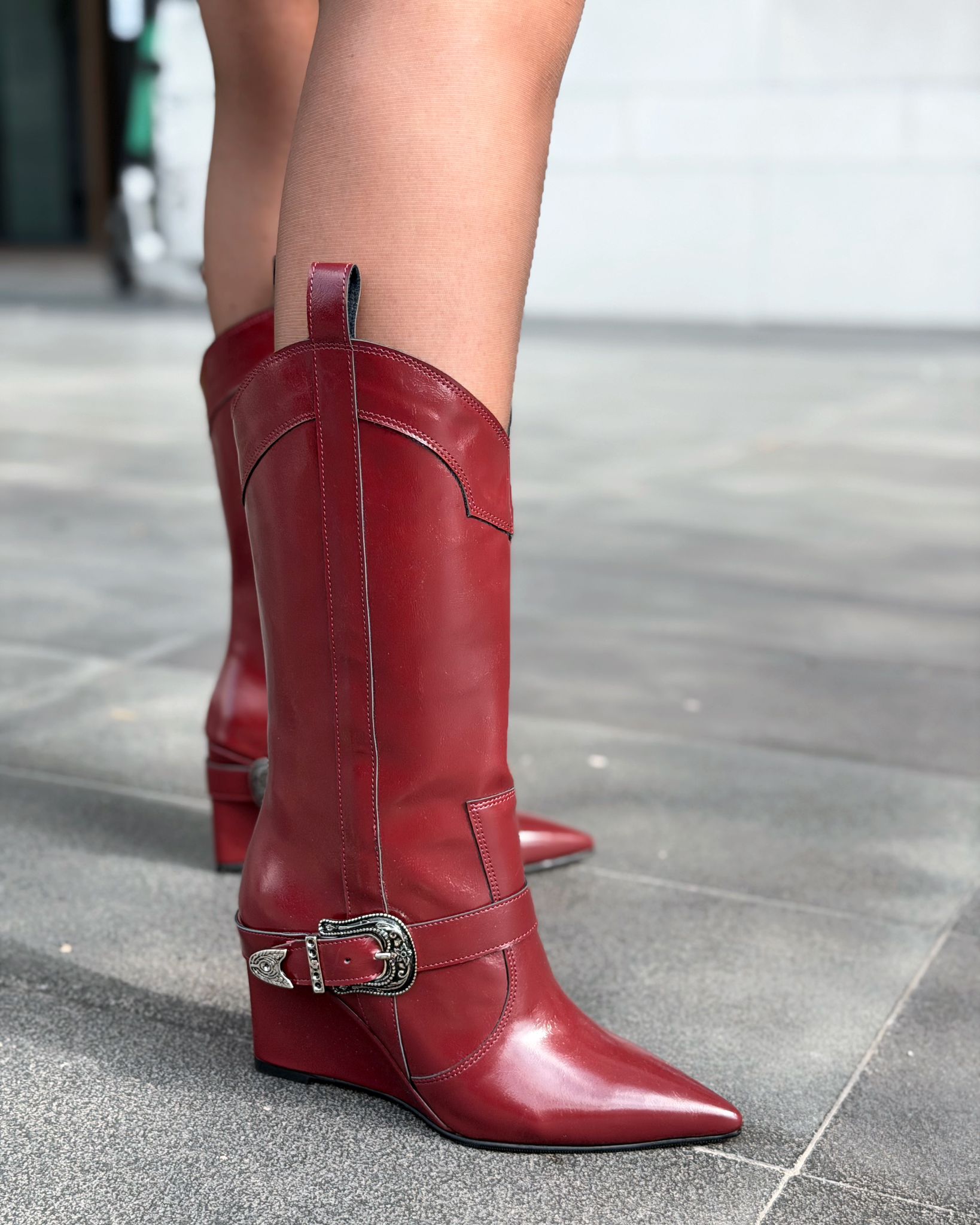 Bonvir Kadın Kovboy Çizme BordoParlak Deri