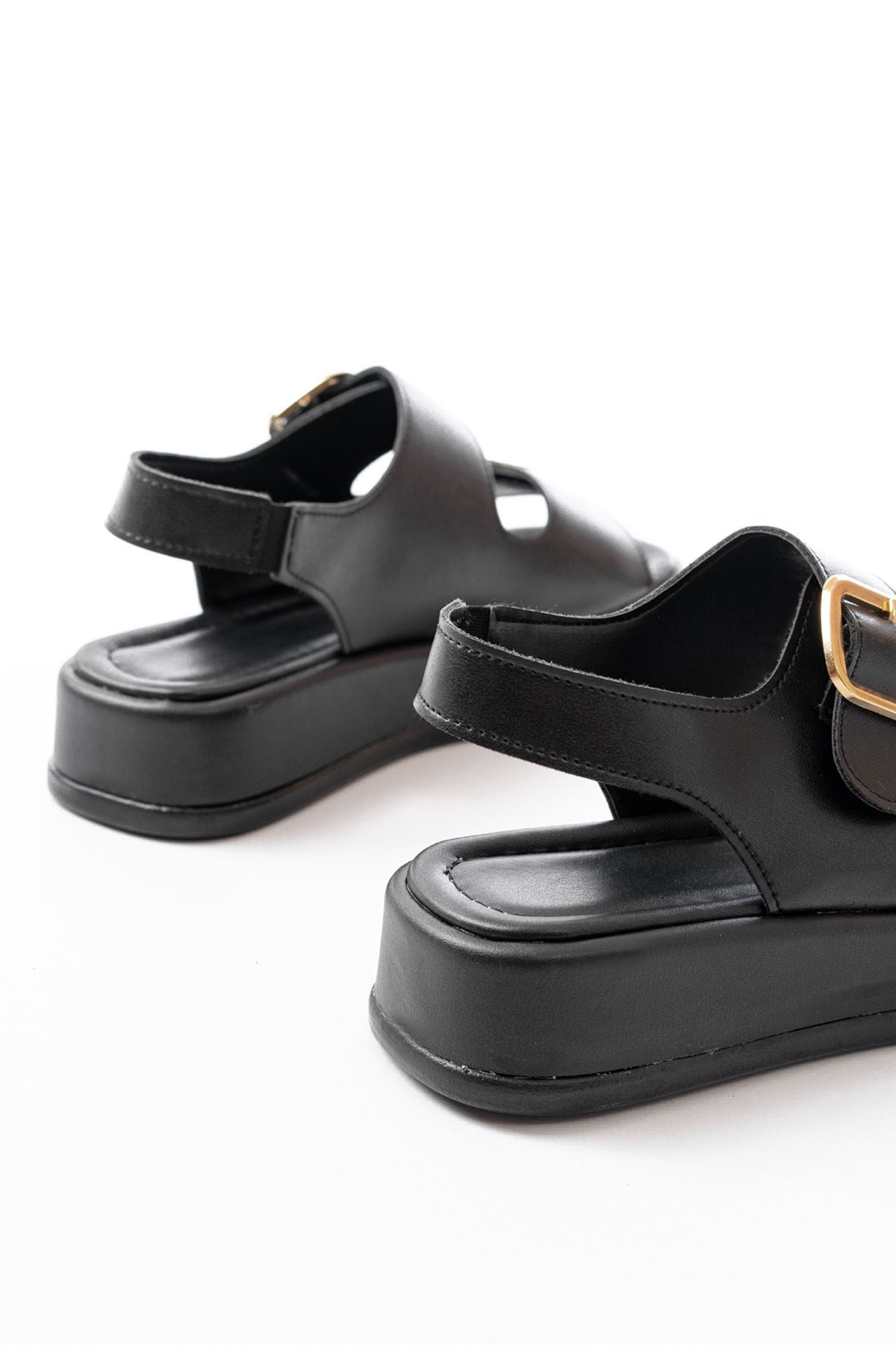 Borea Mat Deri Siyah Baretli Kadın Sandalet