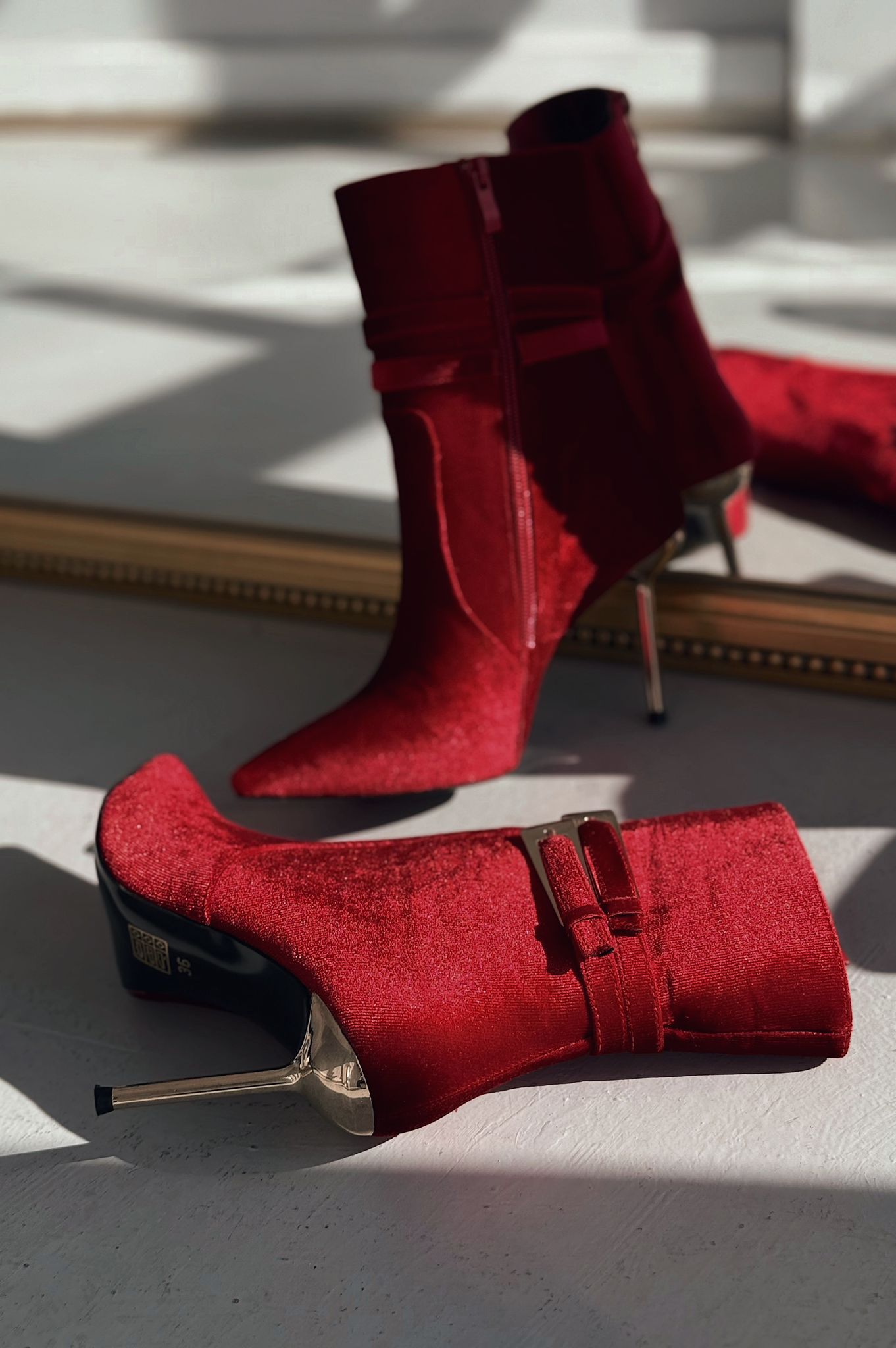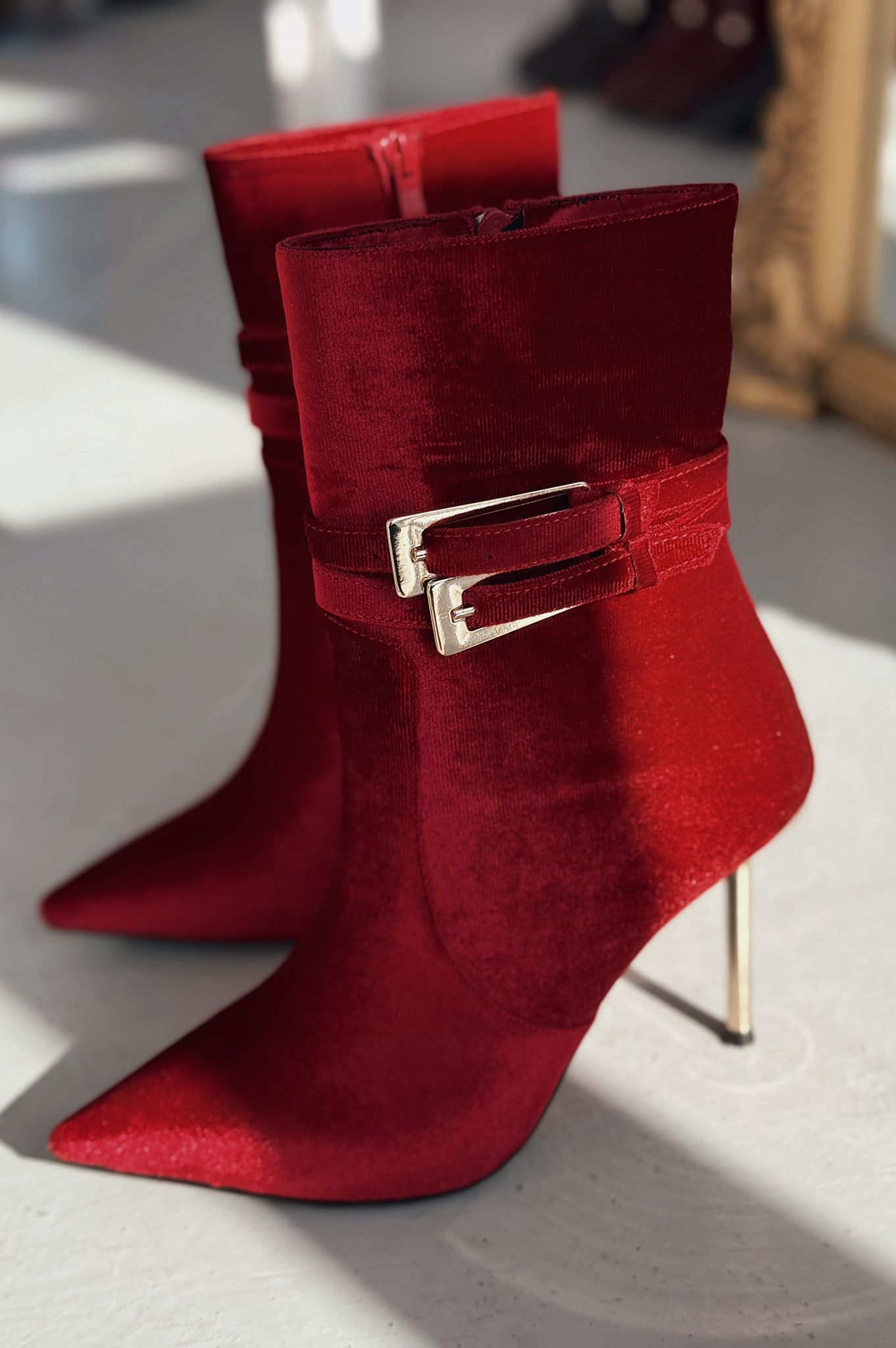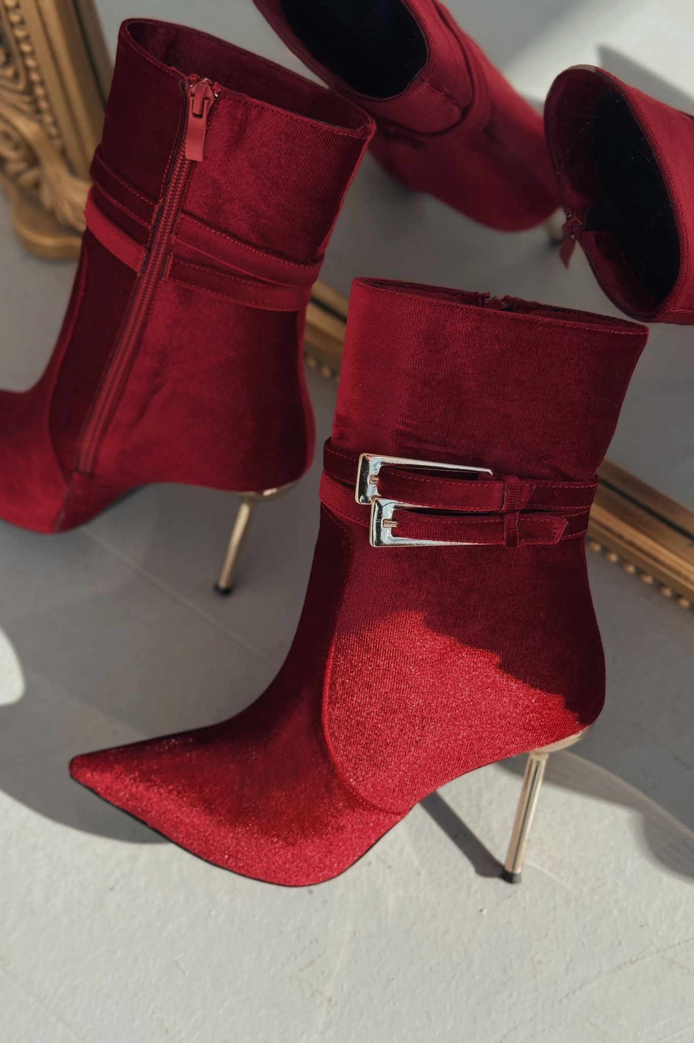 Calindo Kadife Toka Detaylı Kırmızı Kadın Topuklu Bot