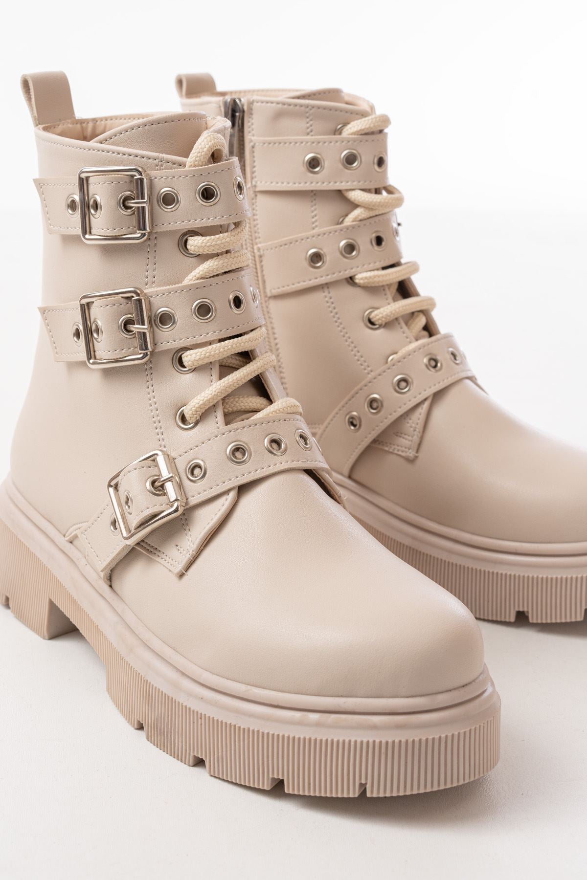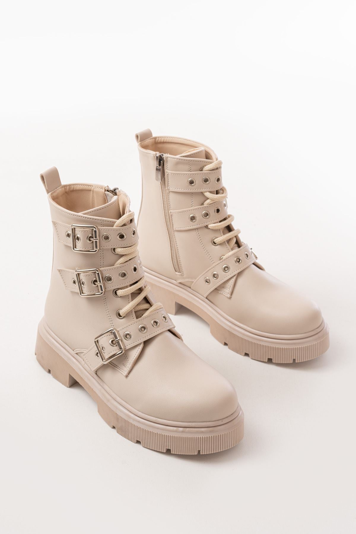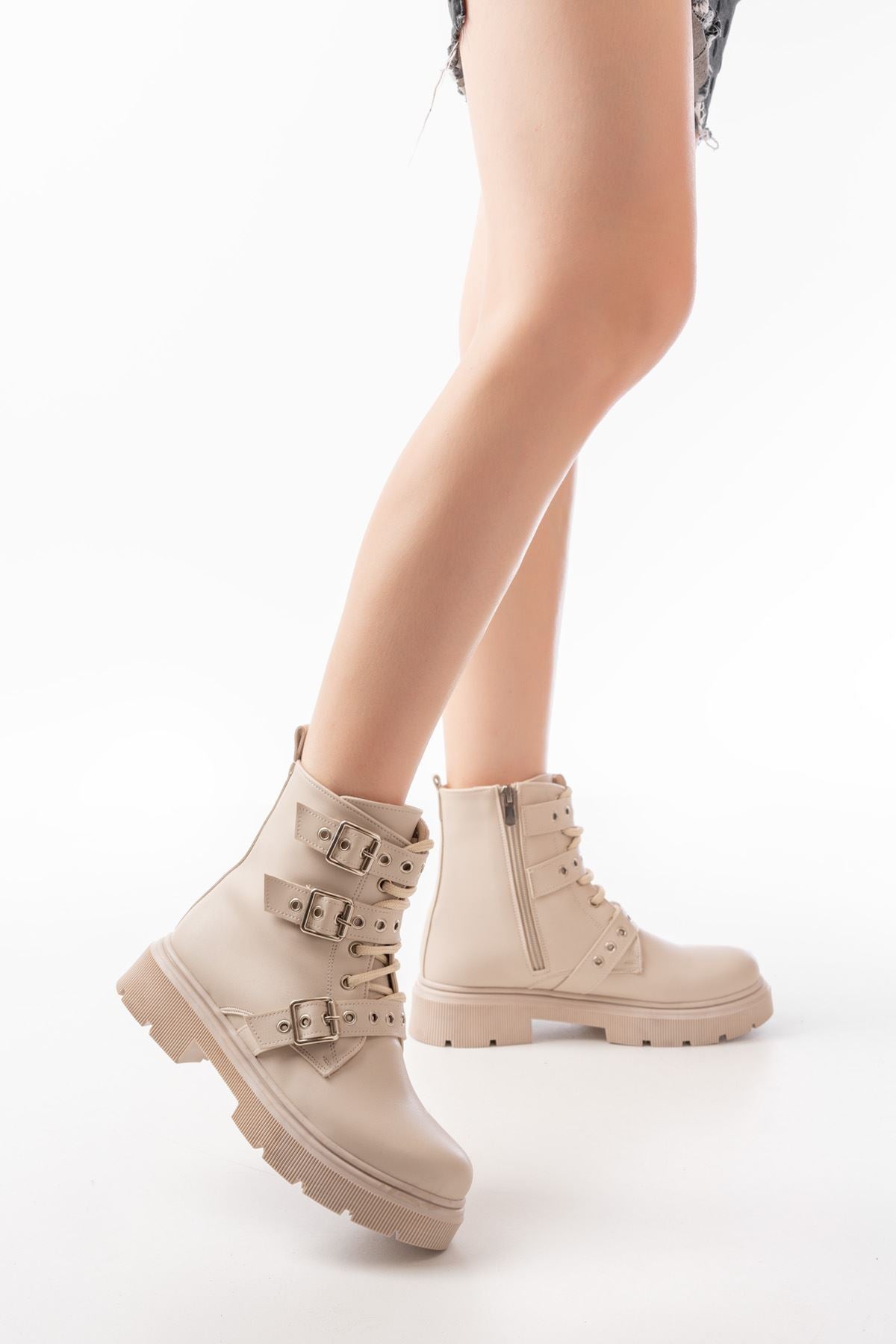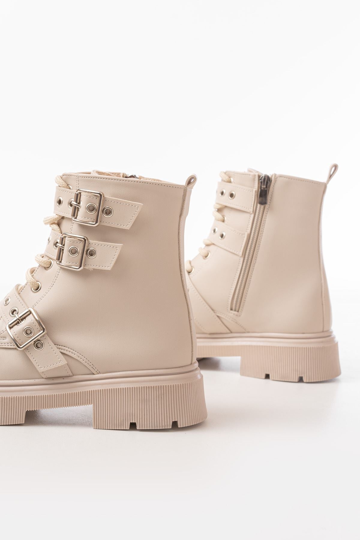 Calivon Bej Toka Aksesuarlı Fermuarlı Günlük Kadın Bot