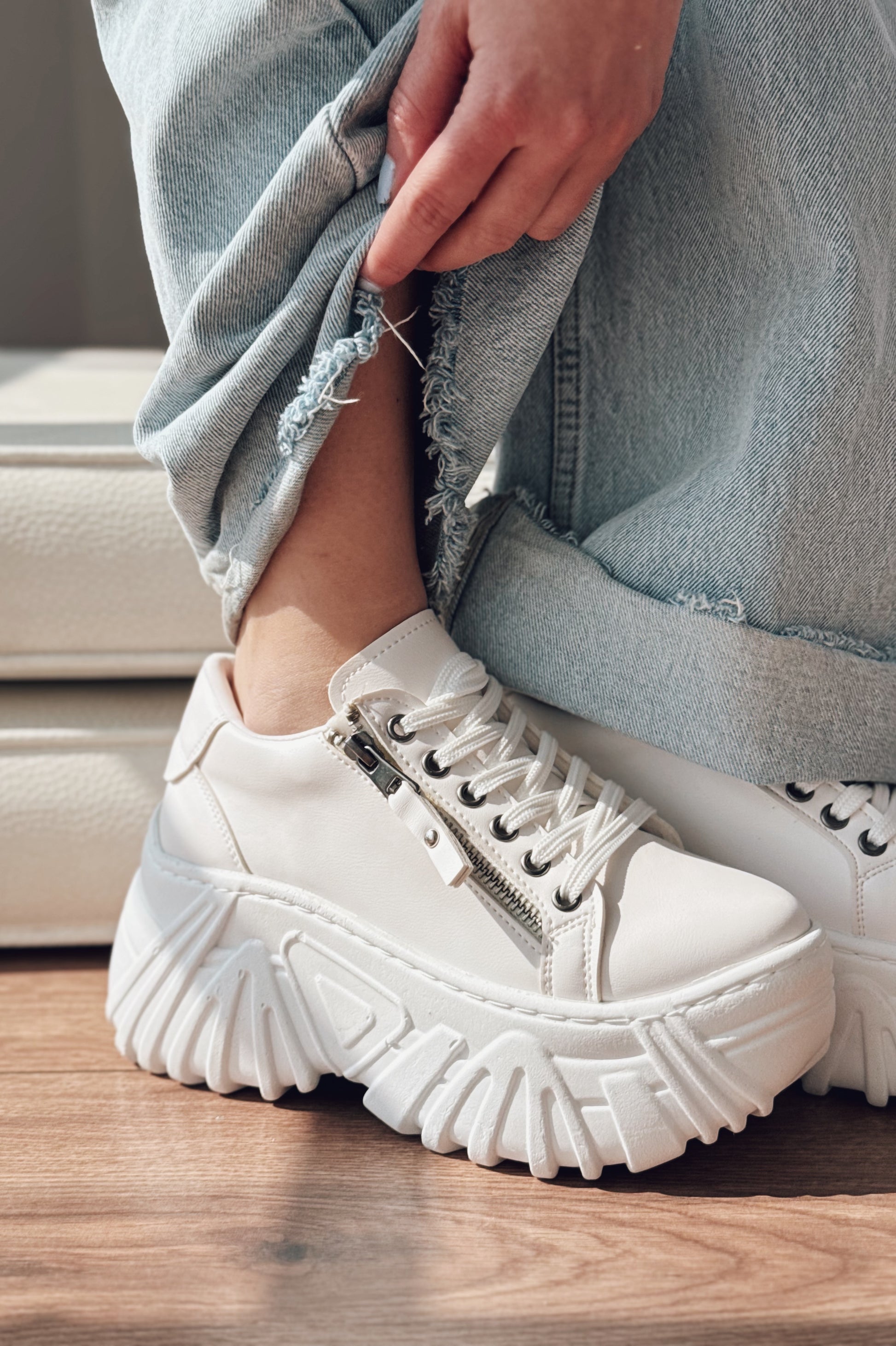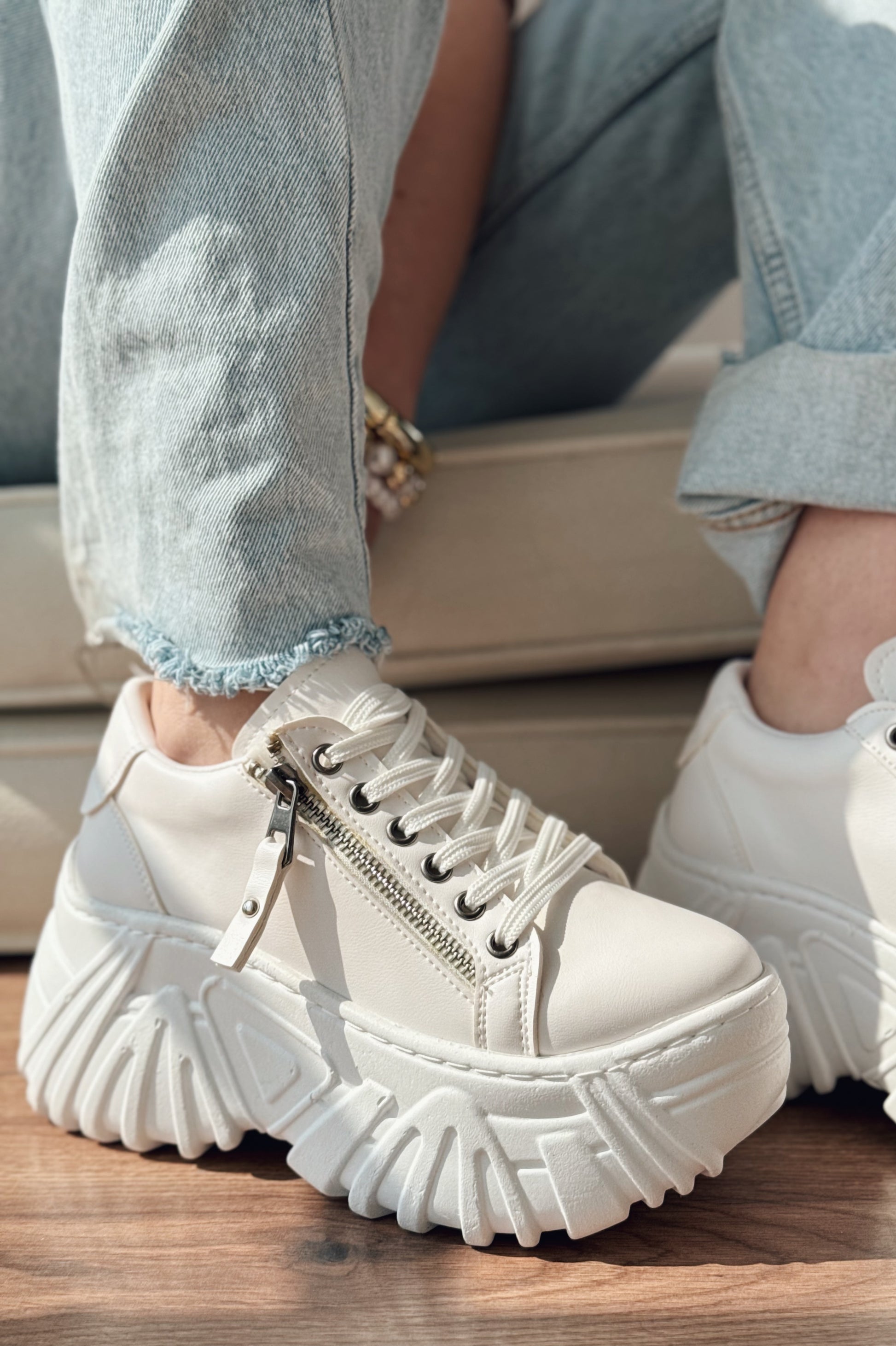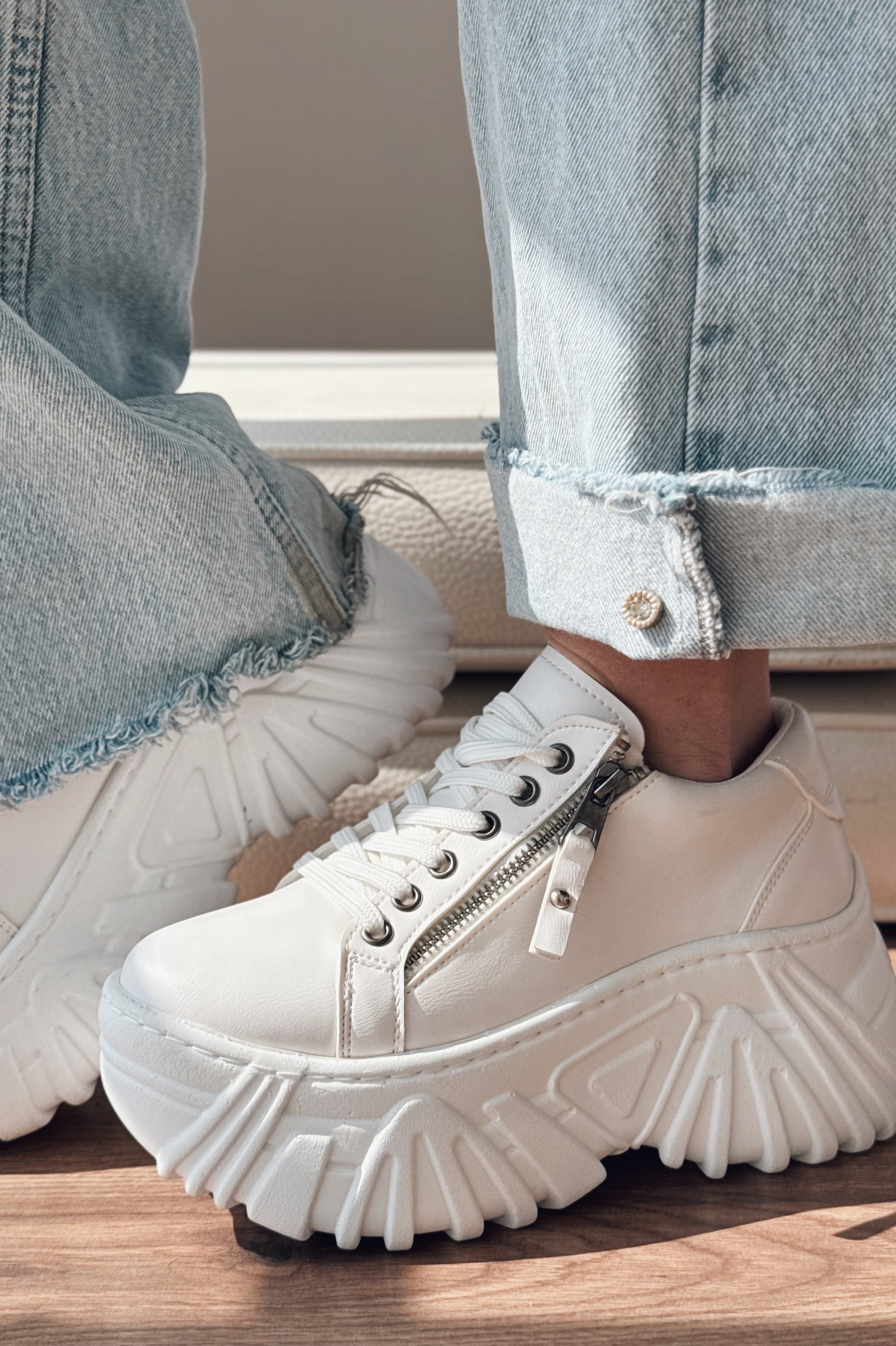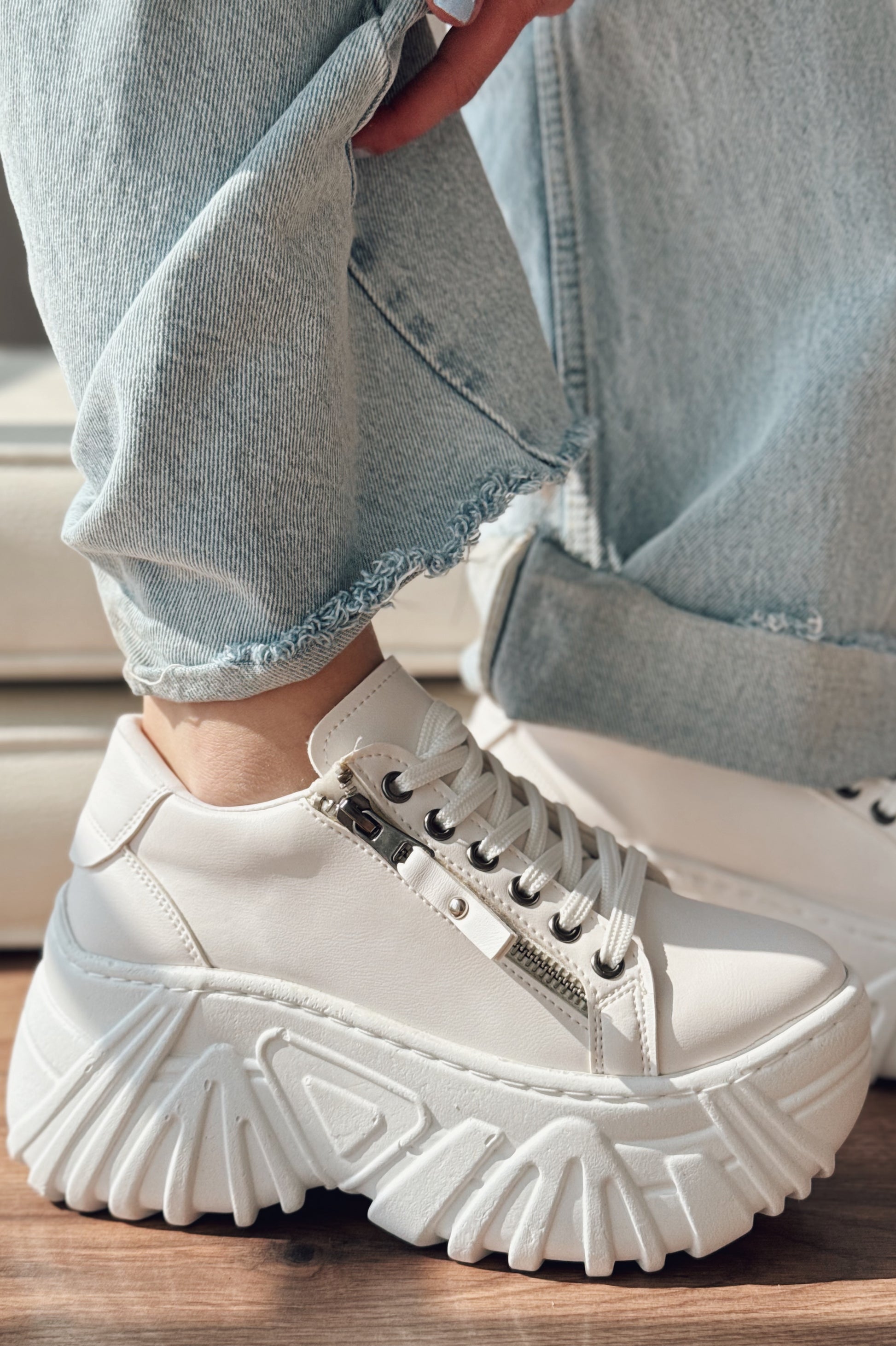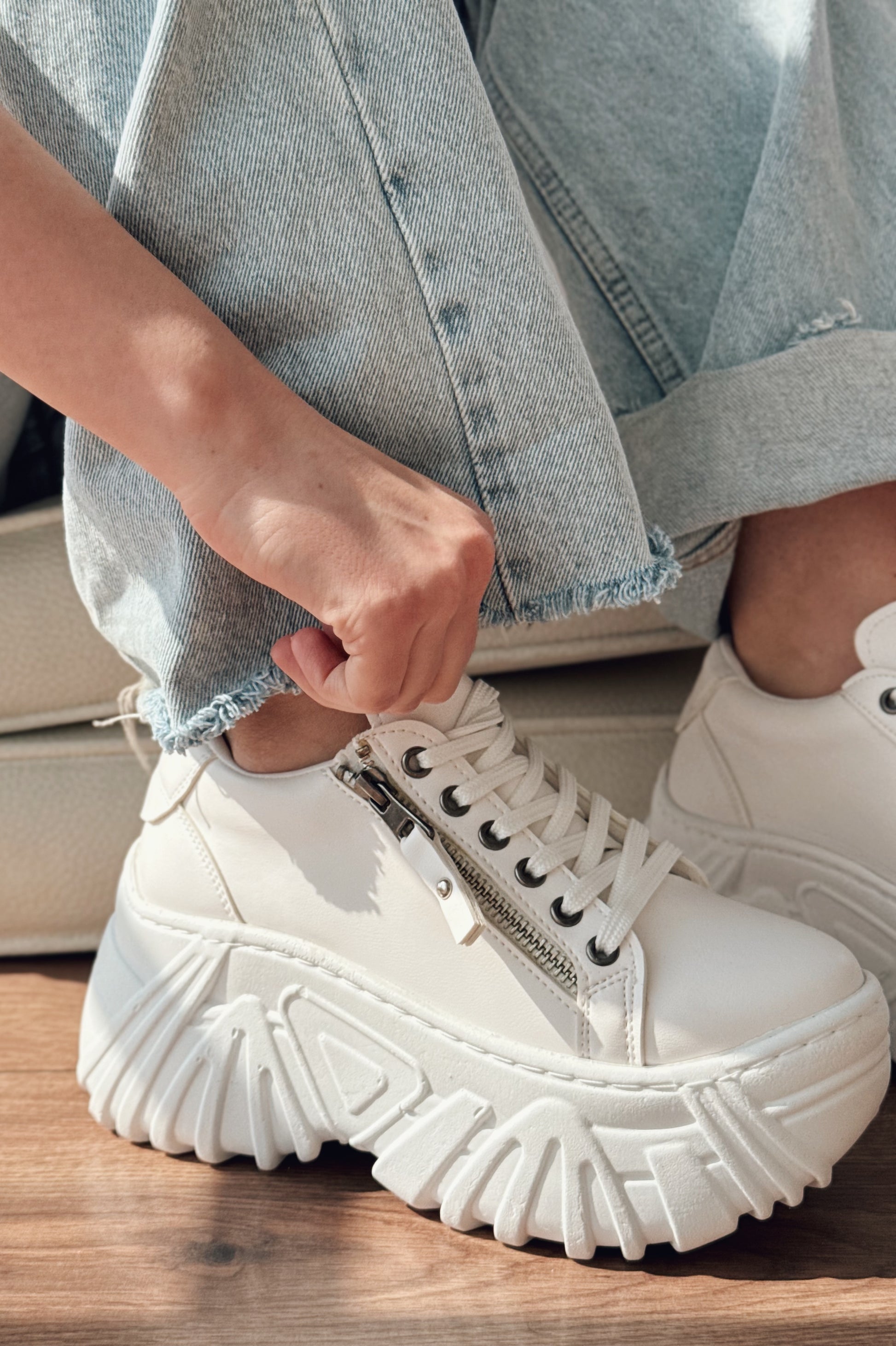 Casava Beyaz Fermuarlı Yüksek Taban Kadın Spor Ayakkabı