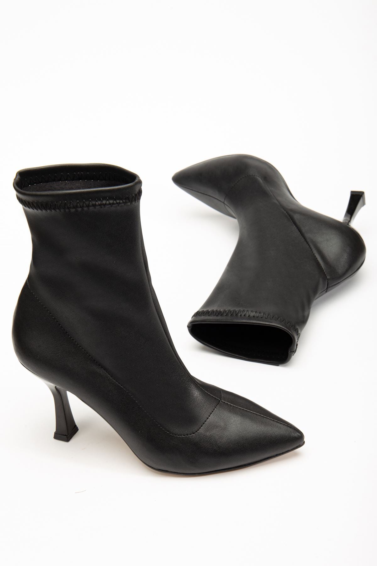 Clarix Siyah Yüksek İnce Topuklu Streç Kadın Bot