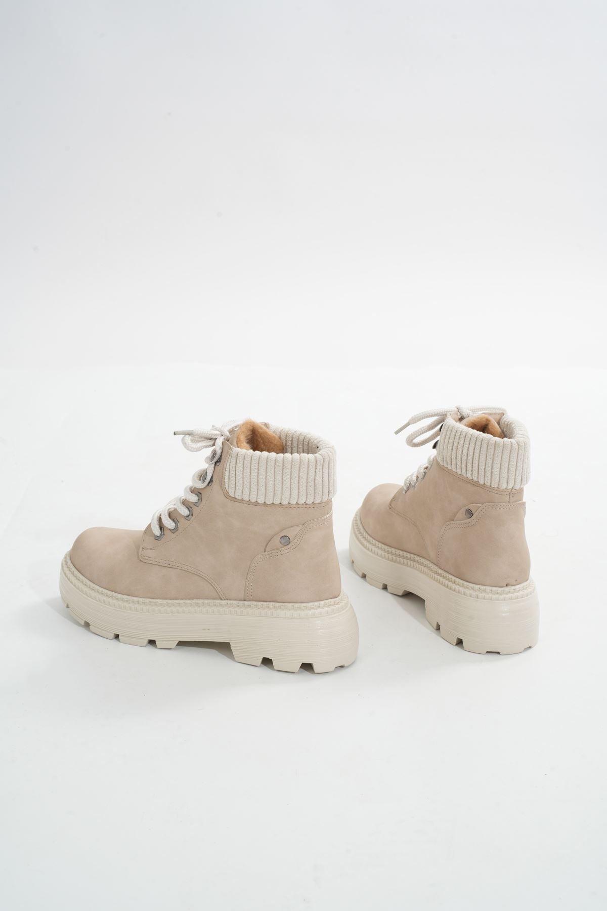 Clorin Bej Süet Bağcıklı Kalın Taban Kadın Günlük Bot
