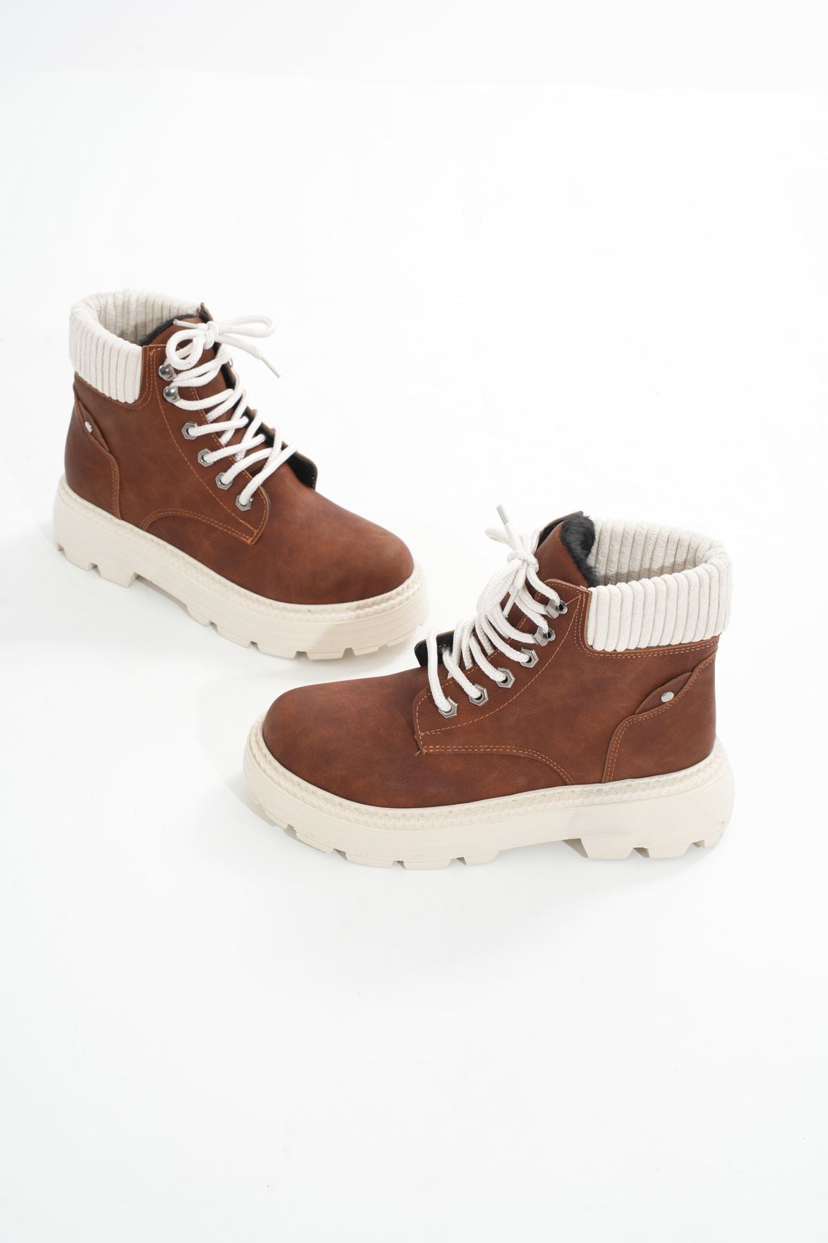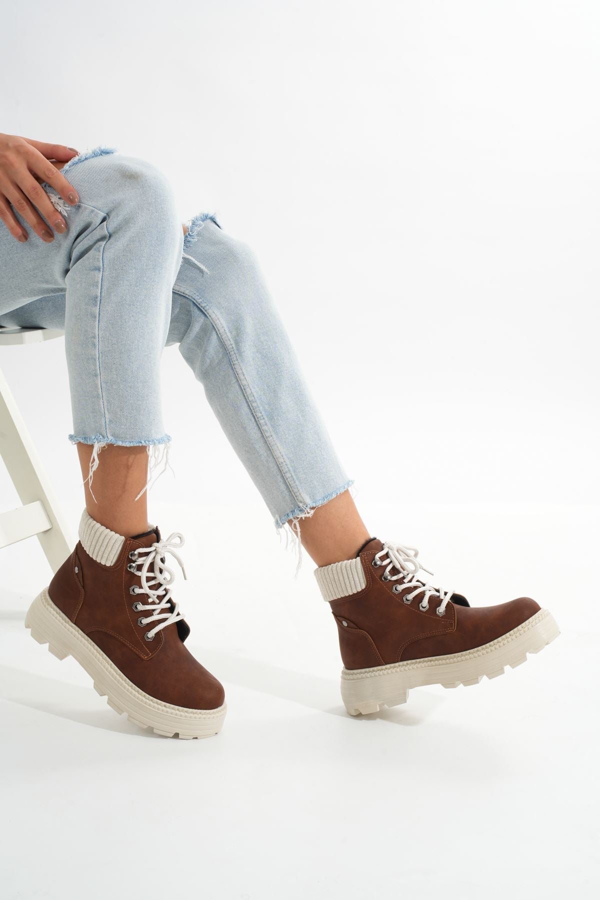 Clorin Kahverengi Süet Bağcıklı Kalın Taban Kadın Günlük Bot