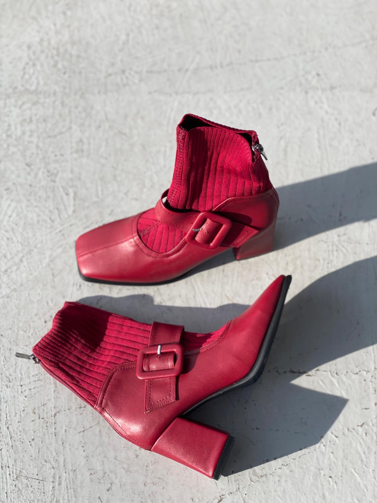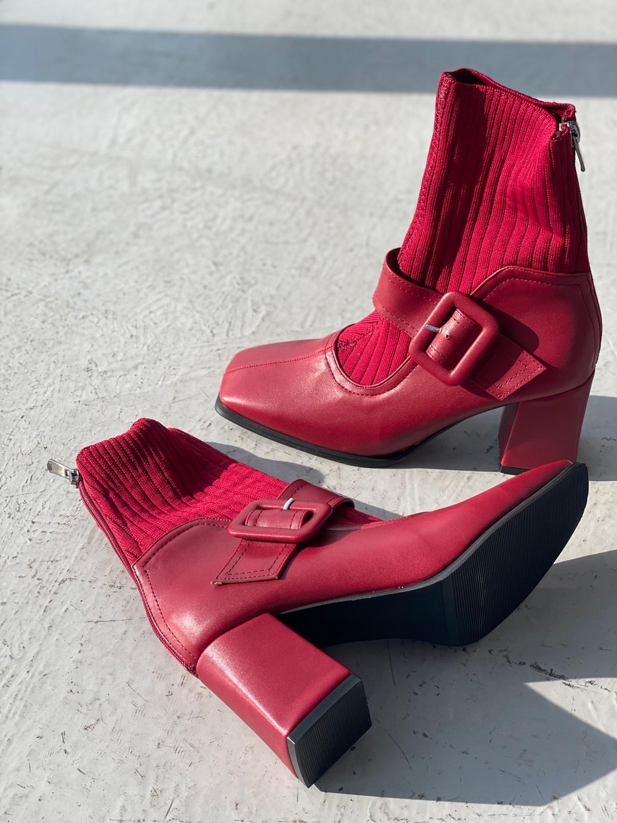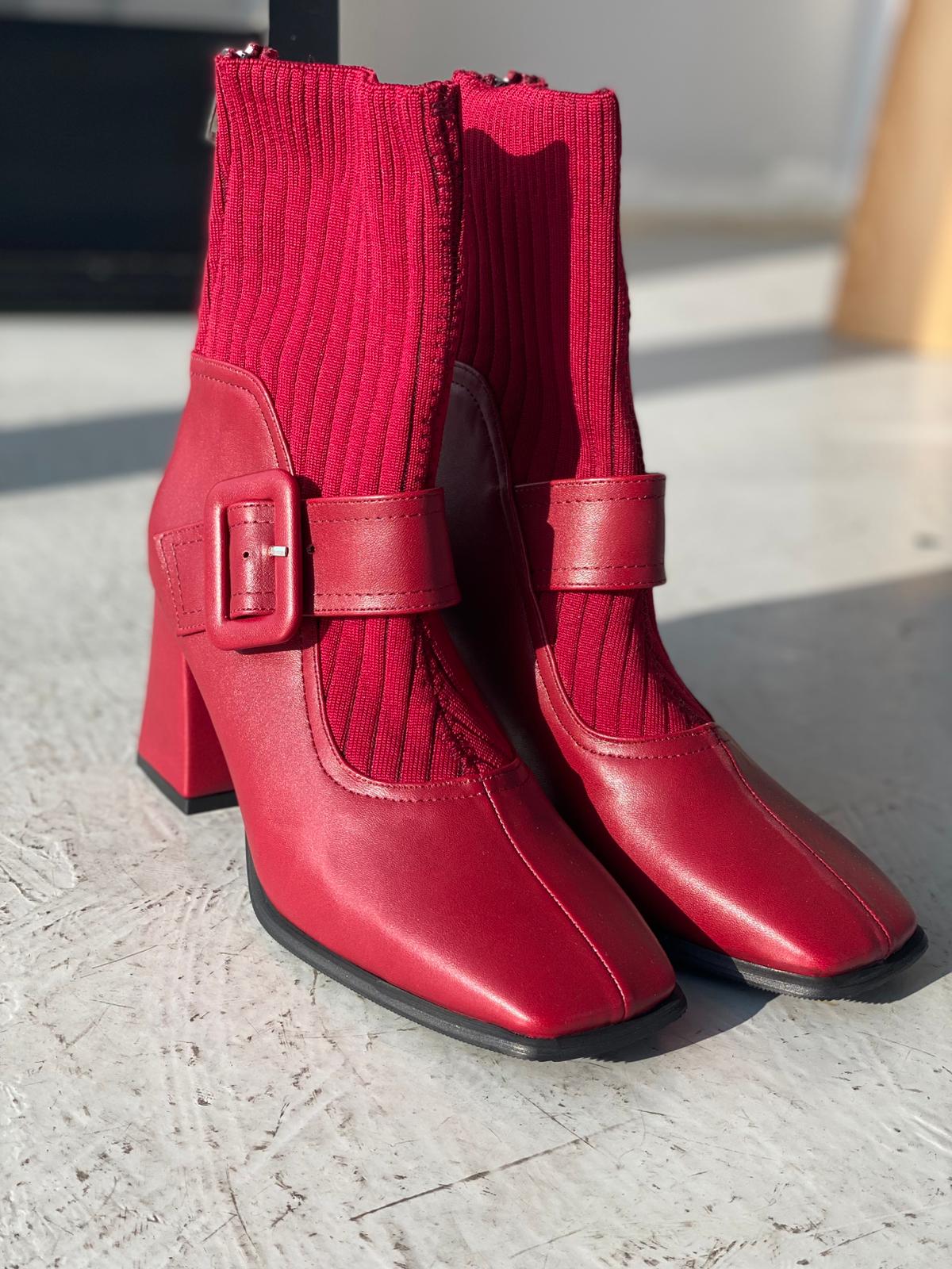 Clyra Mat Deri Triko Bordo Kadın Streç Bot