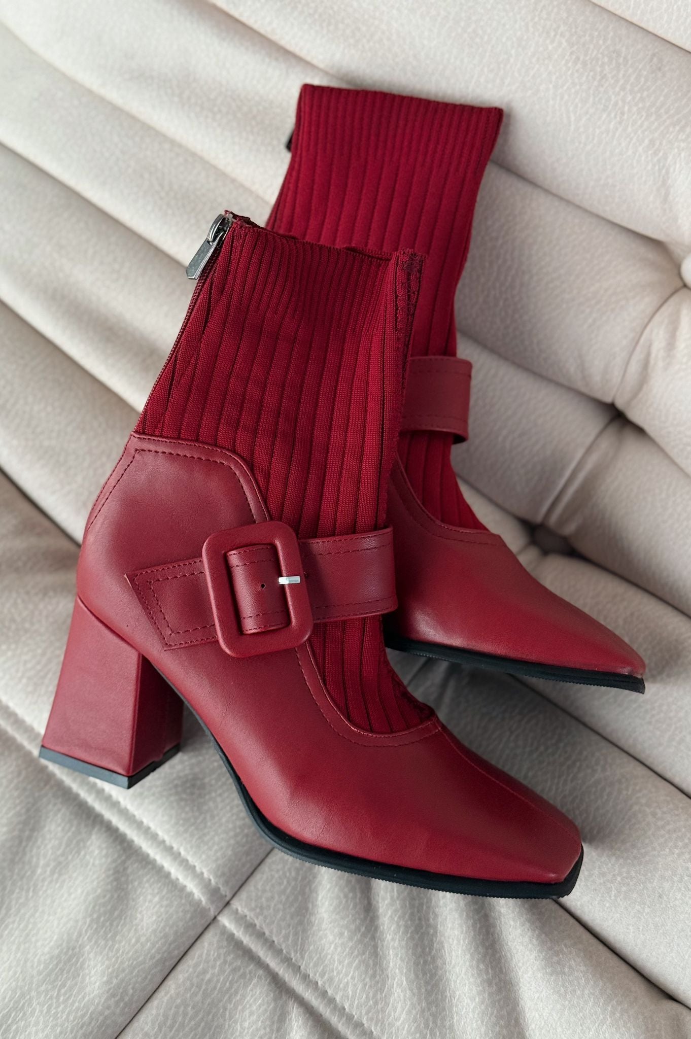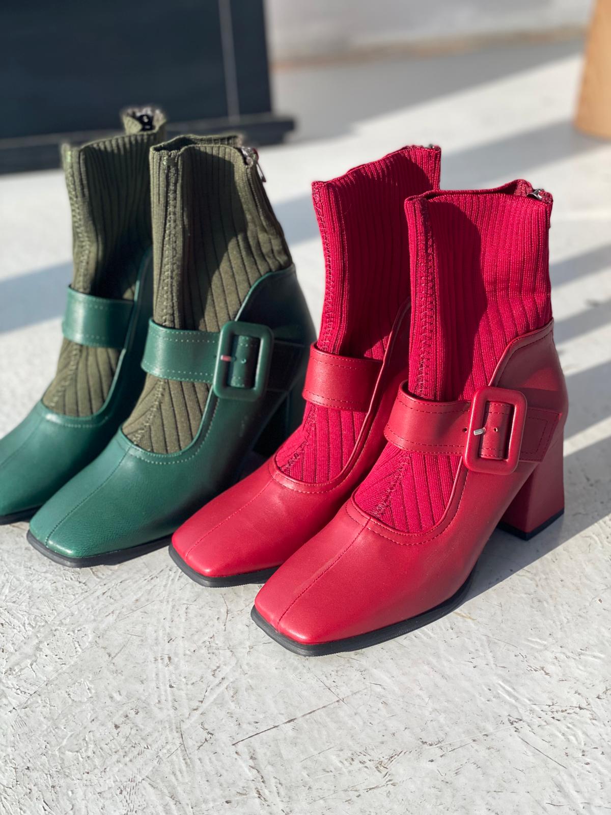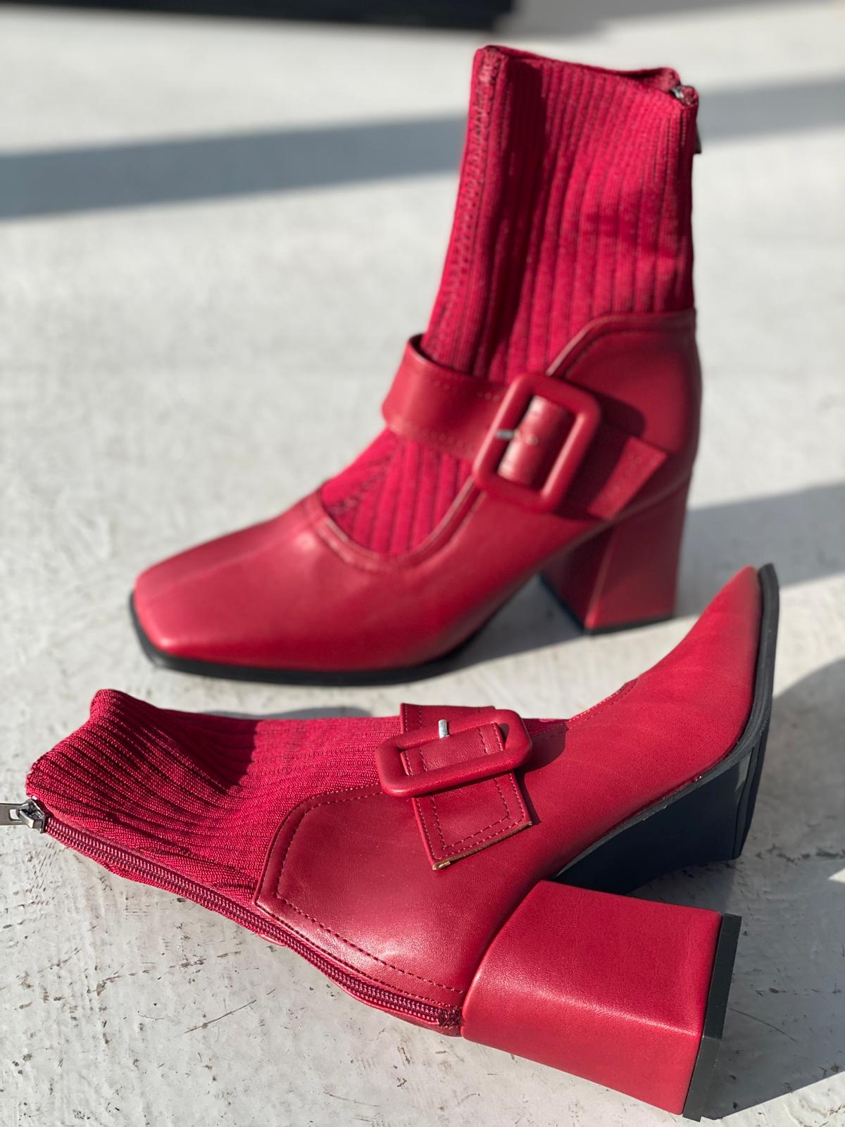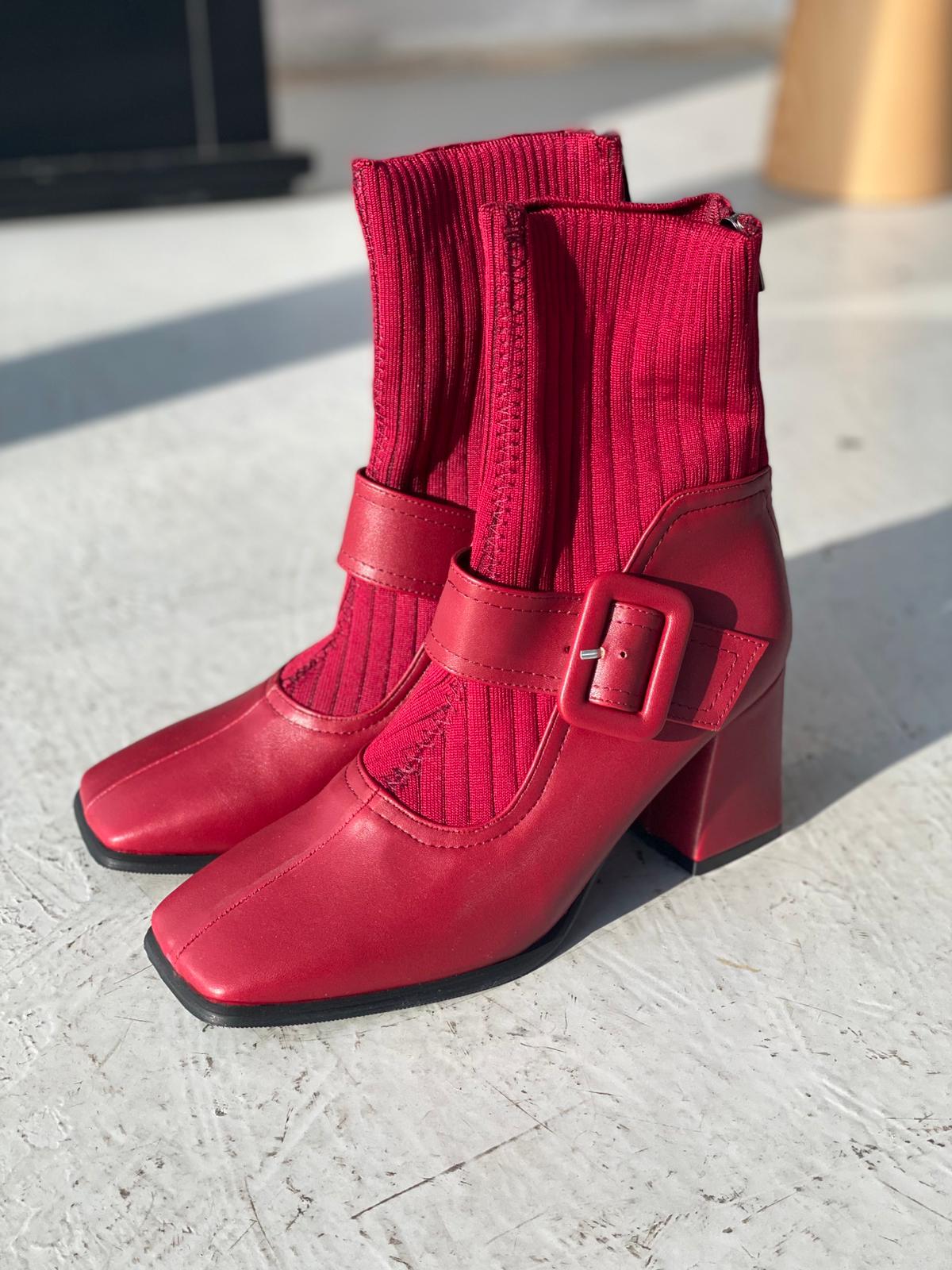 Clyra Mat Deri Triko Bordo Kadın Streç Bot