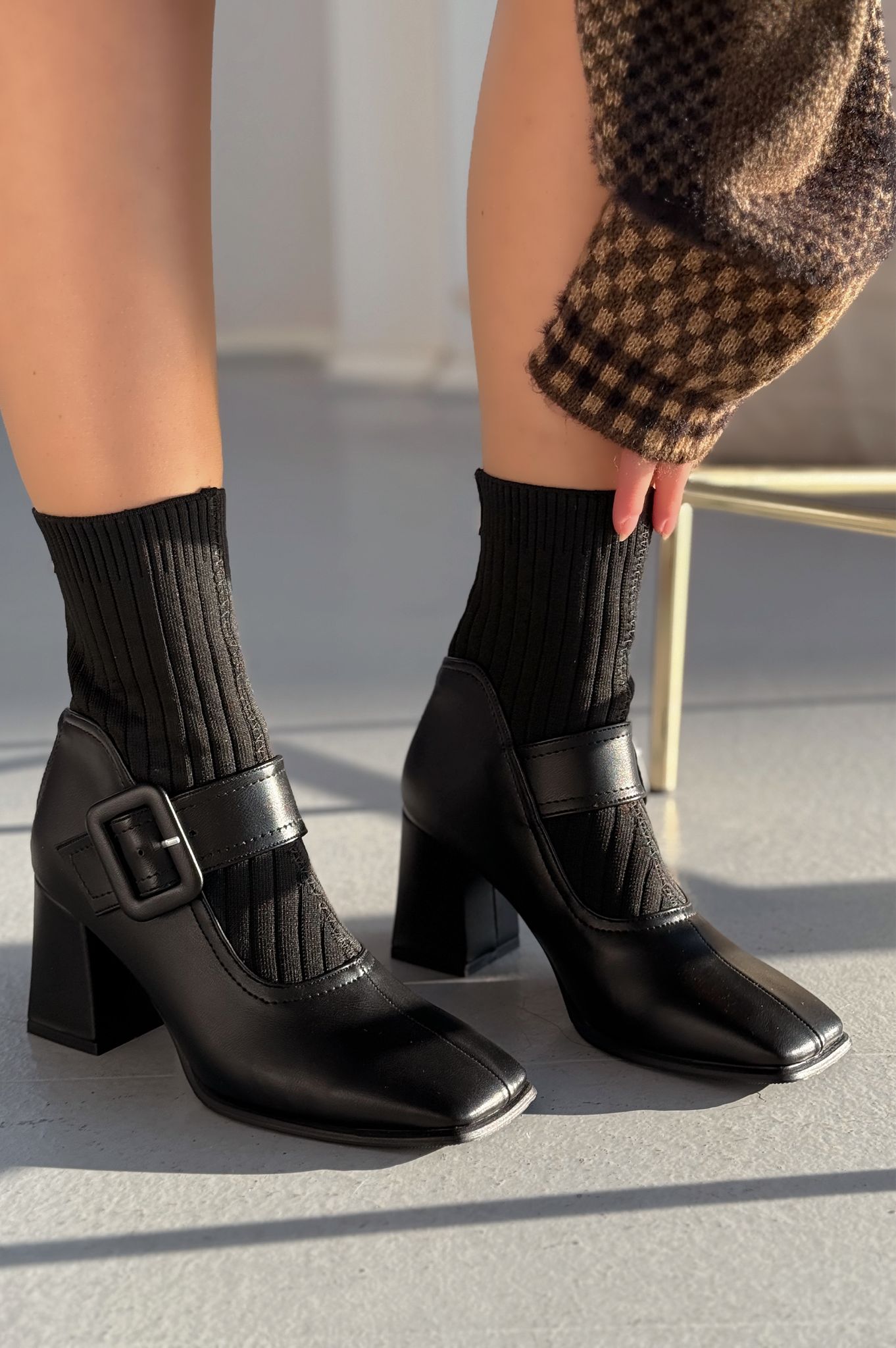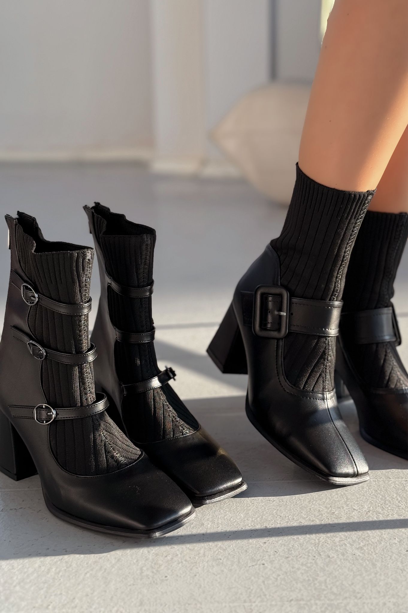 Clyra Mat Deri Triko Siyah Kadın Streç Bot
