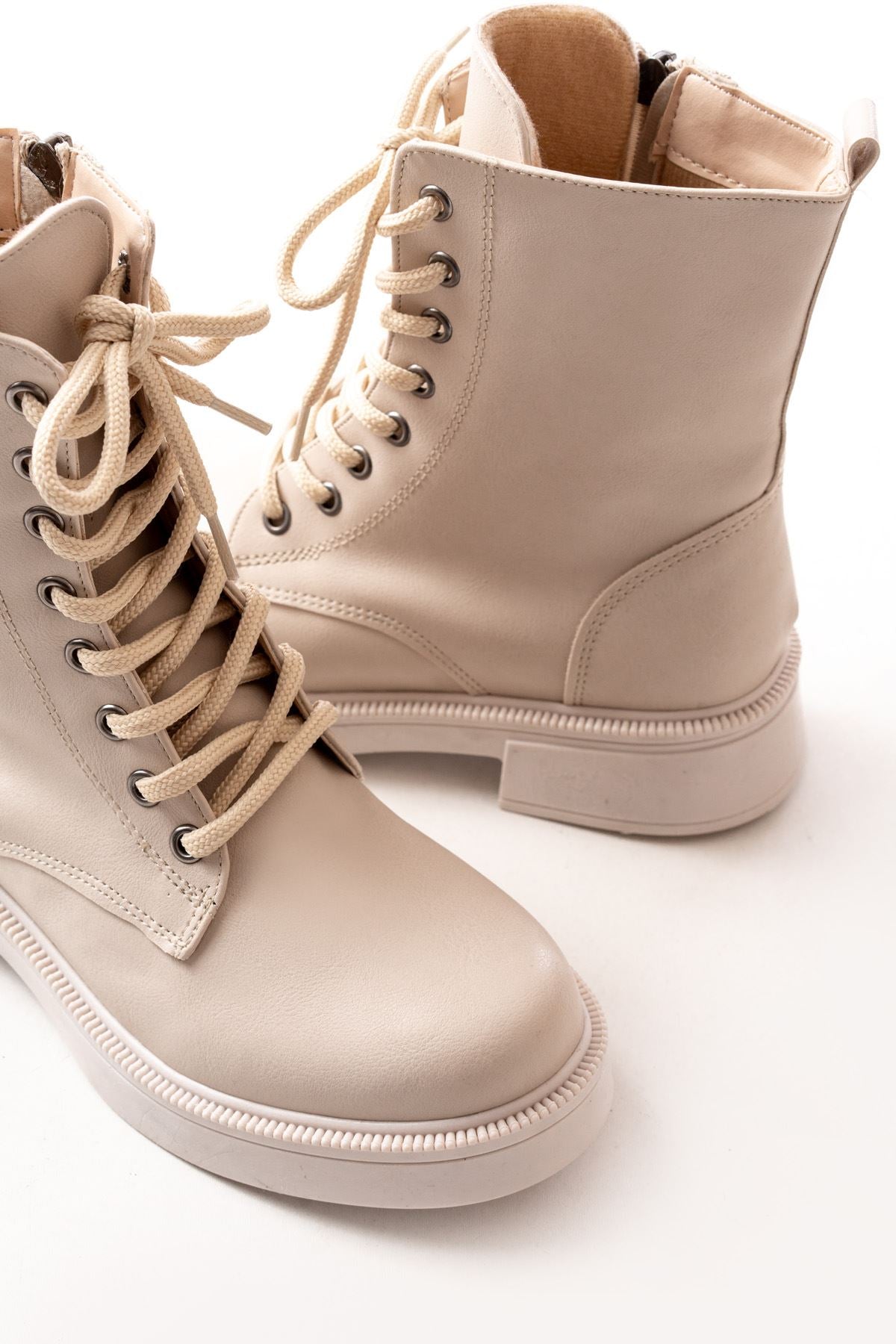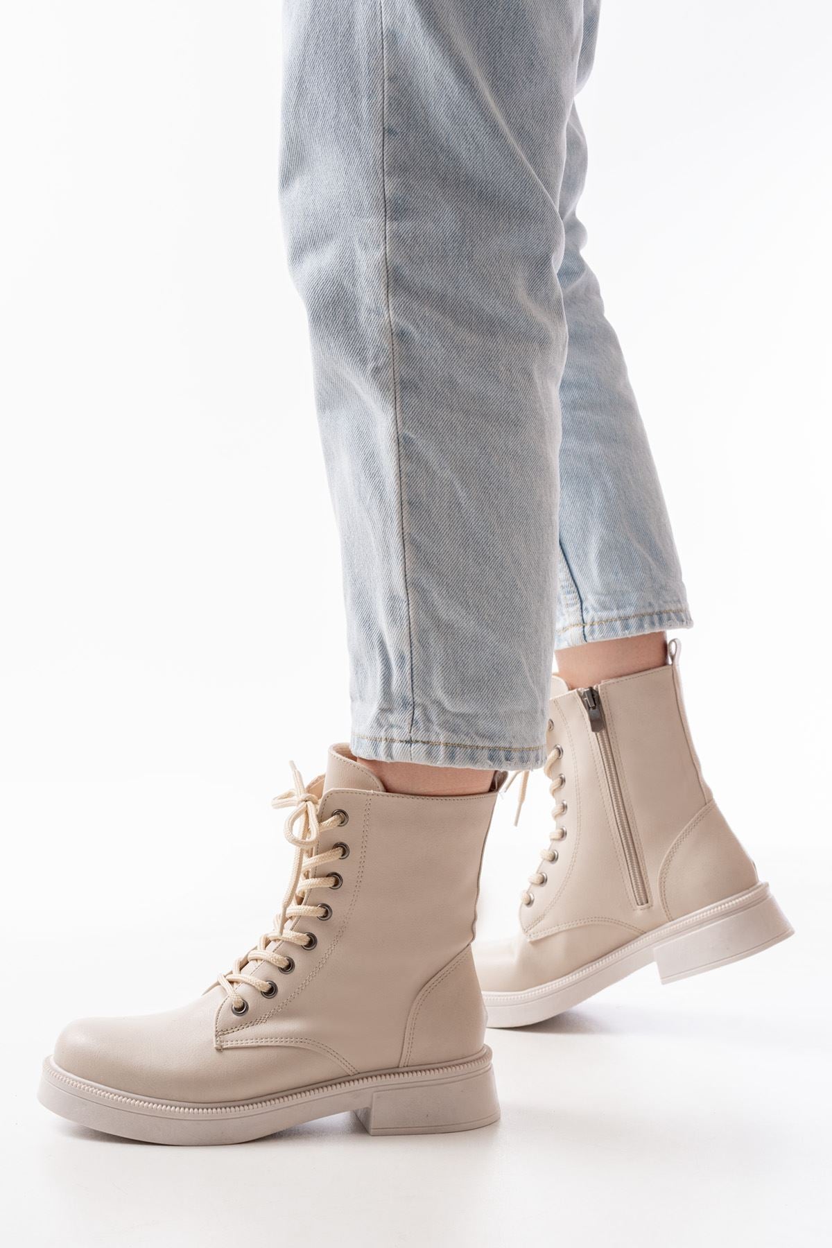 Darvex Bej Düz Topuklu Bağcıklı Fermuarlı Günlük Kadın Bot