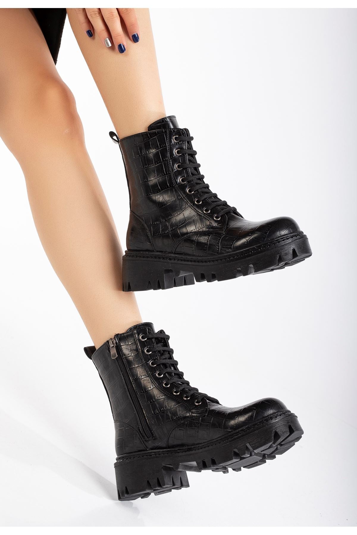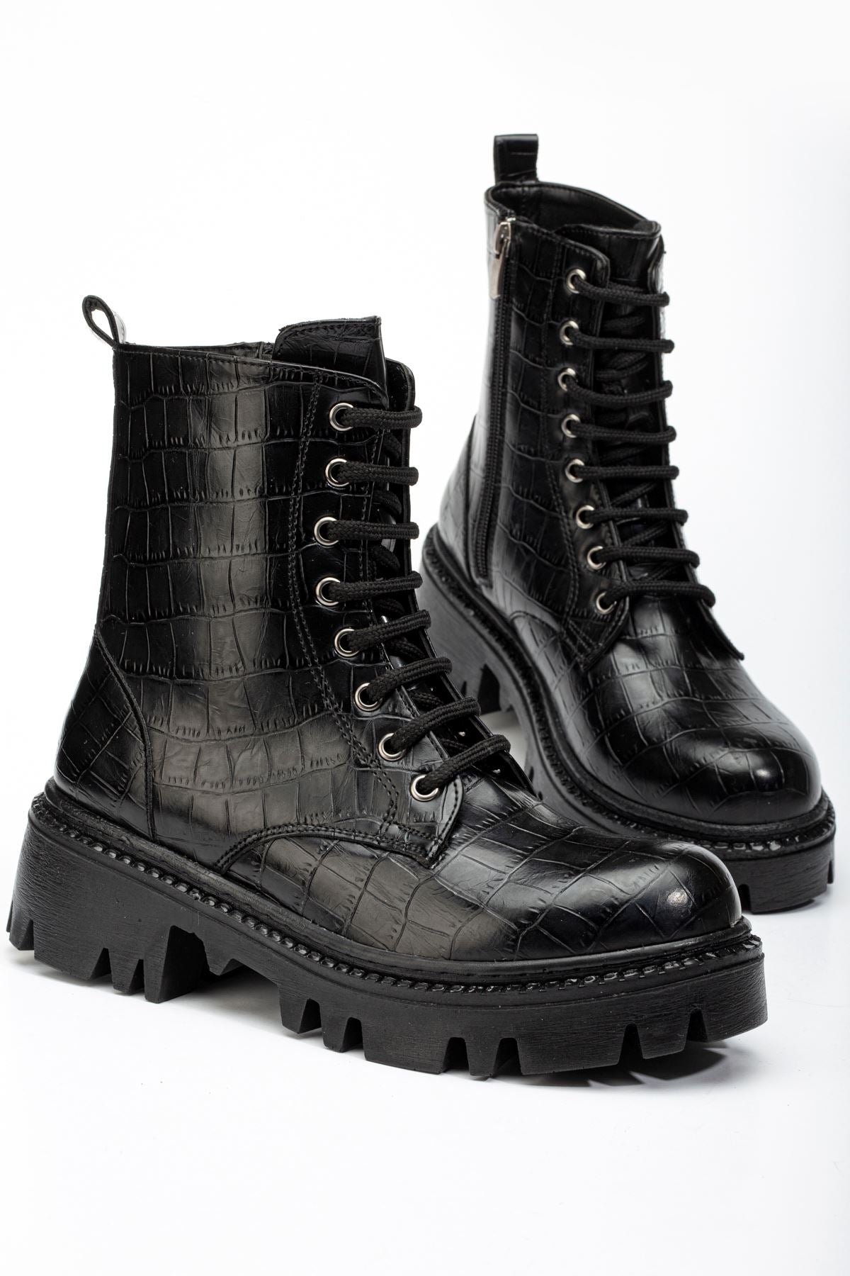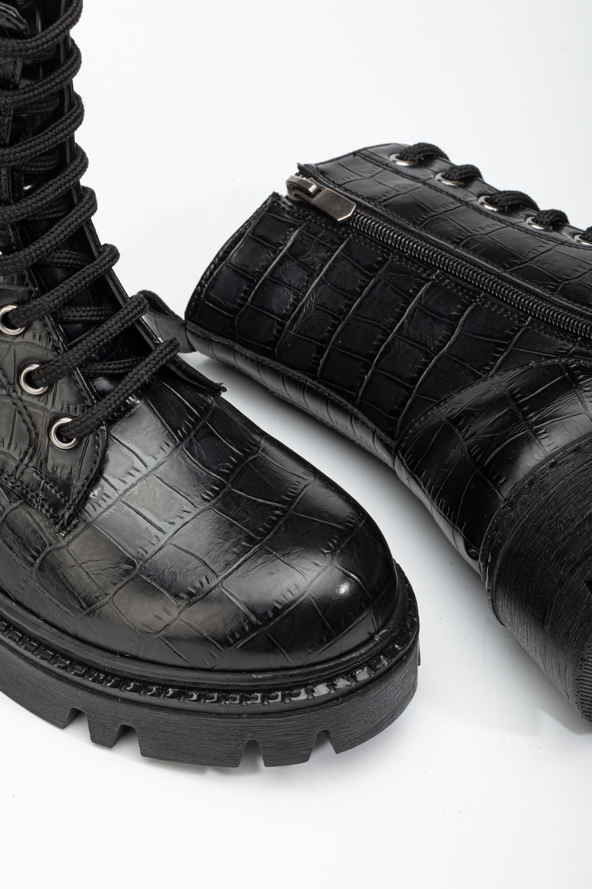 Darvia Siyah Kroko Bağcıklı Fermuarlı Günlük Kadın Bot