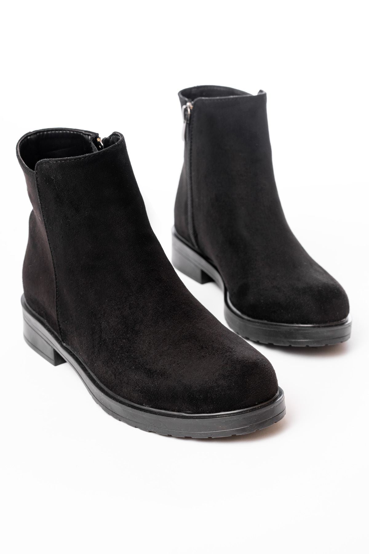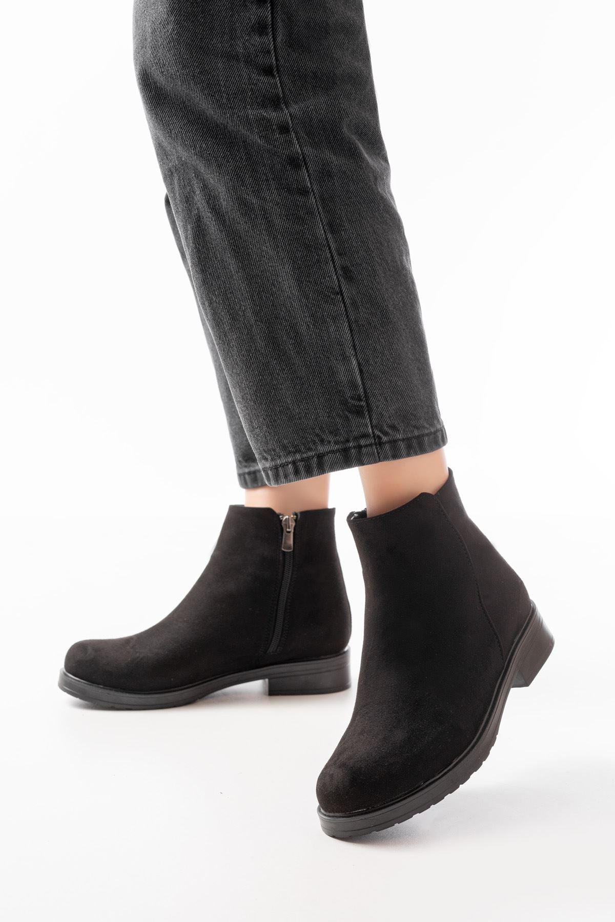 Elvoris Siyah Süet Fermuarlı Günlük Kadın Bot
