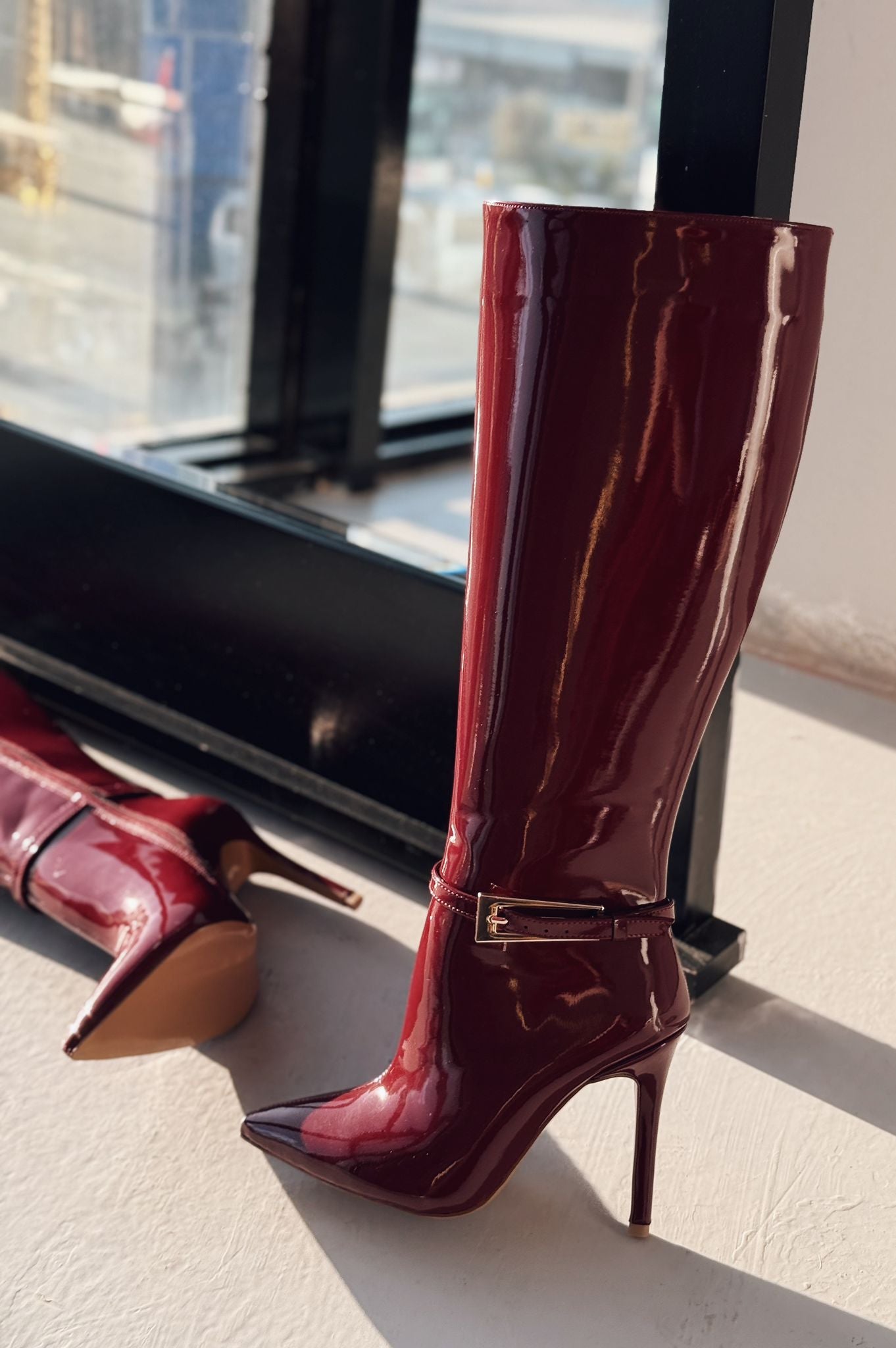 Eswod Rugan Toka Detaylı Bordo Kadın Çizme
