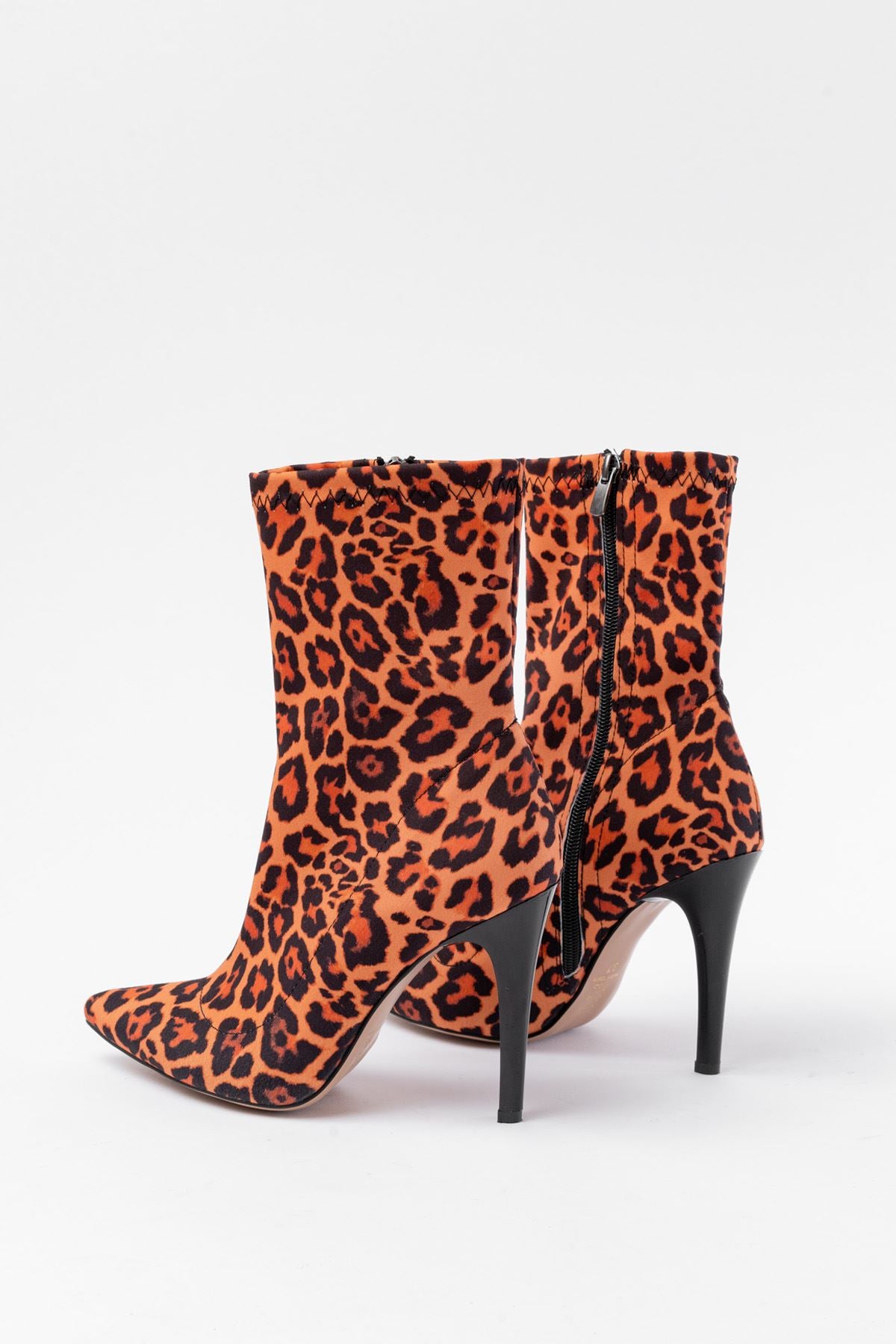 Felvix Leopar Desenli Yüksek İnce Topuklu Fermuarlı Kadın Bot