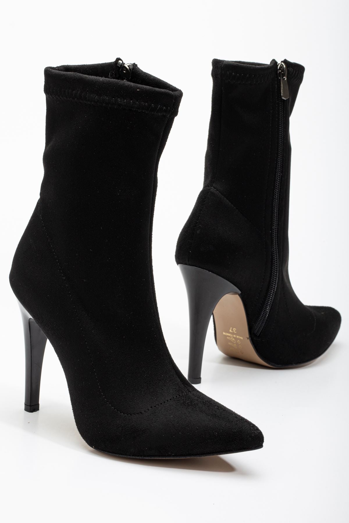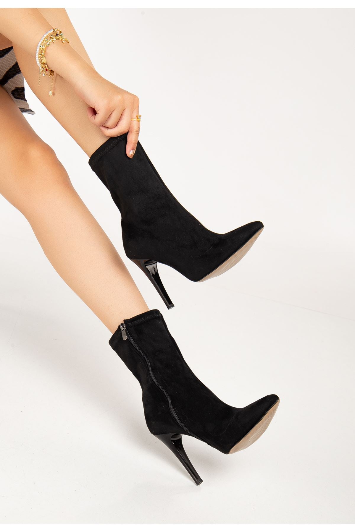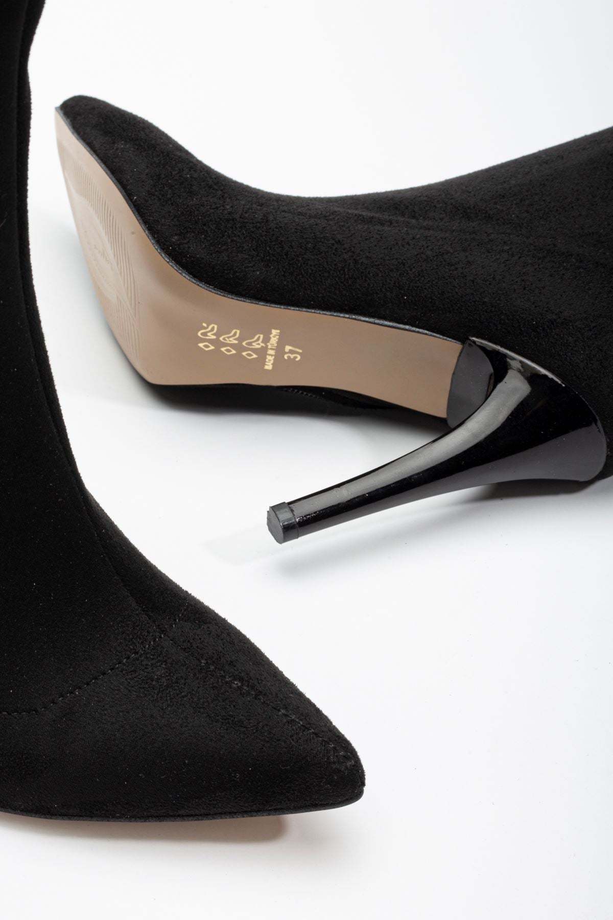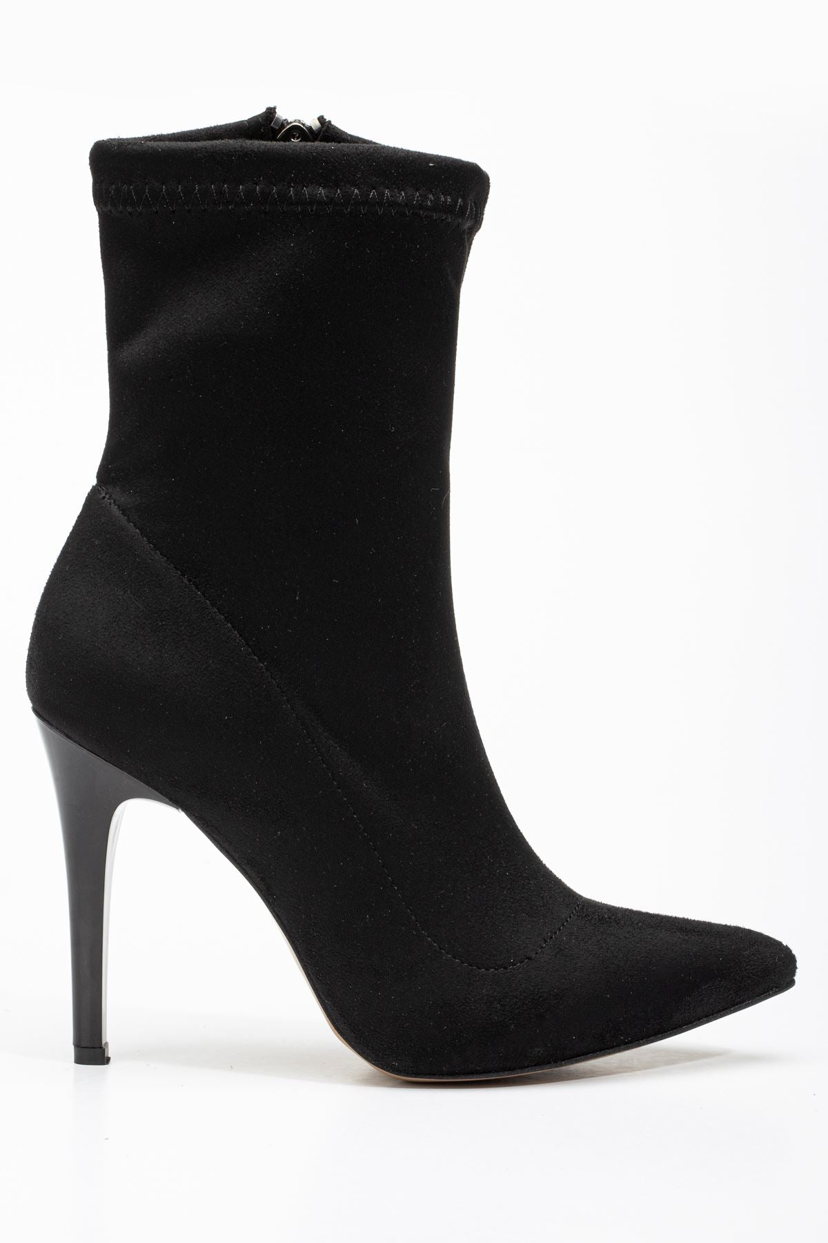 Felvix Siyah Süet Yüksek İnce Topuklu Fermuarlı Kadın Bot