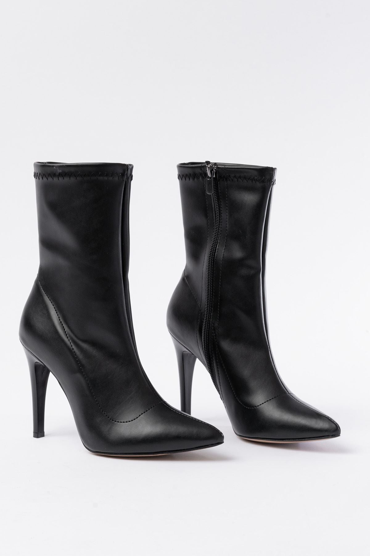 Felvix Siyah Yüksek İnce Topuklu Fermuarlı Kadın Bot