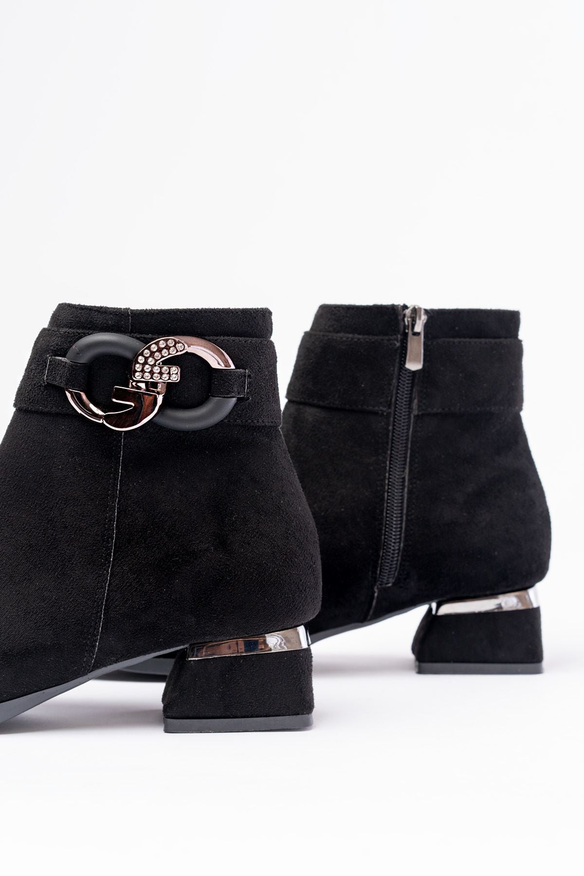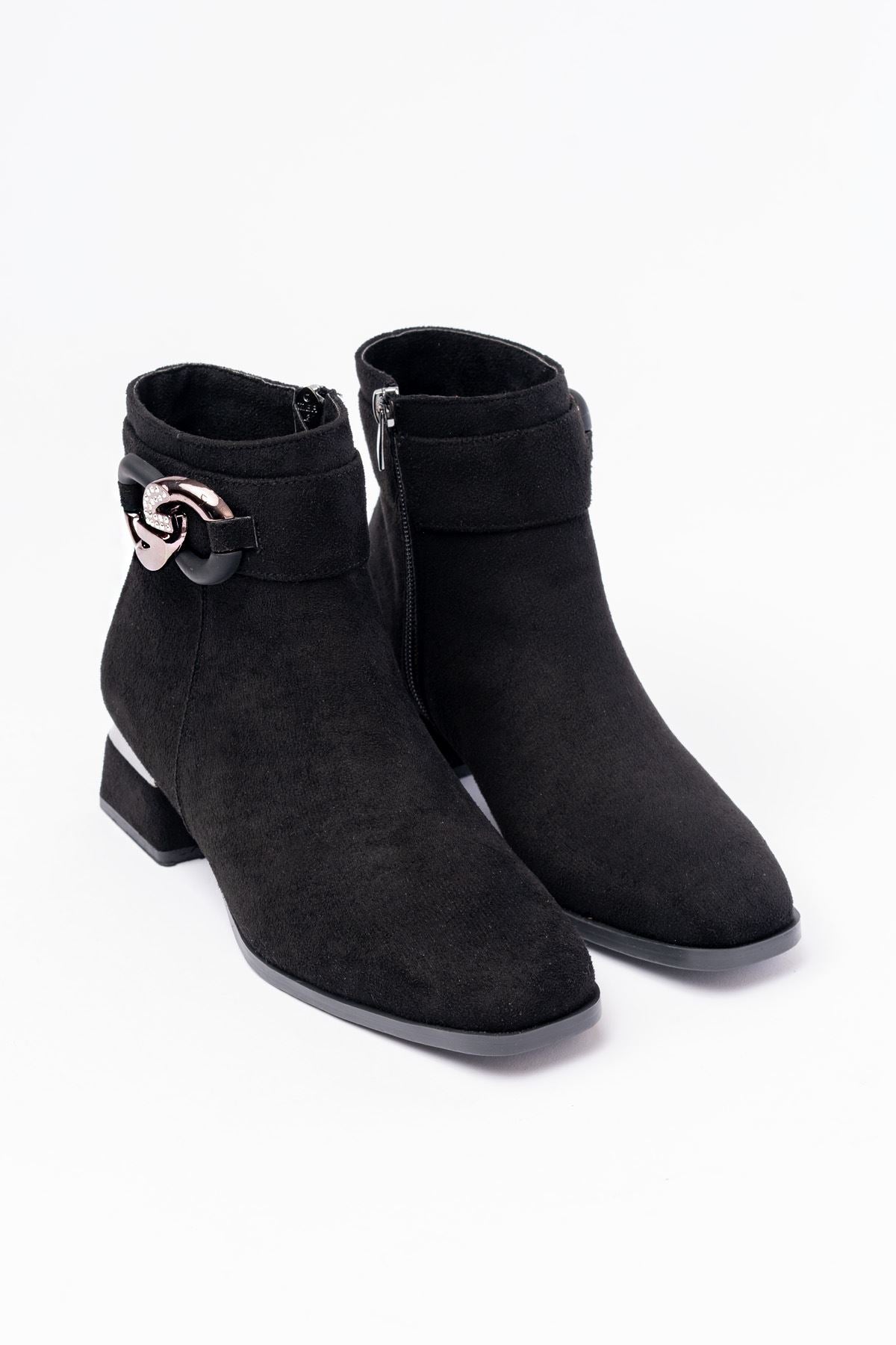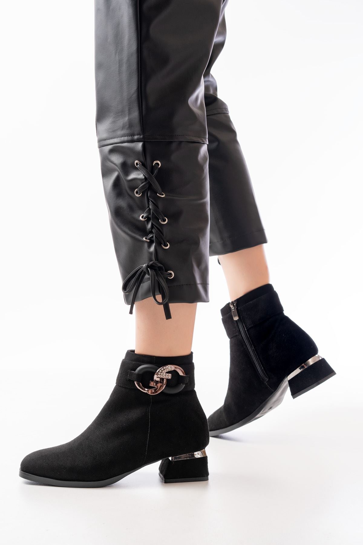 Ferilo Siyah Süet Toka Aksesuarlı Topuklu Fermuarlı Günlük Kadın Bot