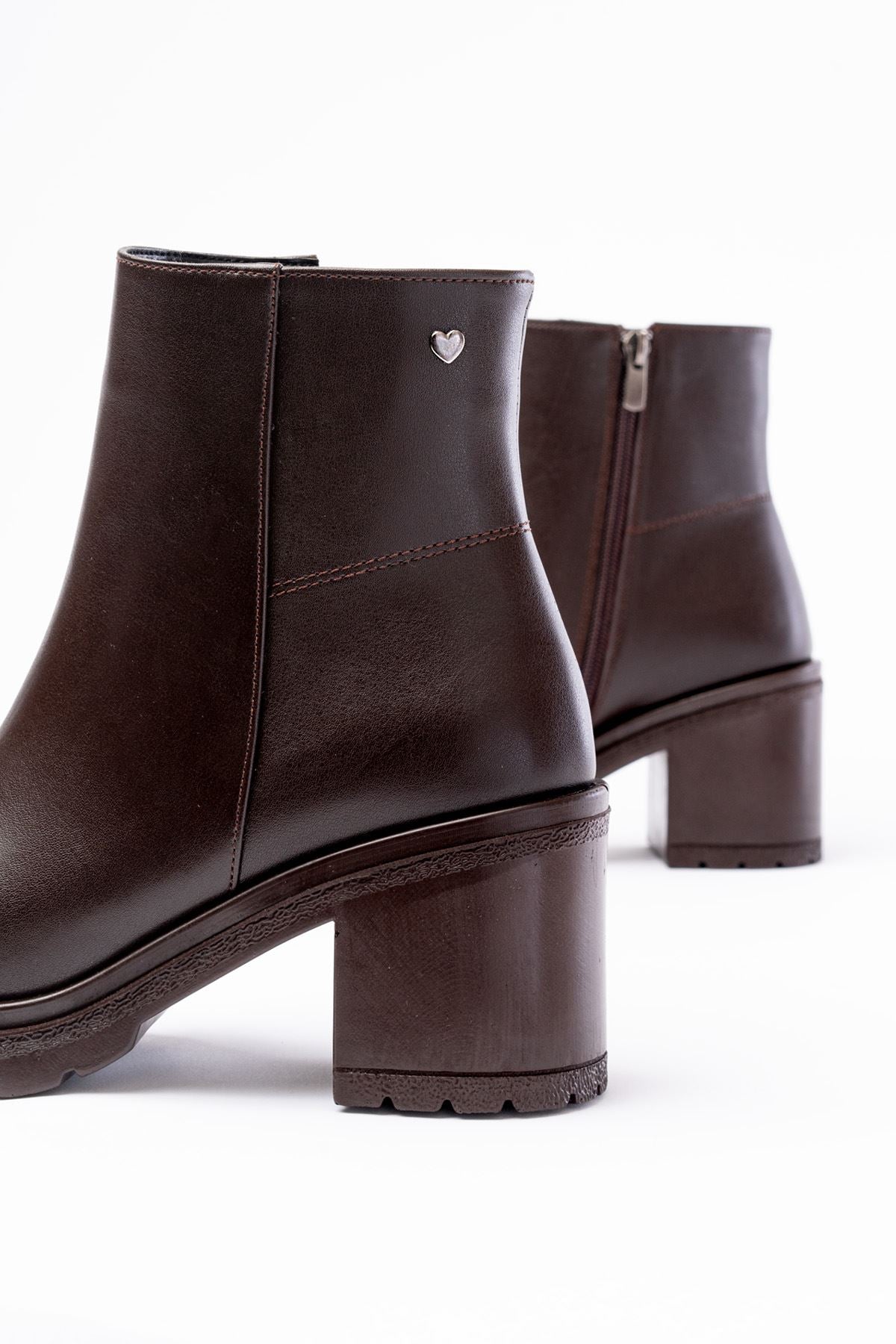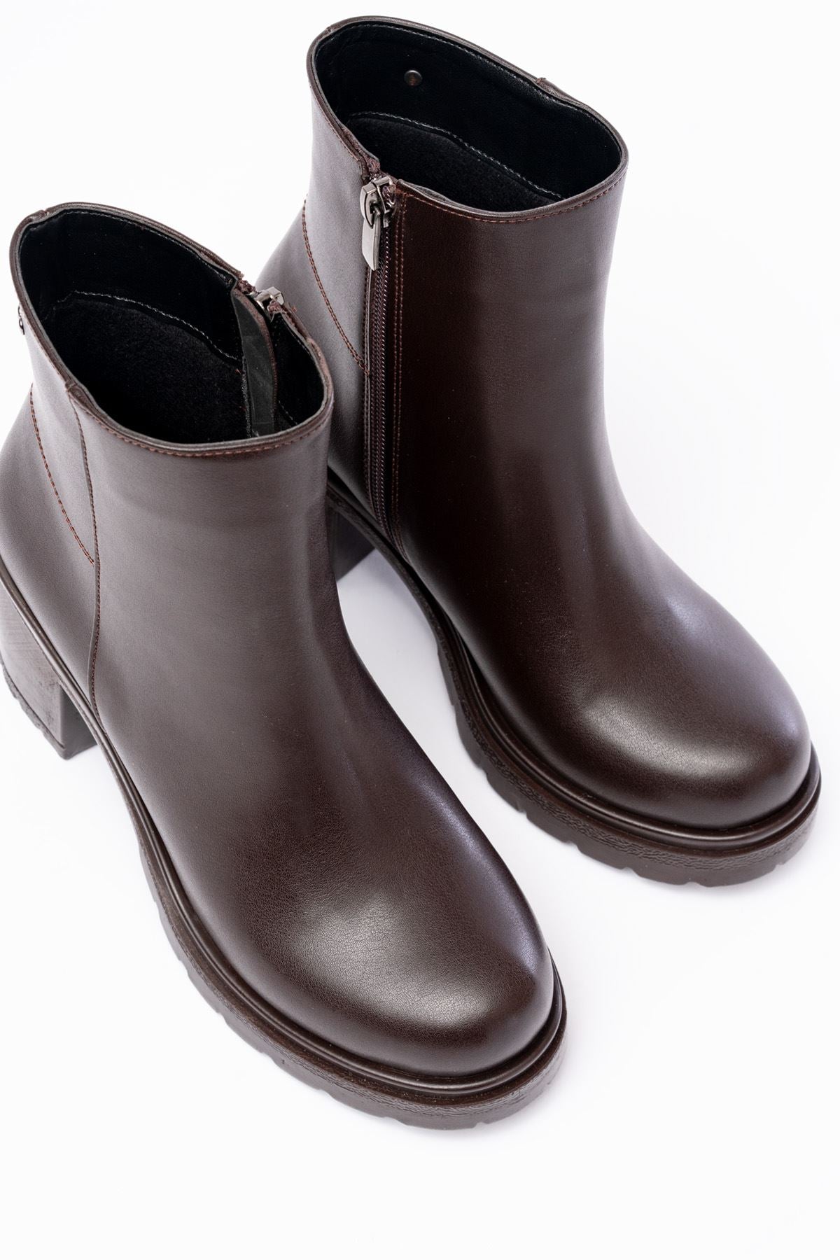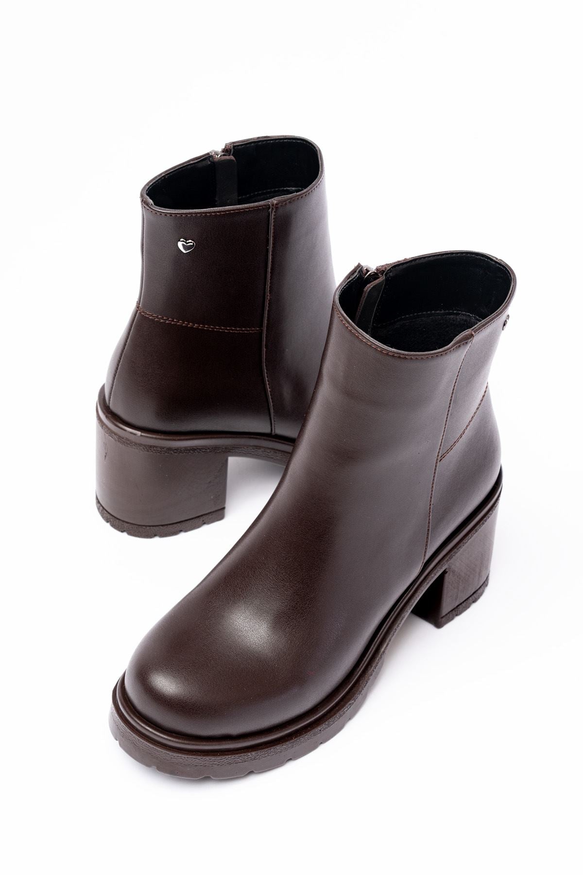 Fivra Kahverengi Fermuarlı Kalın Topuklu Günlük Kadın Bot