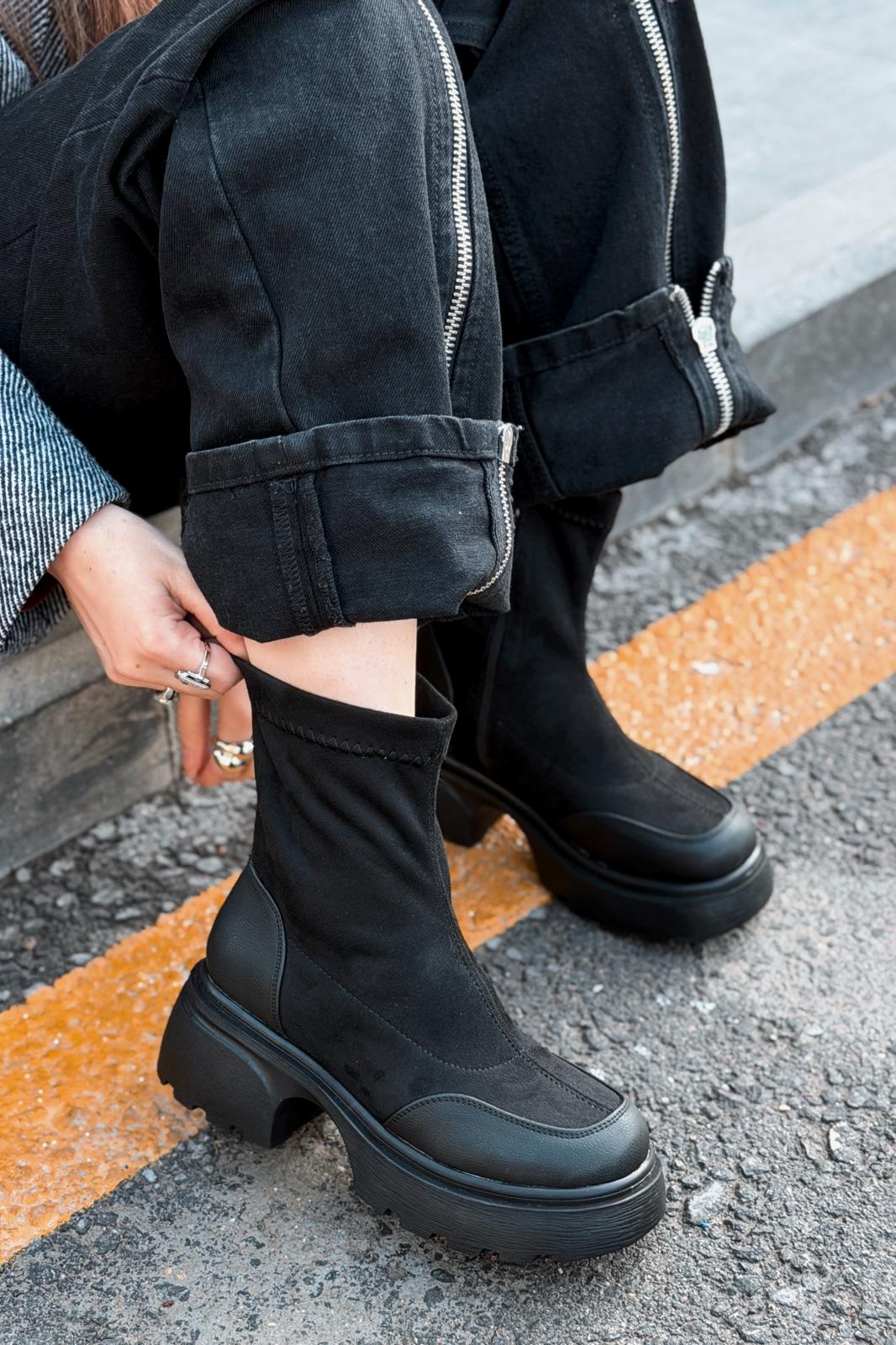 Gariel Kadın Kalın Taban Bot Siyah Süet