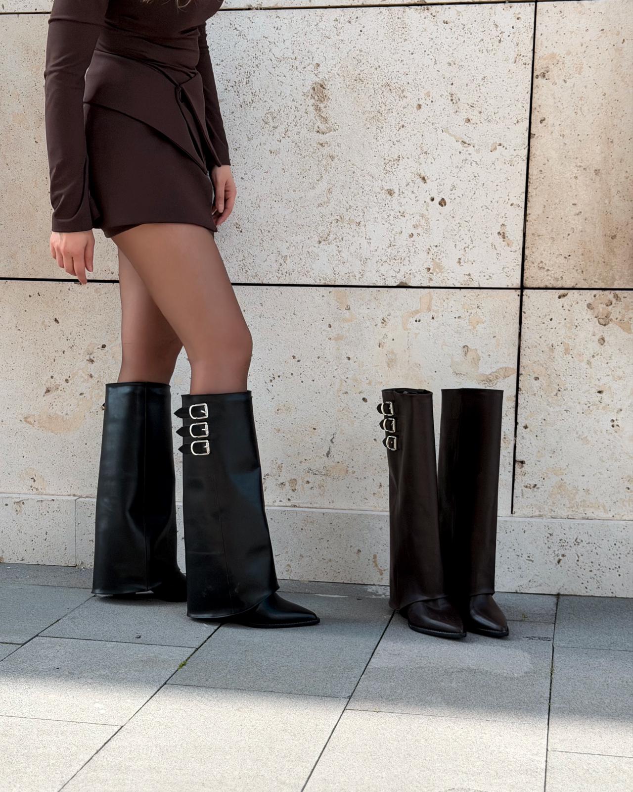 Hilora Kadın Kovboy Çizme Siyah Mat Deri