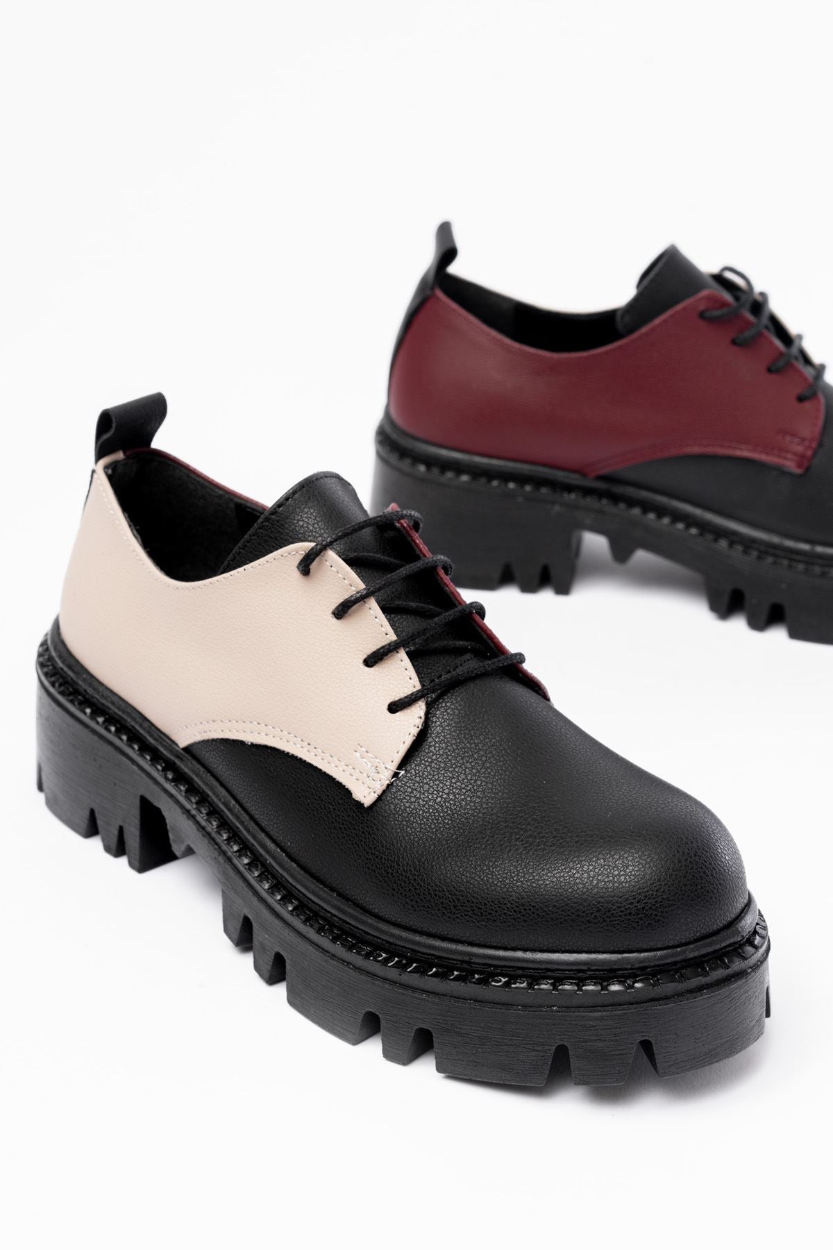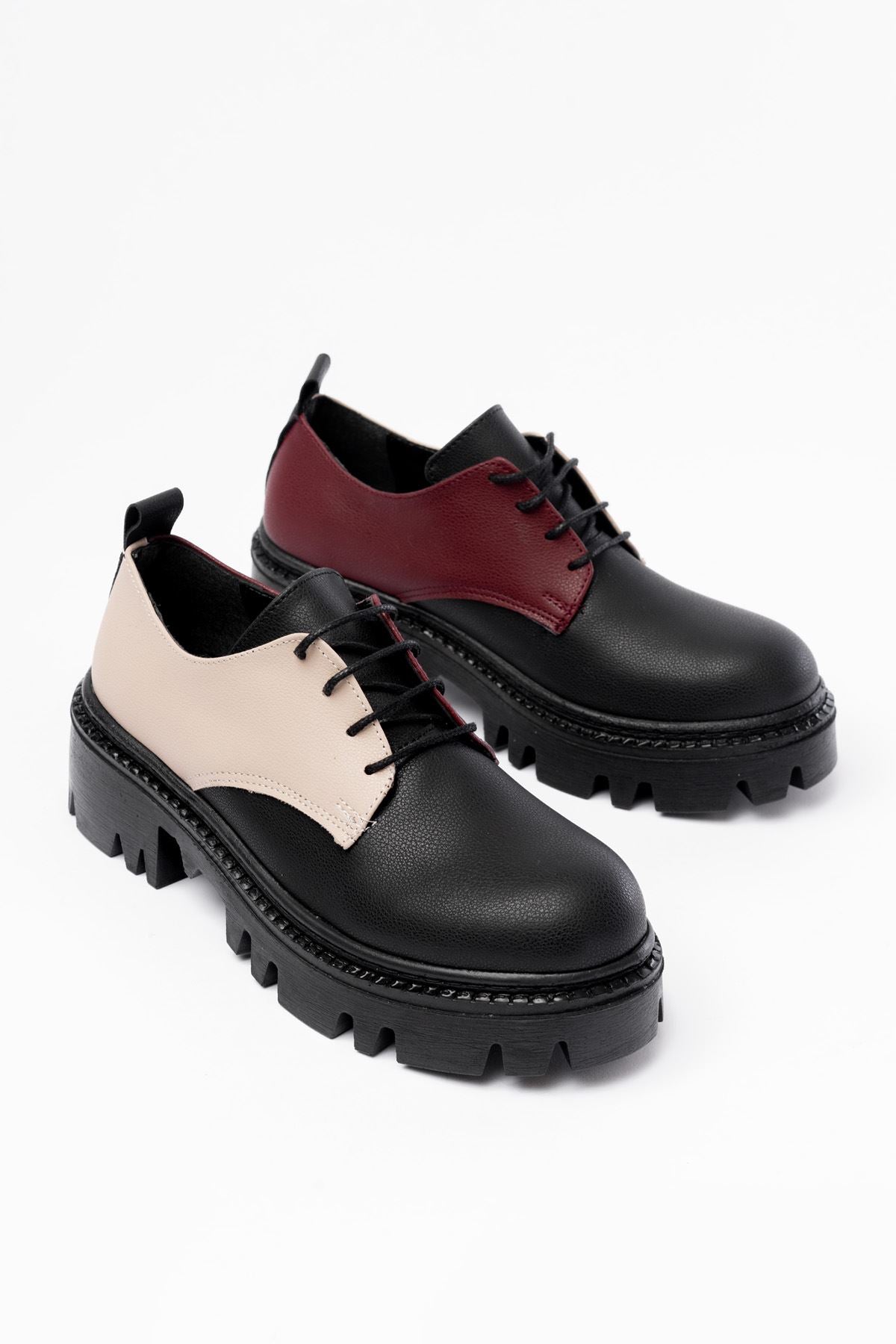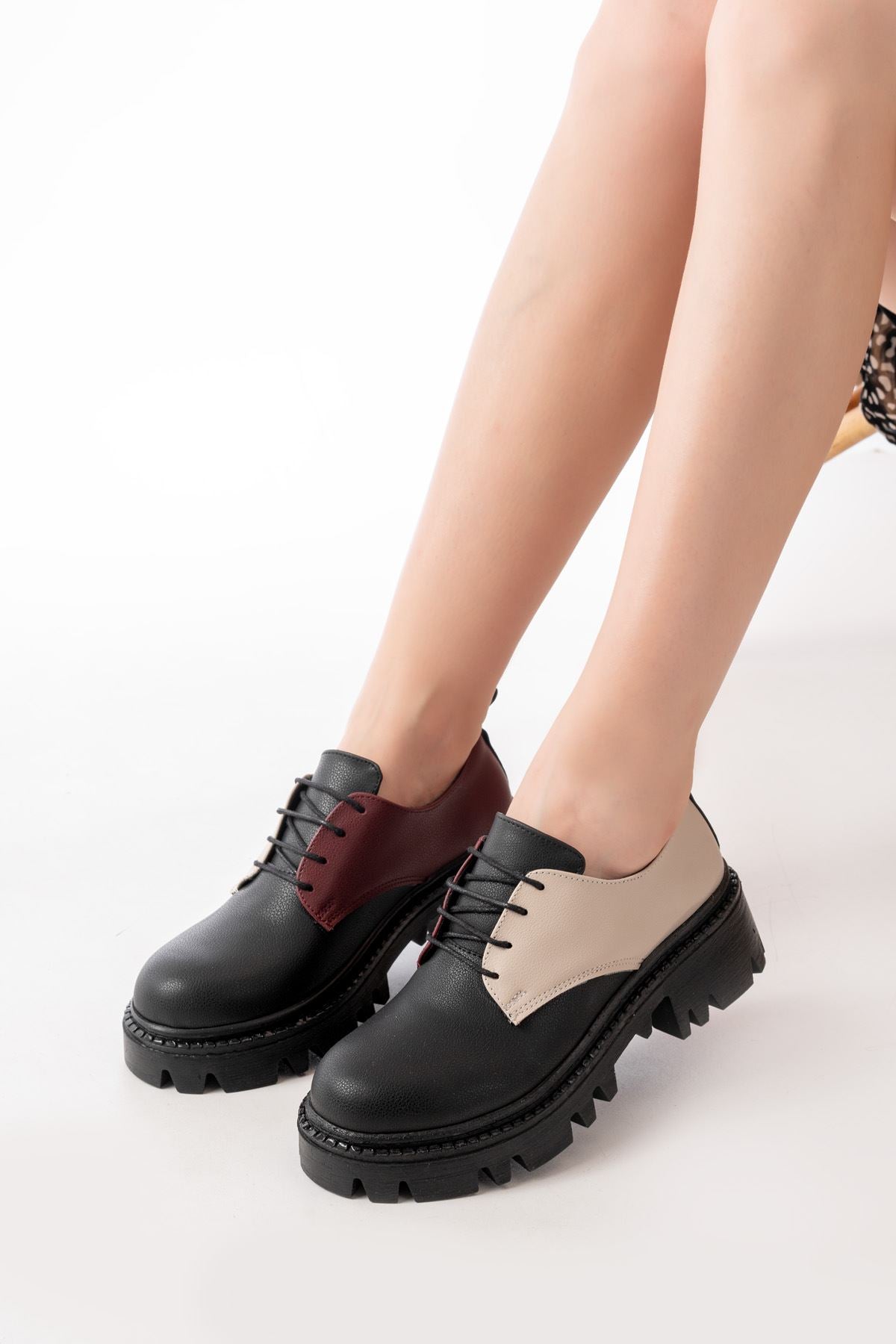Junix Siyah Garni Bağcıklı Günlük Yüksek Tabanlı Loafer Ayakkabı