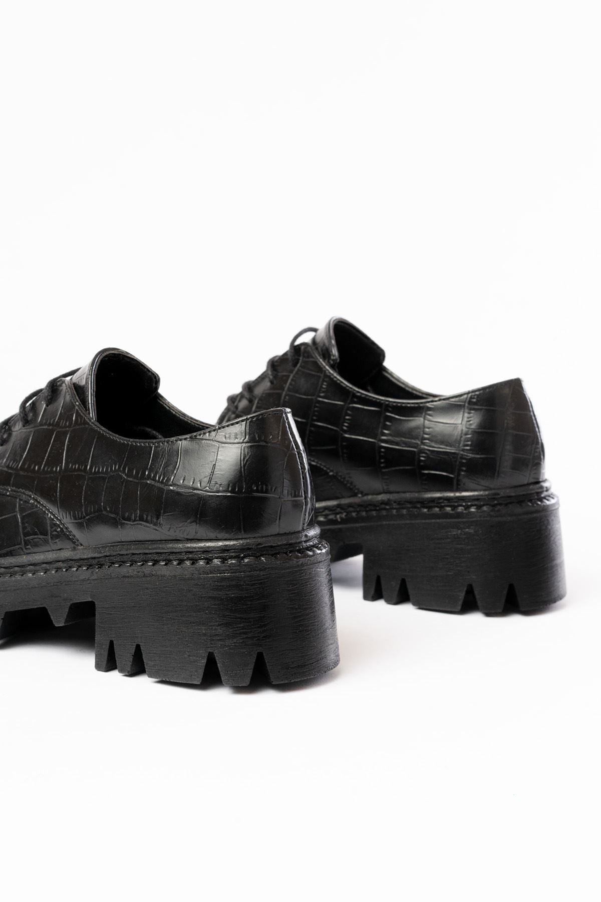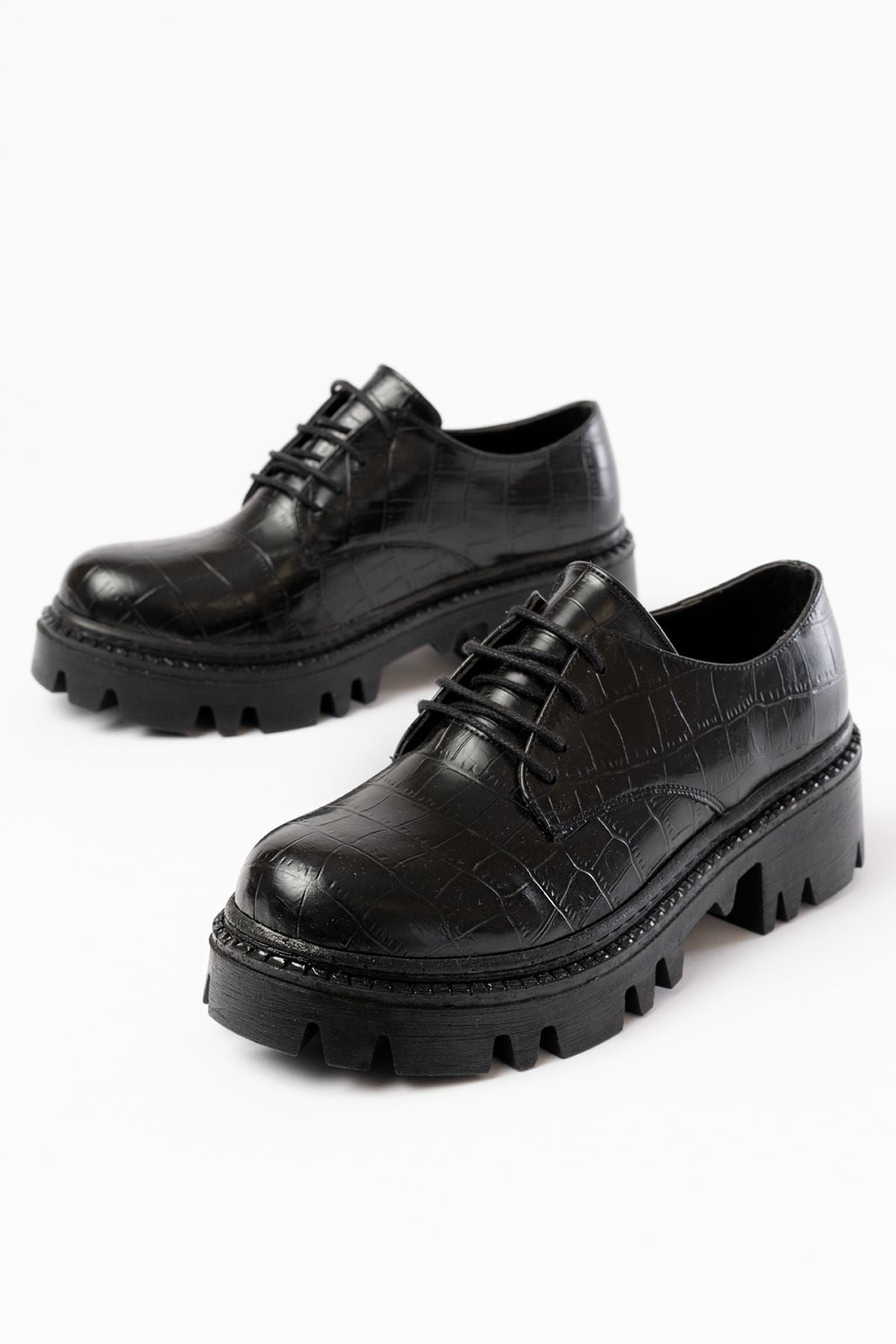 Junix Siyah Kroko Bağcıklı Günlük Yüksek Tabanlı Loafer Ayakkabı
