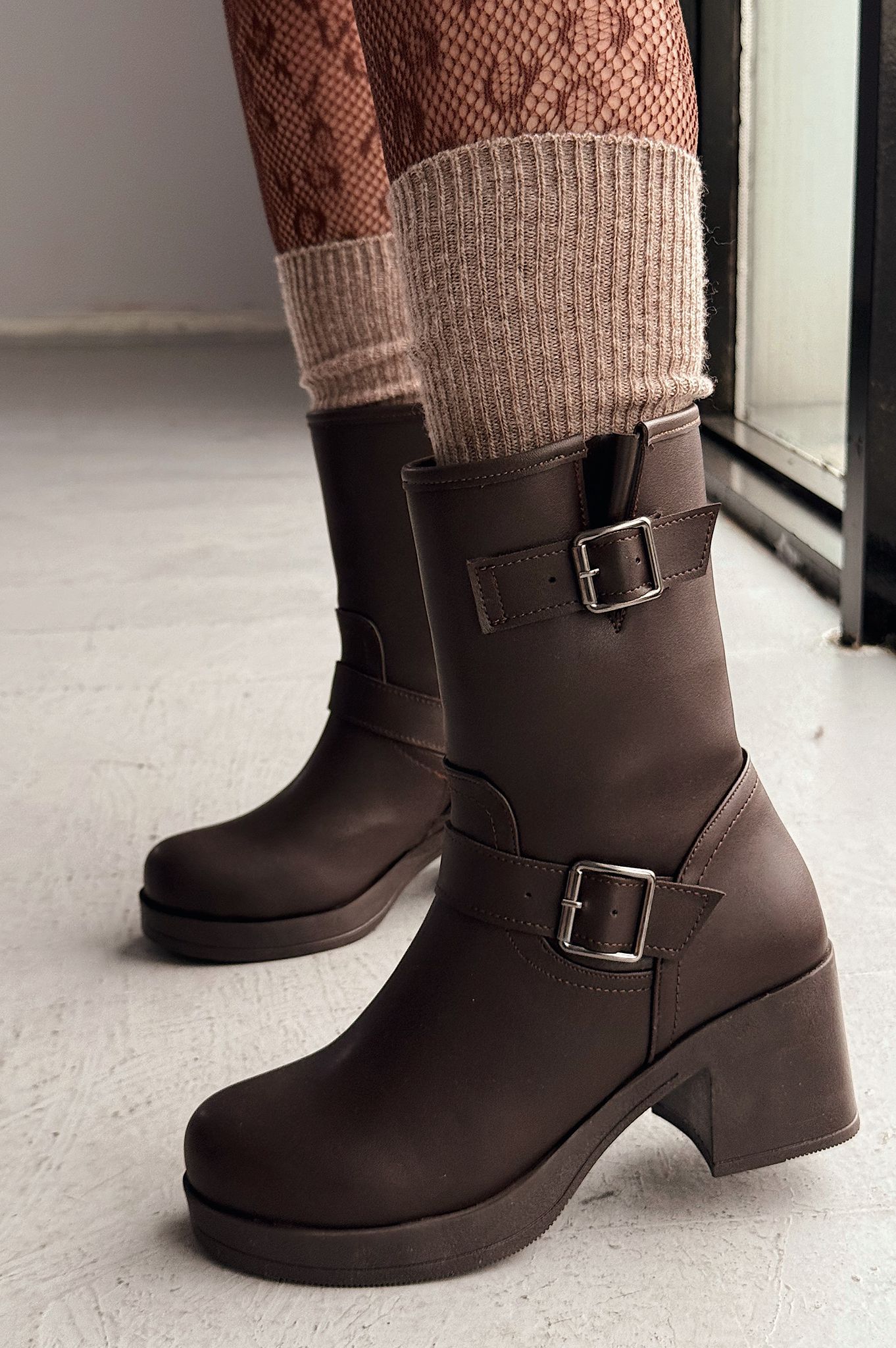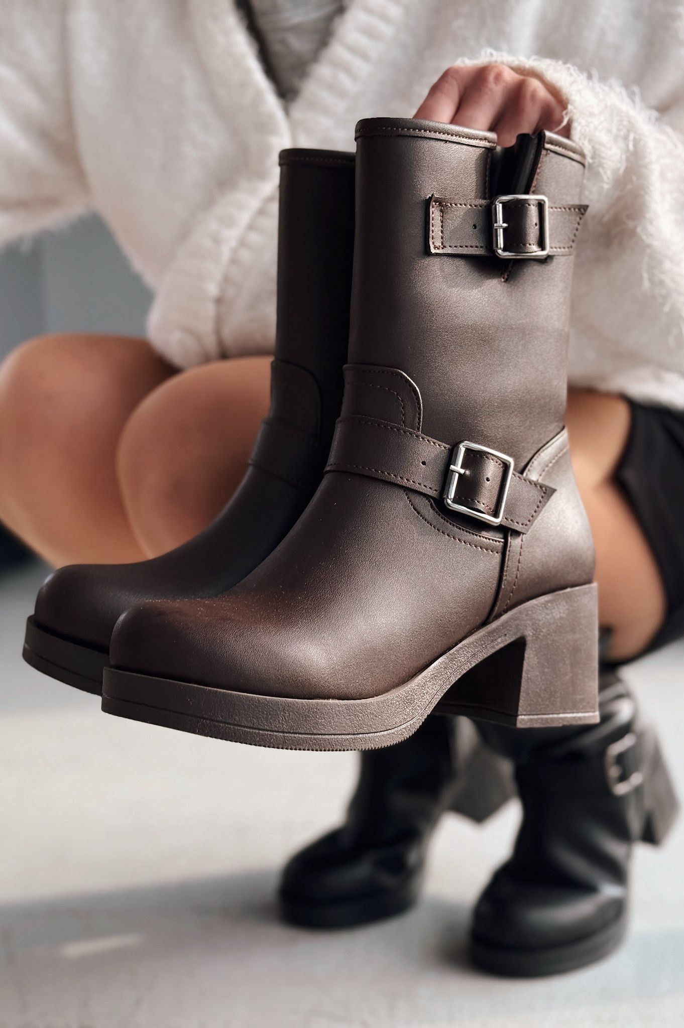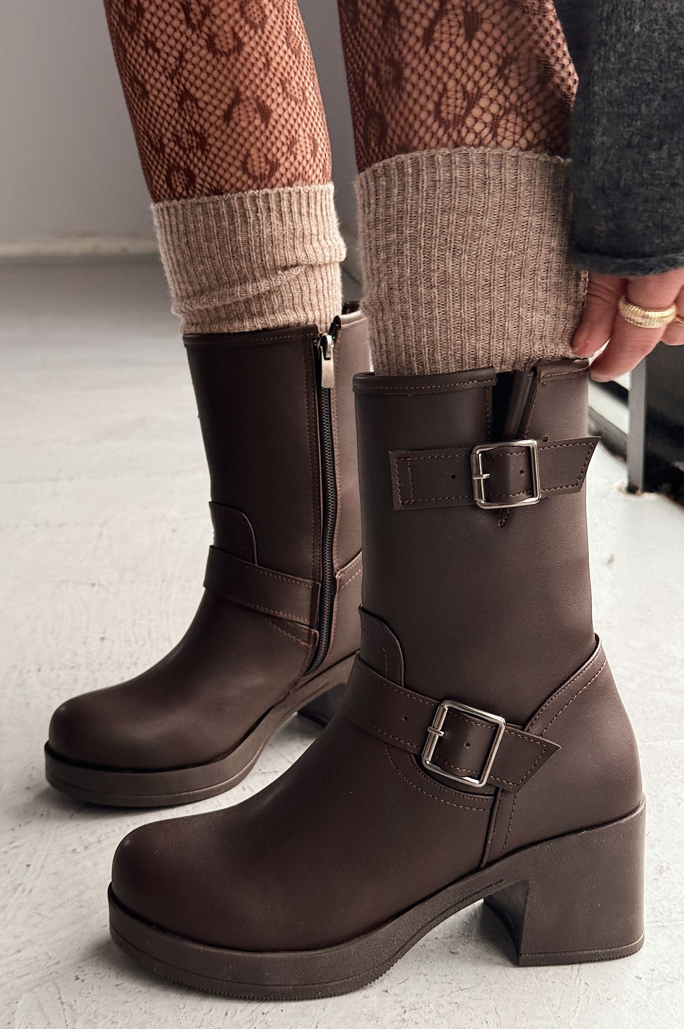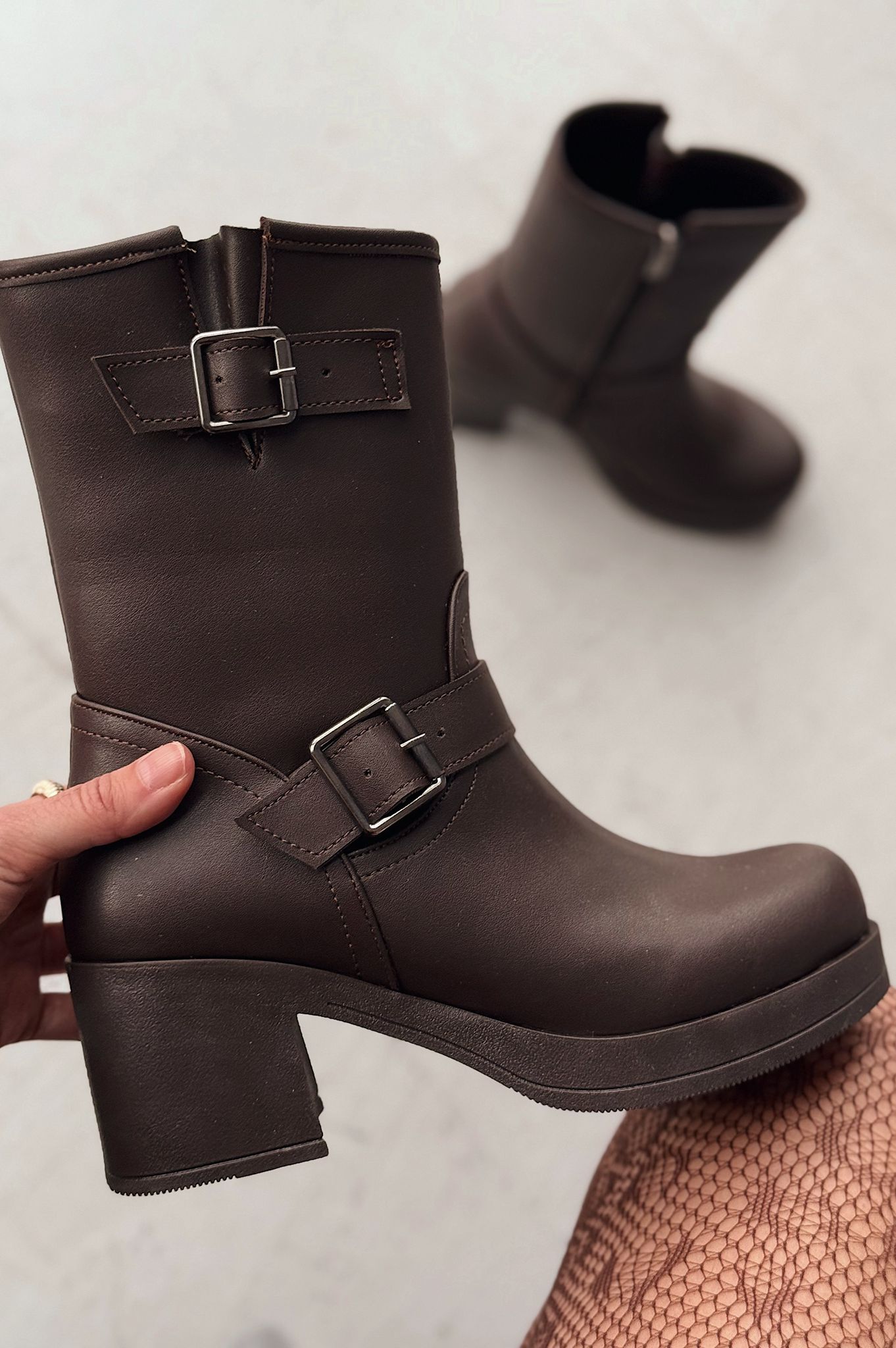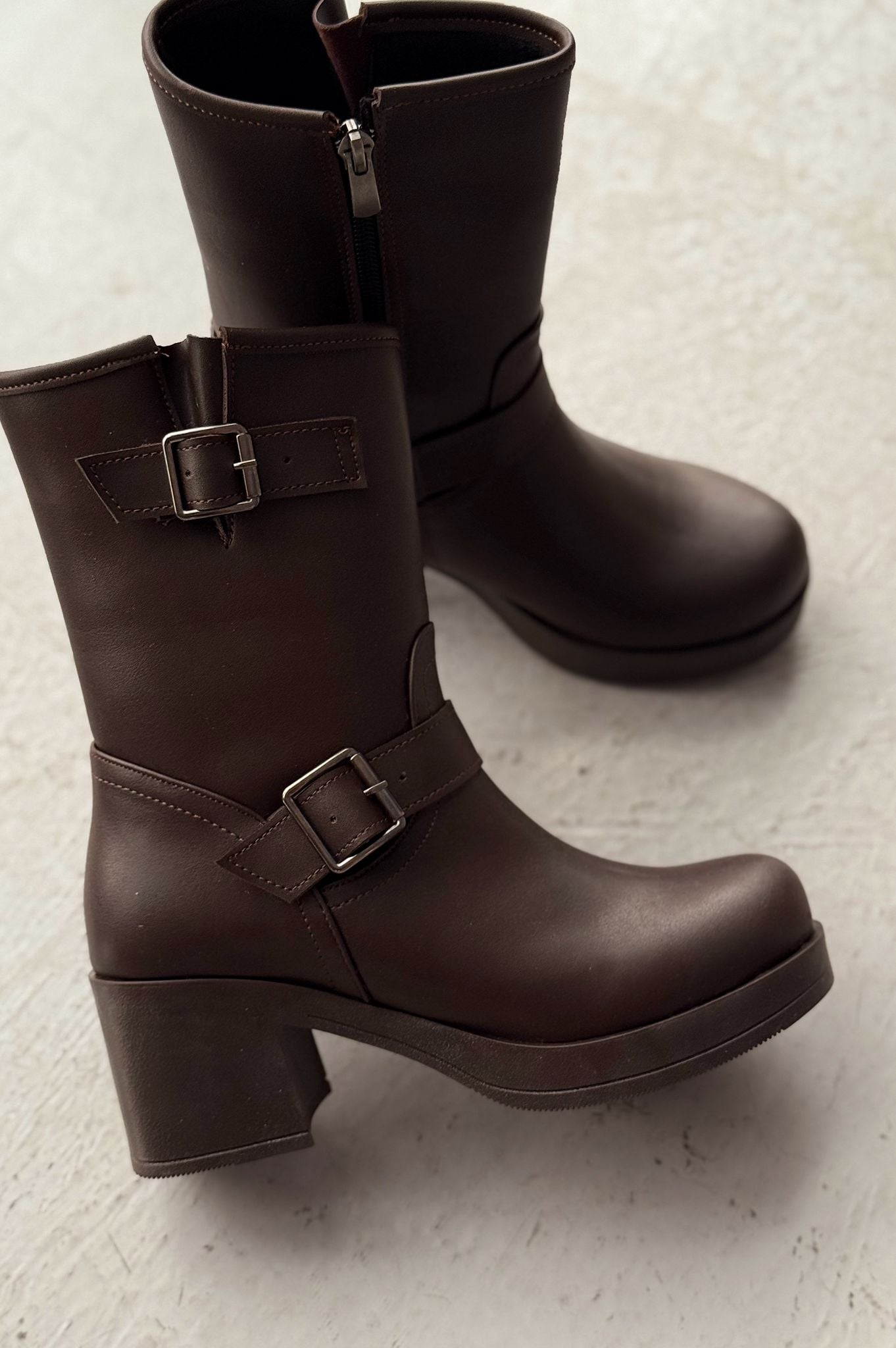 Kalora Kahverengi Toka Aksesuarlı Fermuarlı Kalın Topuklu Günlük Kadın Bot