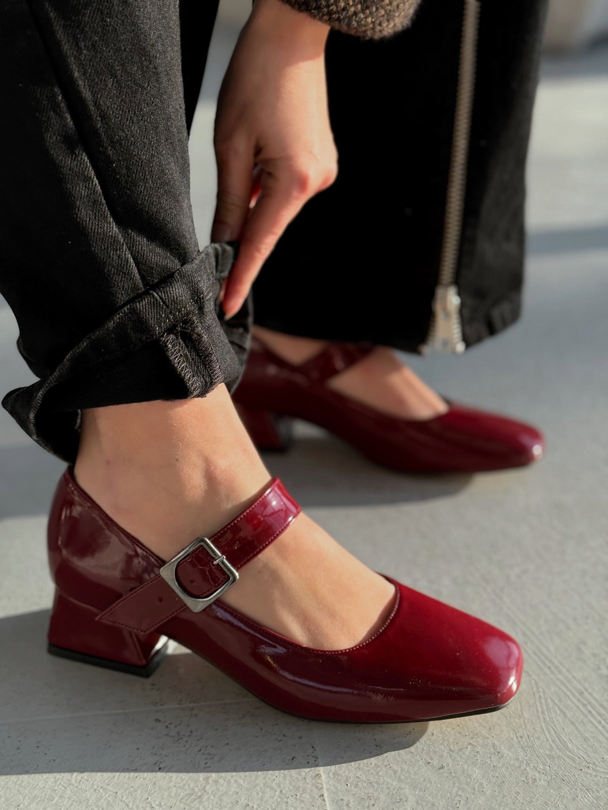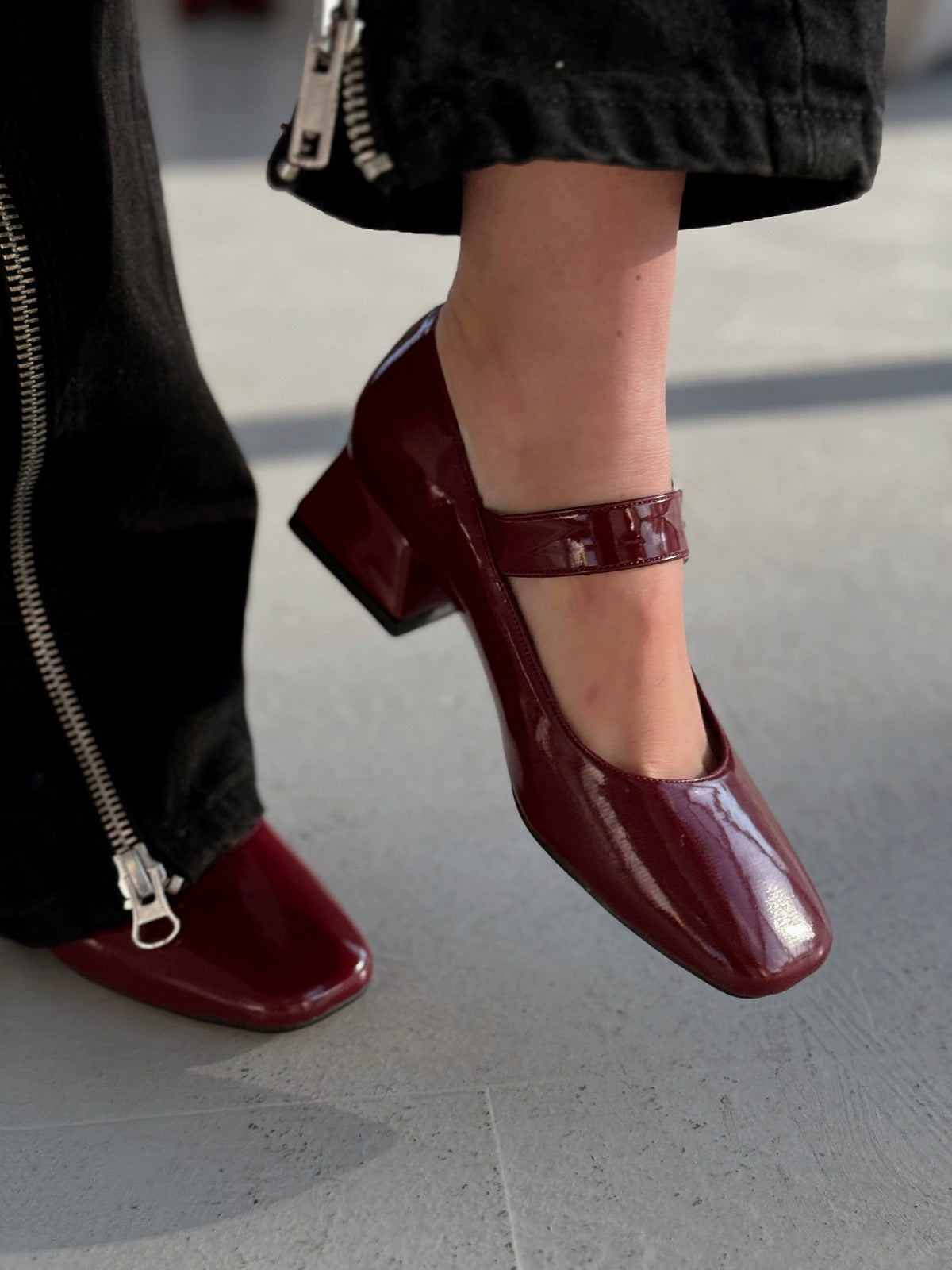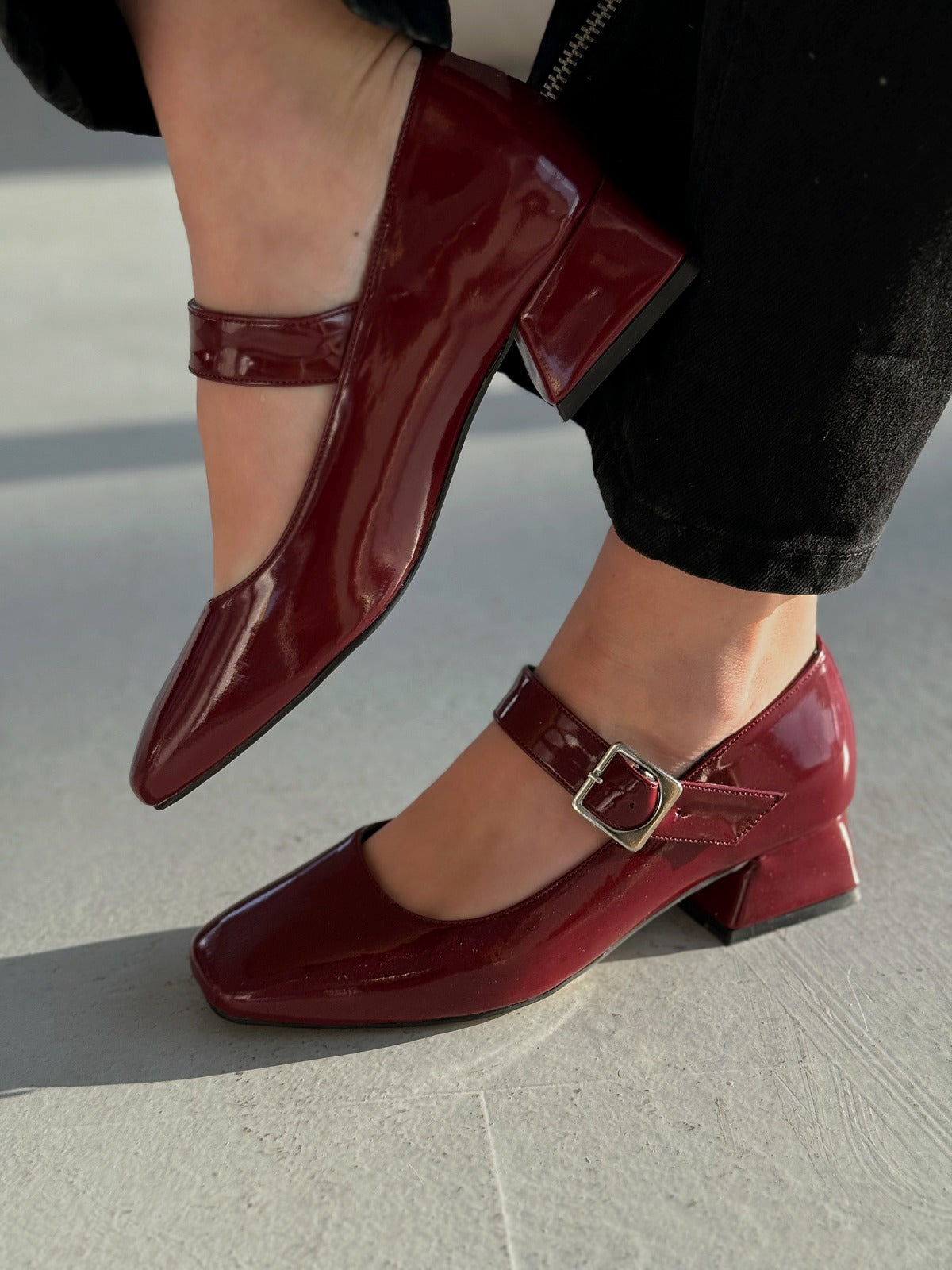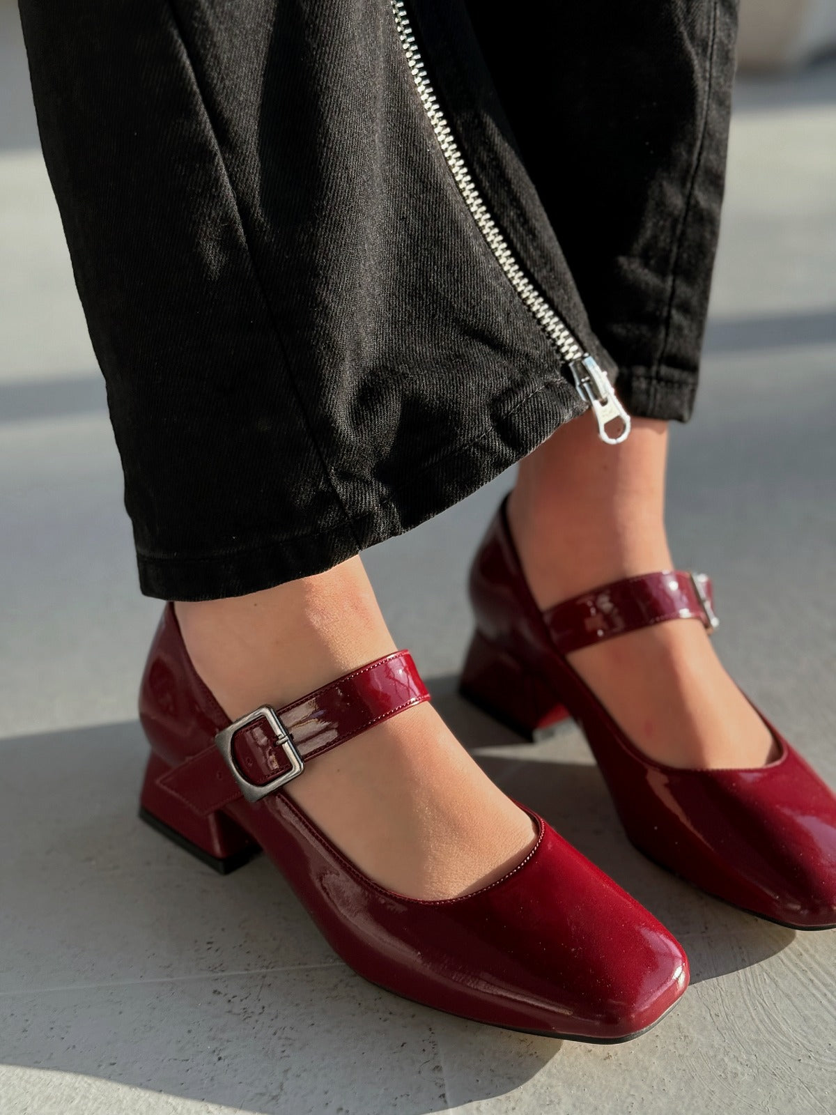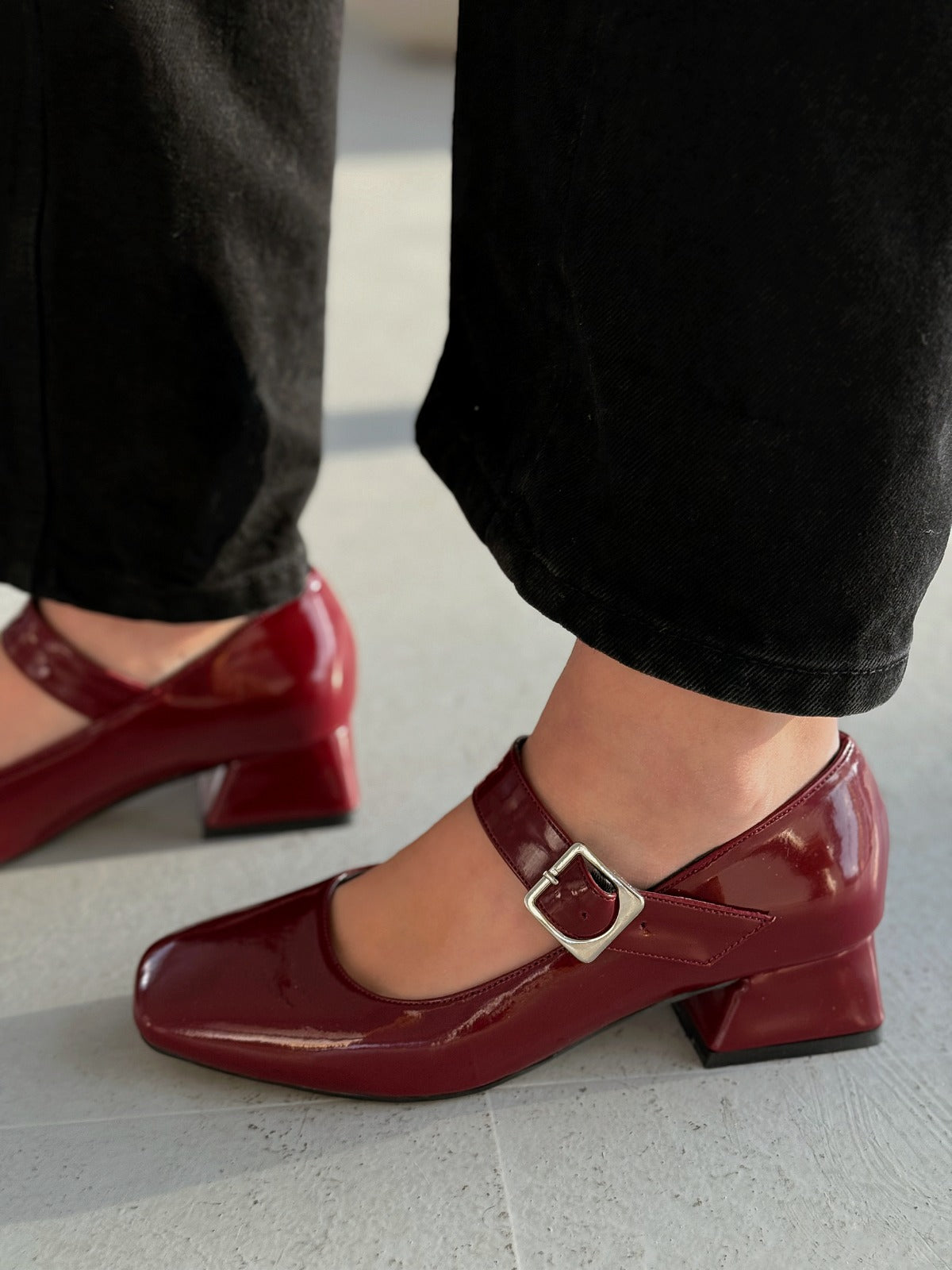 Lexyro Bordo Rugan Kalın Topuklu Kadın Ayakkabı