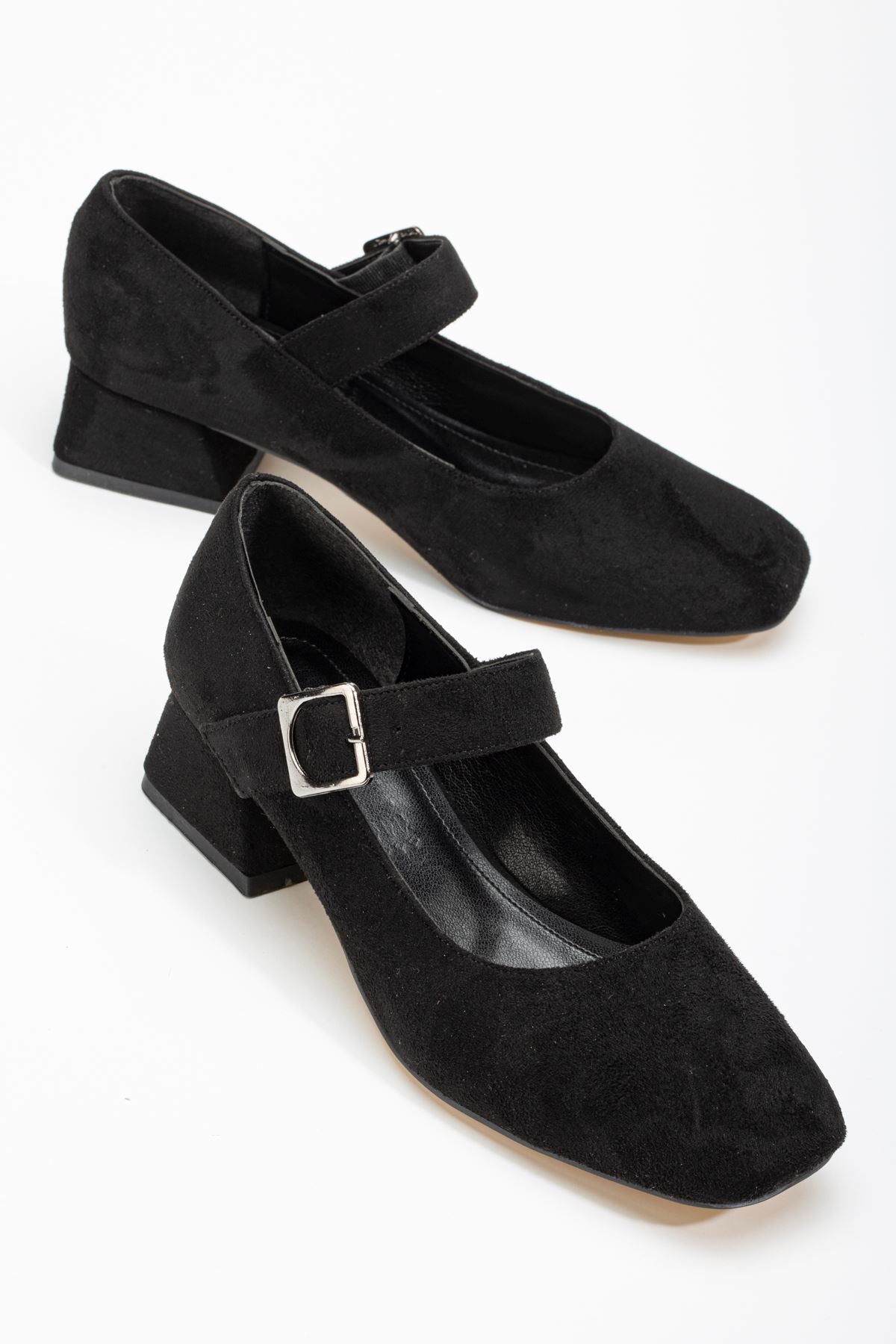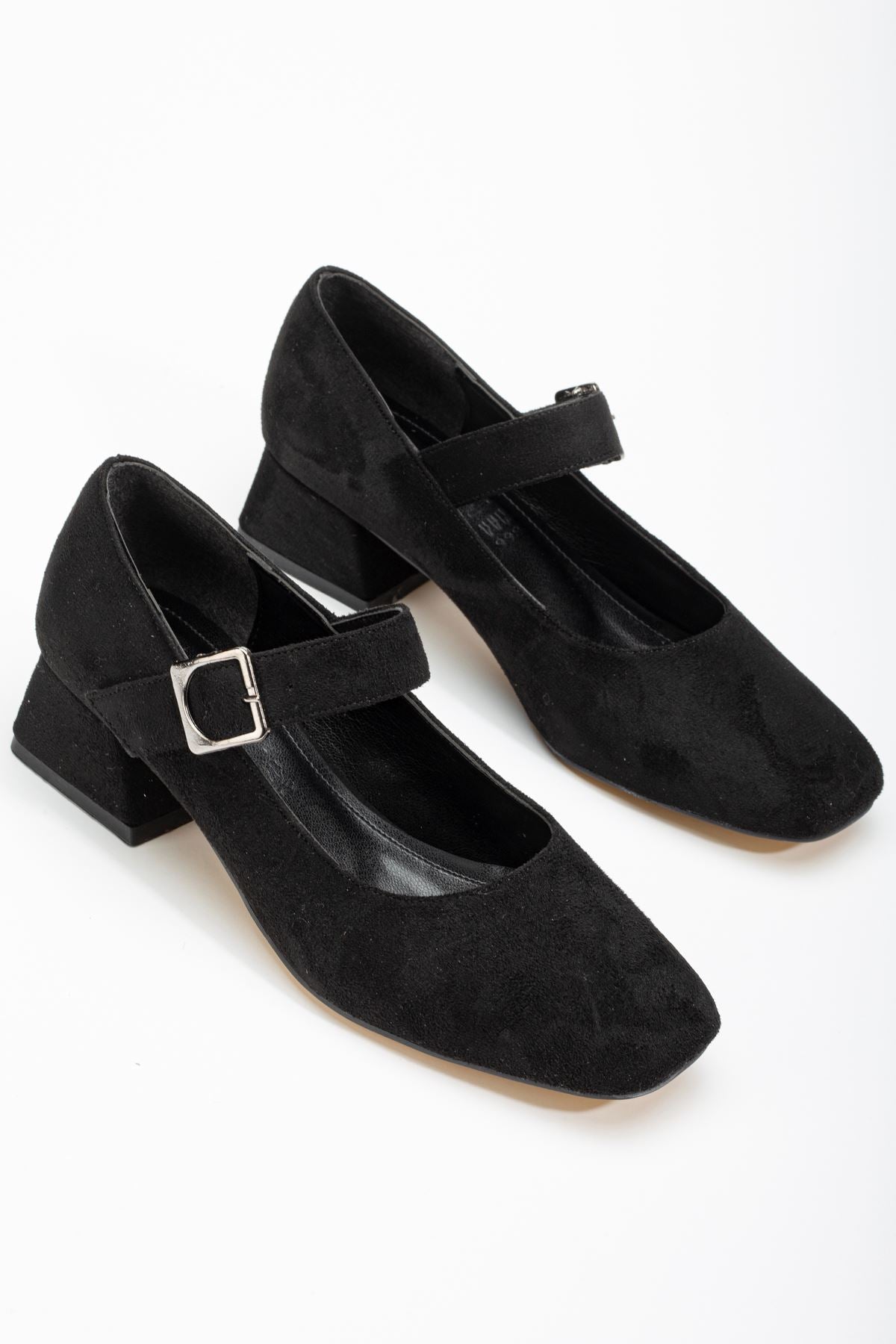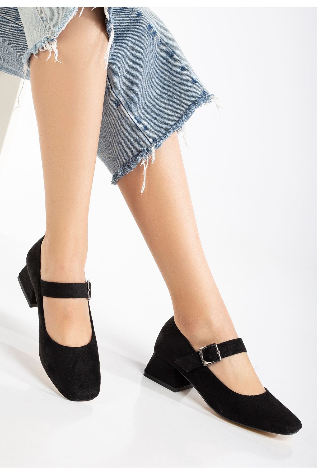 Lexyro Siyah Süet Kalın Topuklu Kadın Ayakkabı