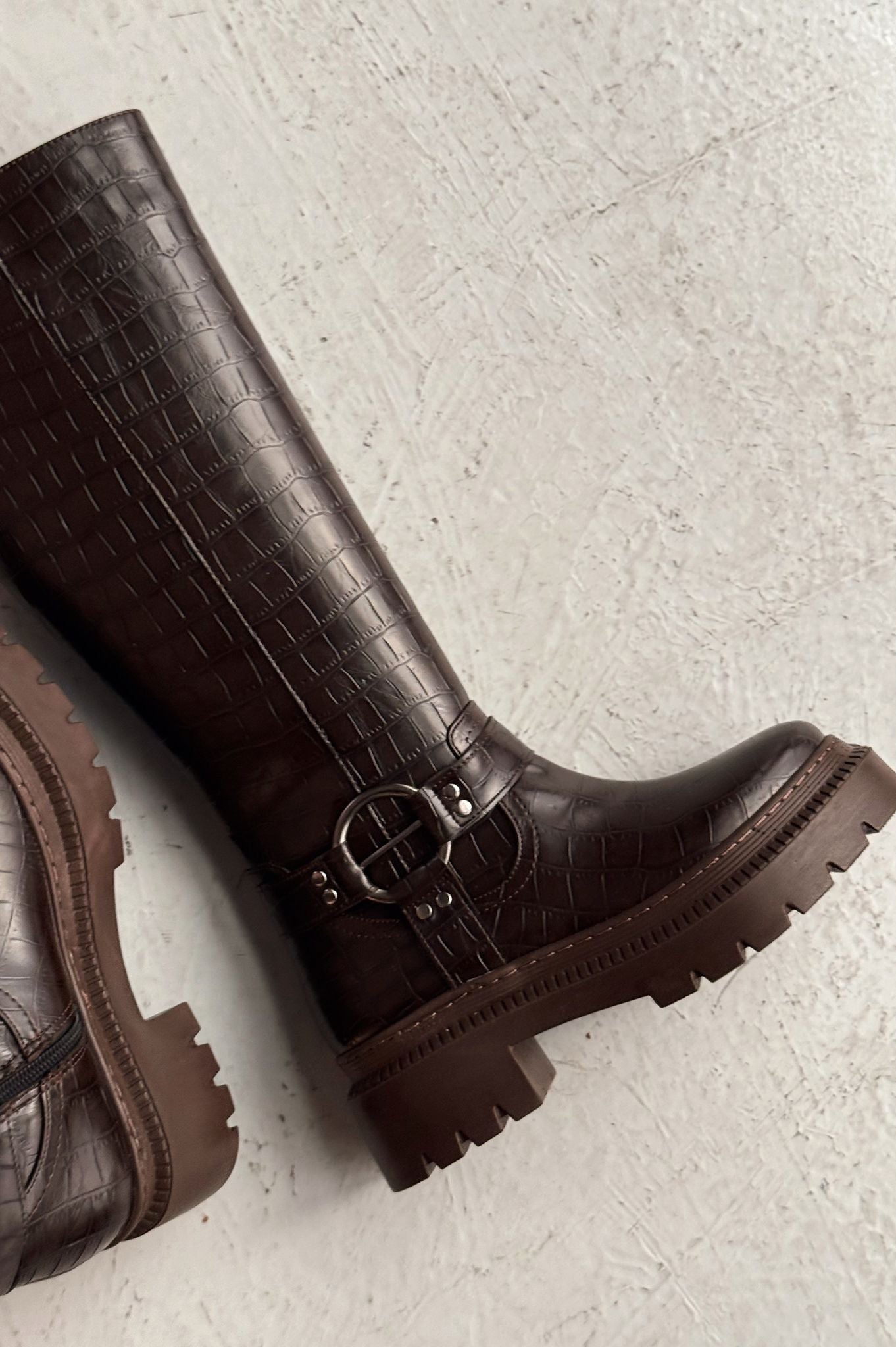 Lumio Kahverengi Kroko Fermuarlı Günlük Kadın Çizme