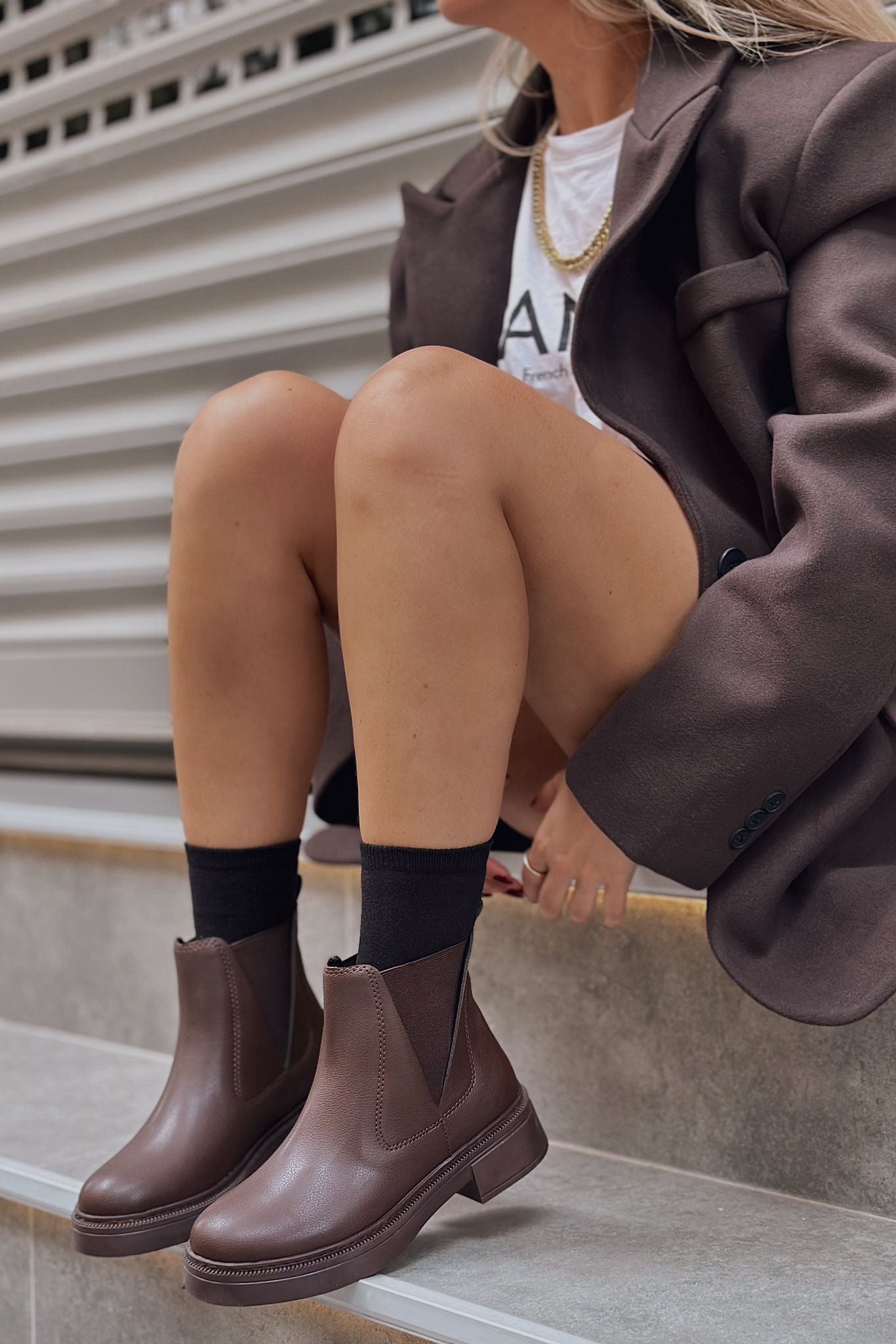 Molija Mat Deri Kalın Taban Acı Kahve Kadın Postal
