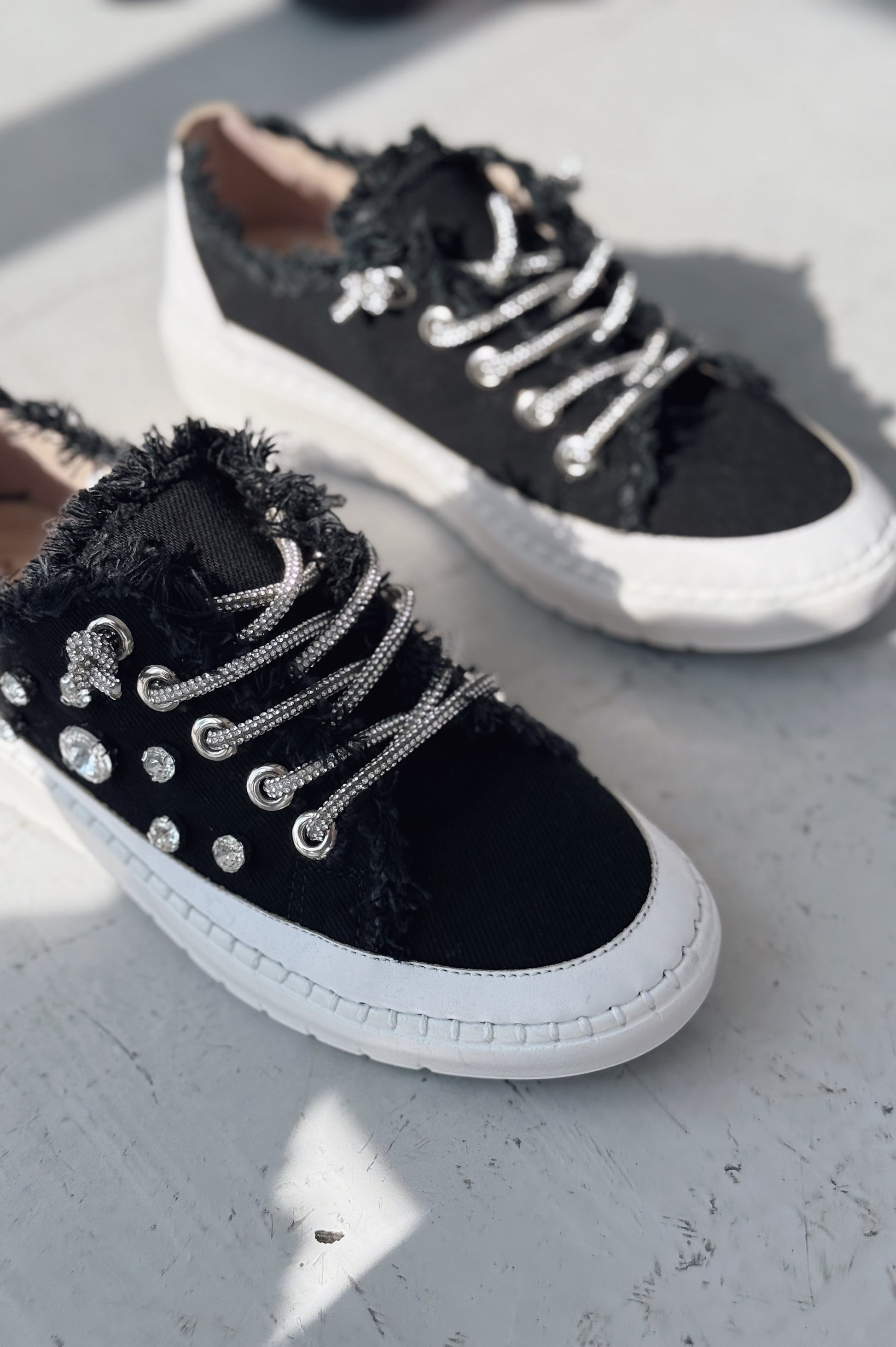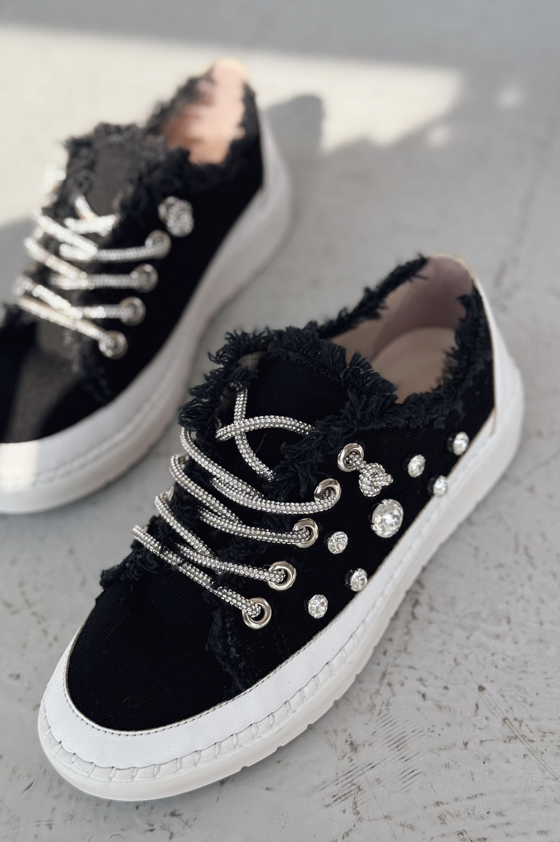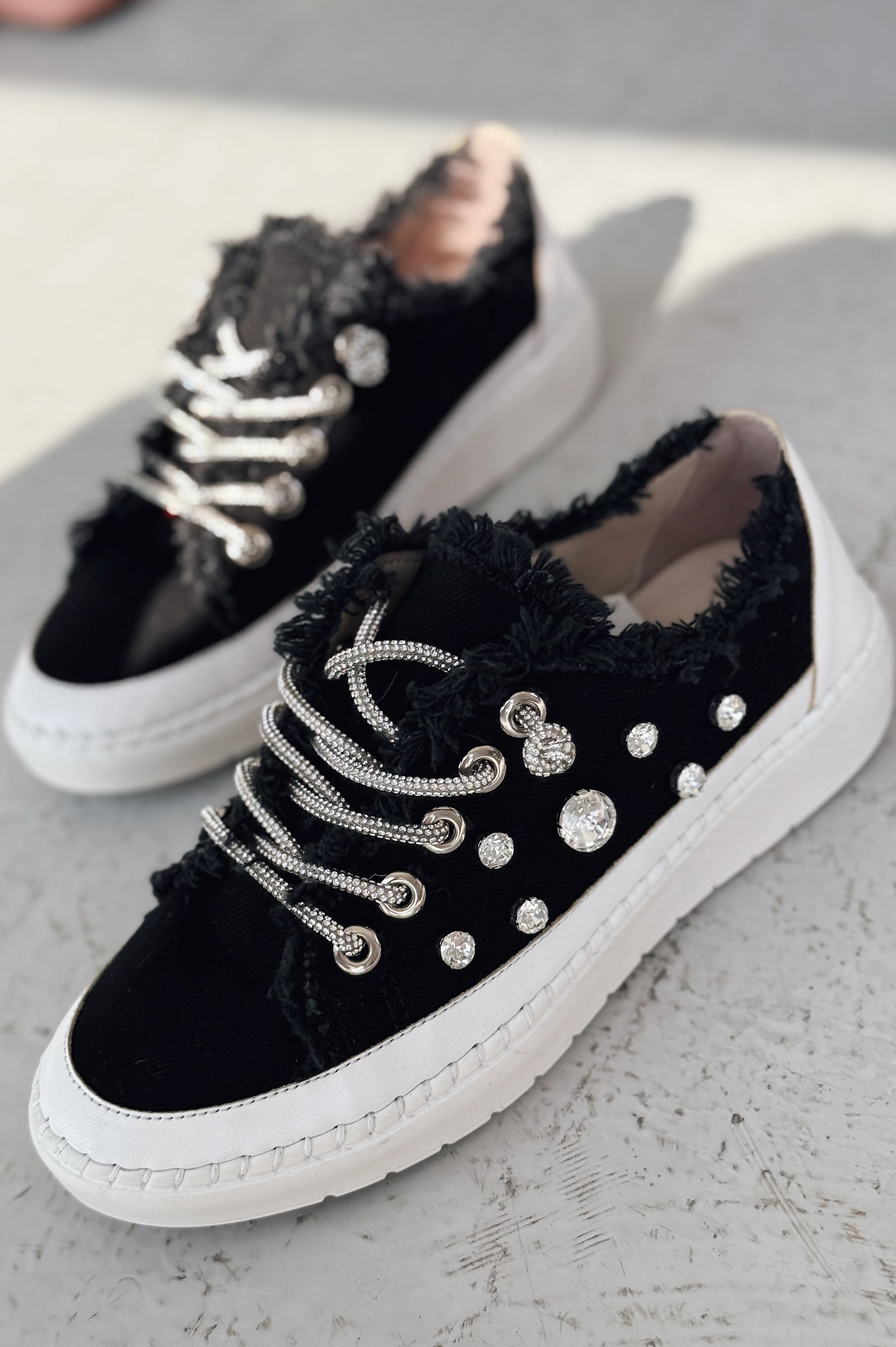 Monove Taş Detaylı Siyah Jean Kadın Spor Ayakkabı