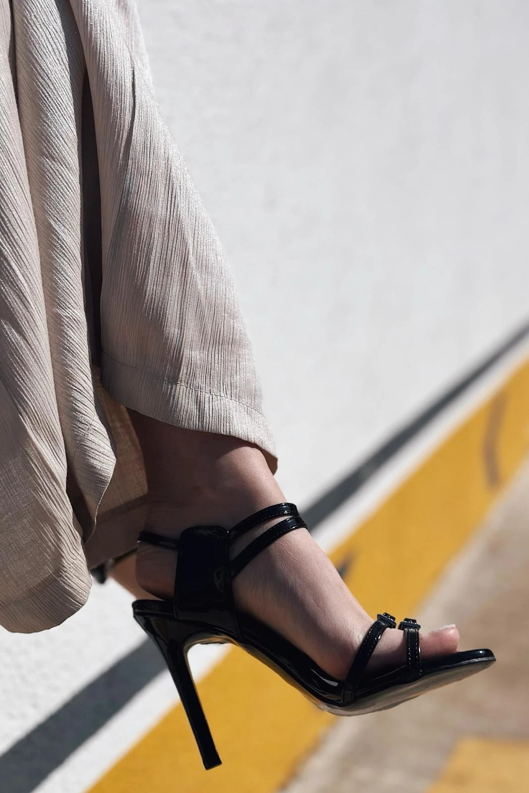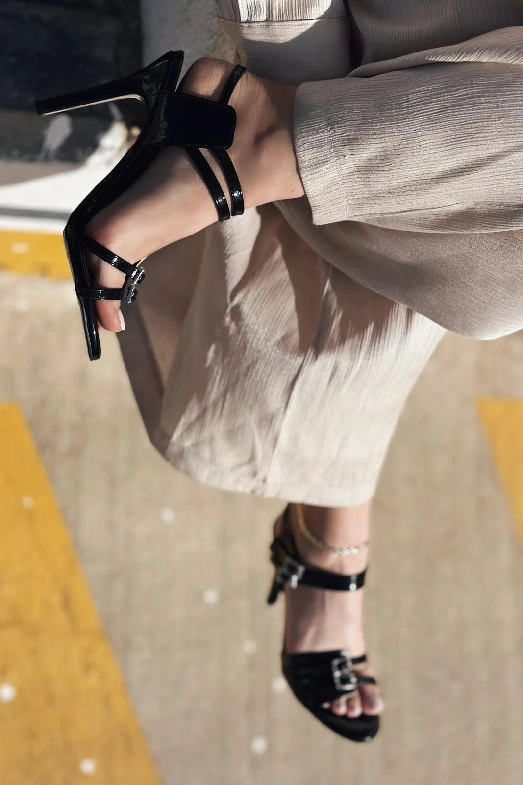 Morves Rugan Taş Toka Detaylı Topuklu Ayakkabı Siyah