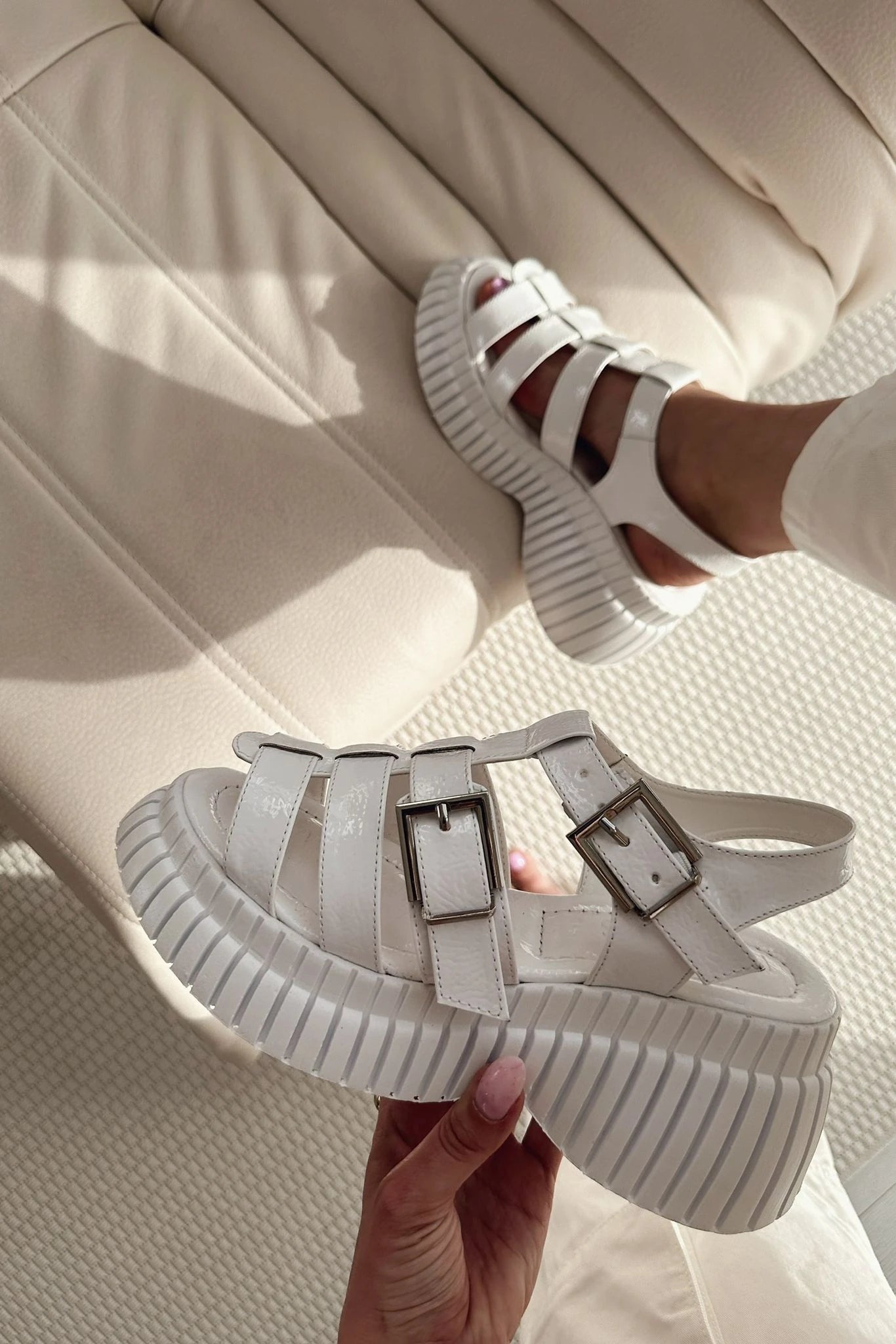 Movina Rugan Toka Detaylı Kalın Taban Kadın Sandalet Beyaz