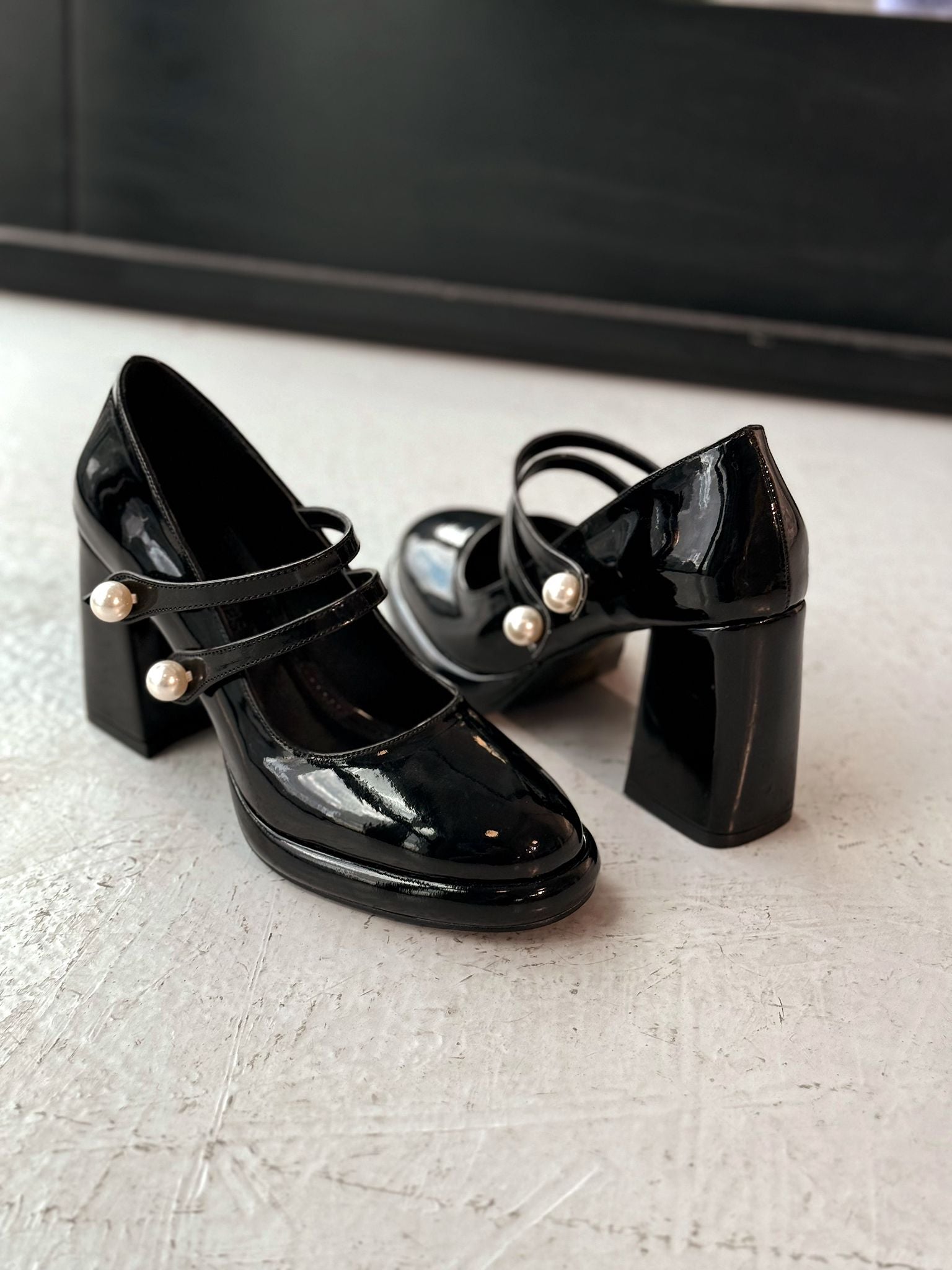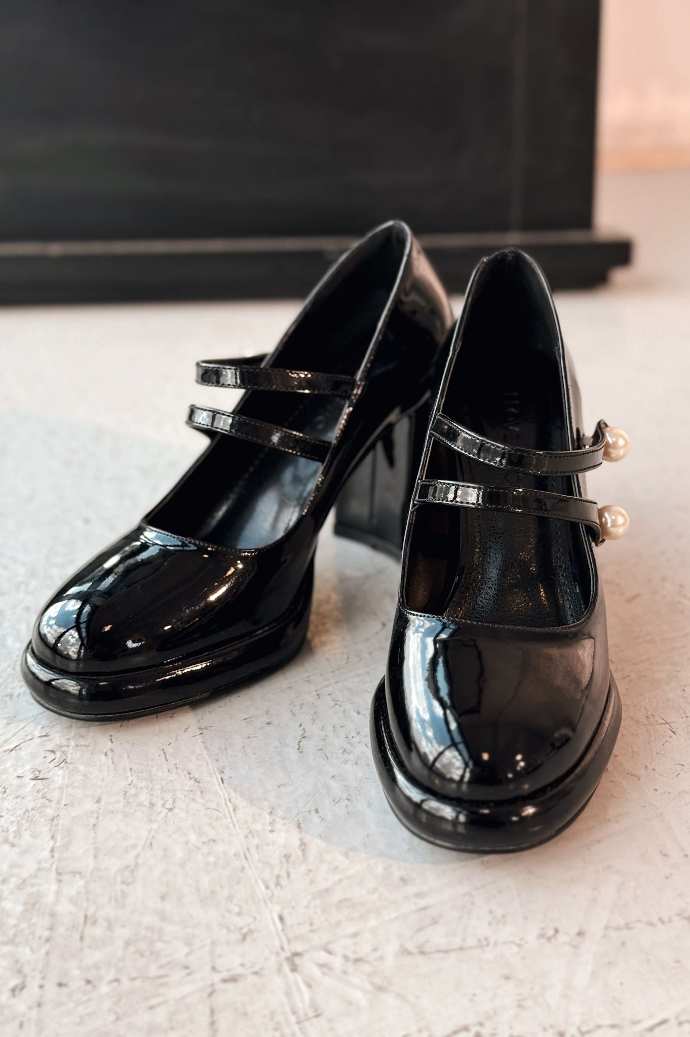 Negso Rugan İnci Detaylı Siyah Plarform Topuklu Mary Jane