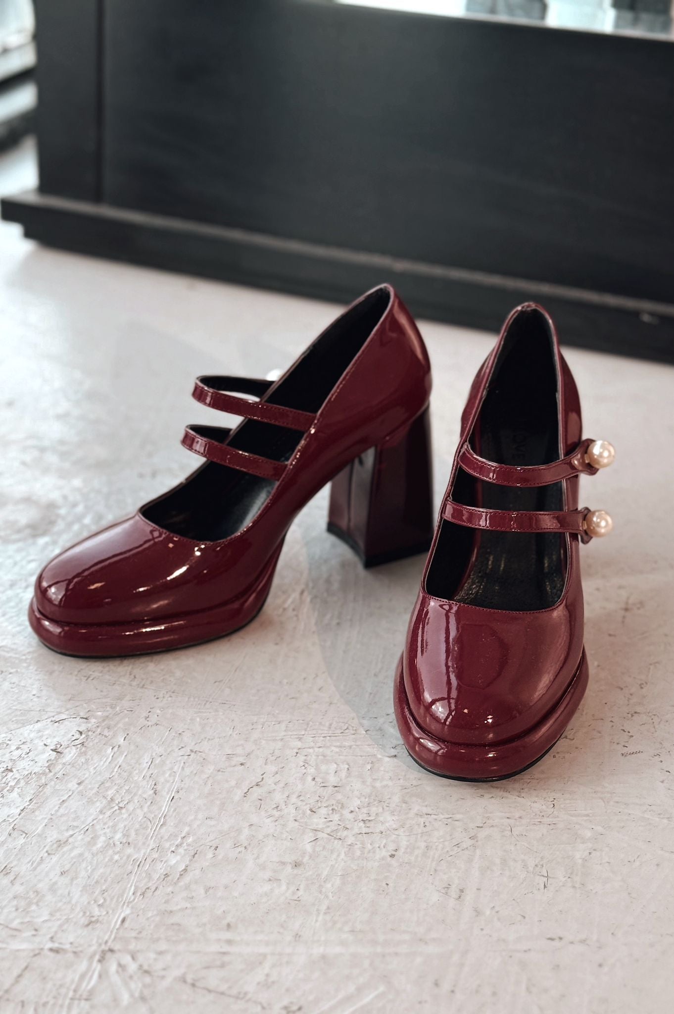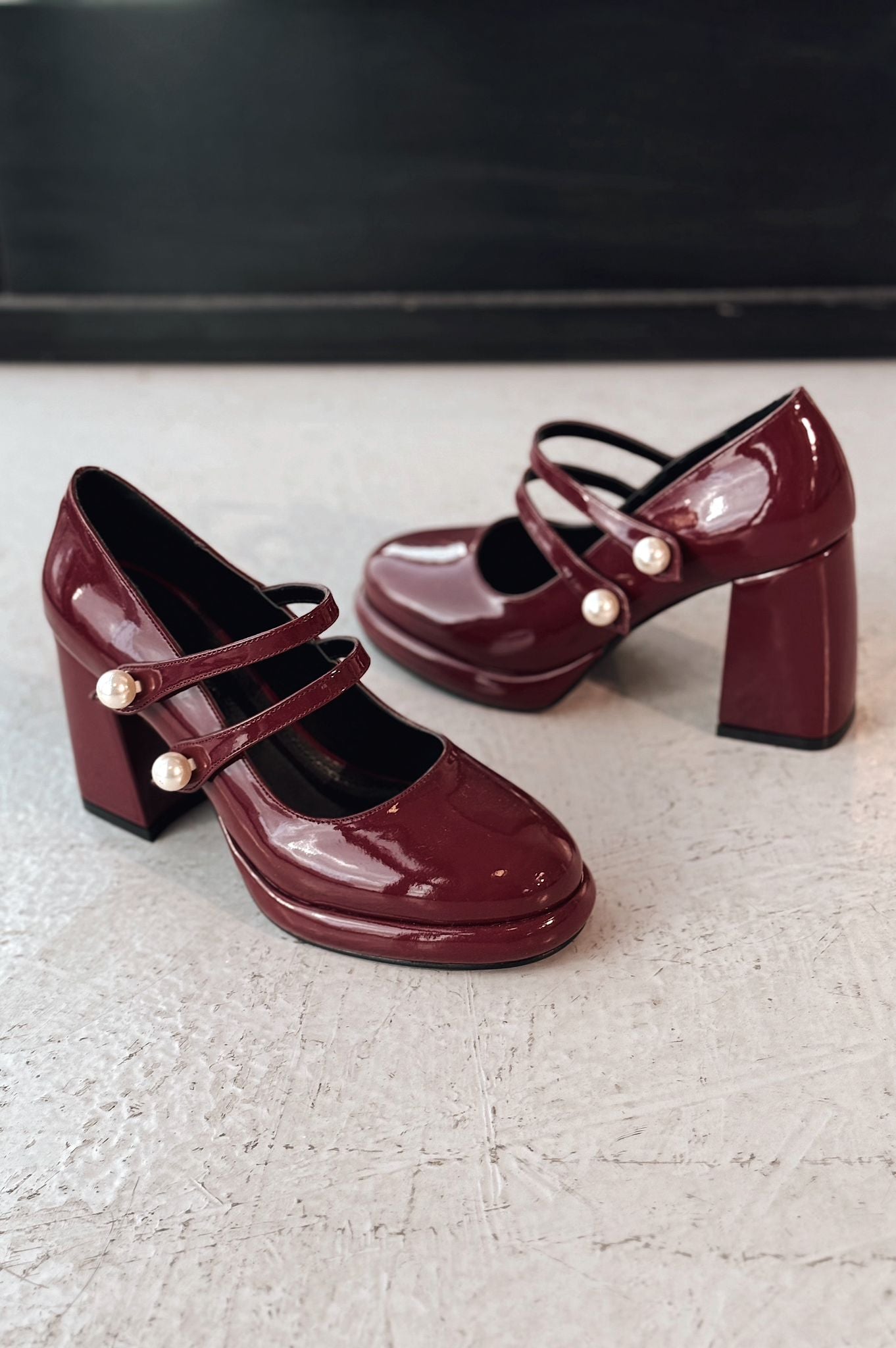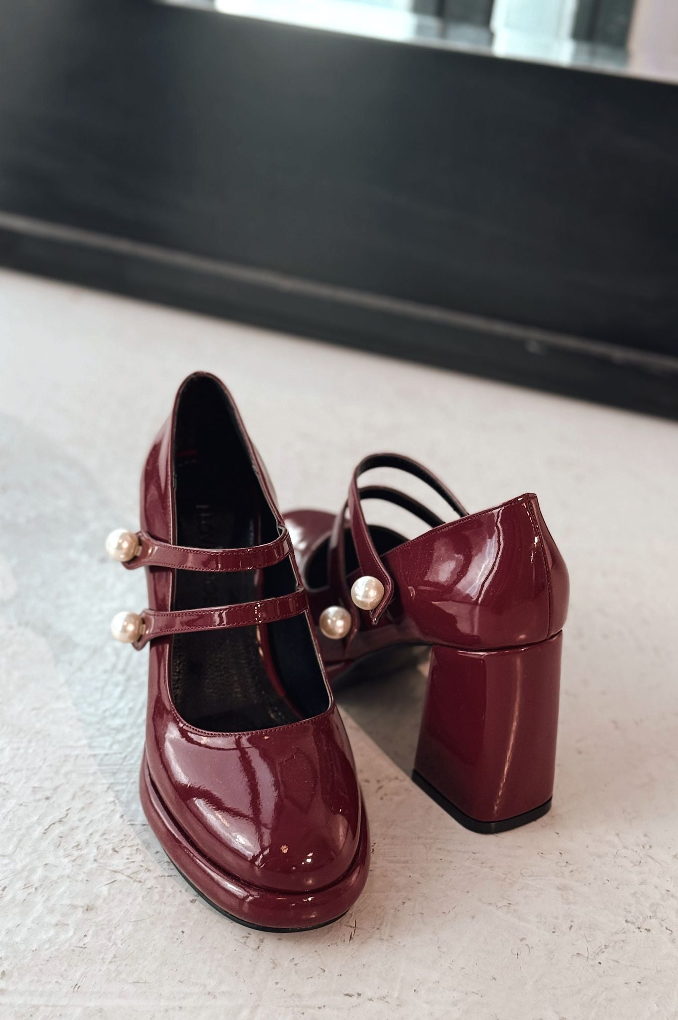 Negso Rugan İnci Detaylı Bordo Plarform Topuklu Mary Jane