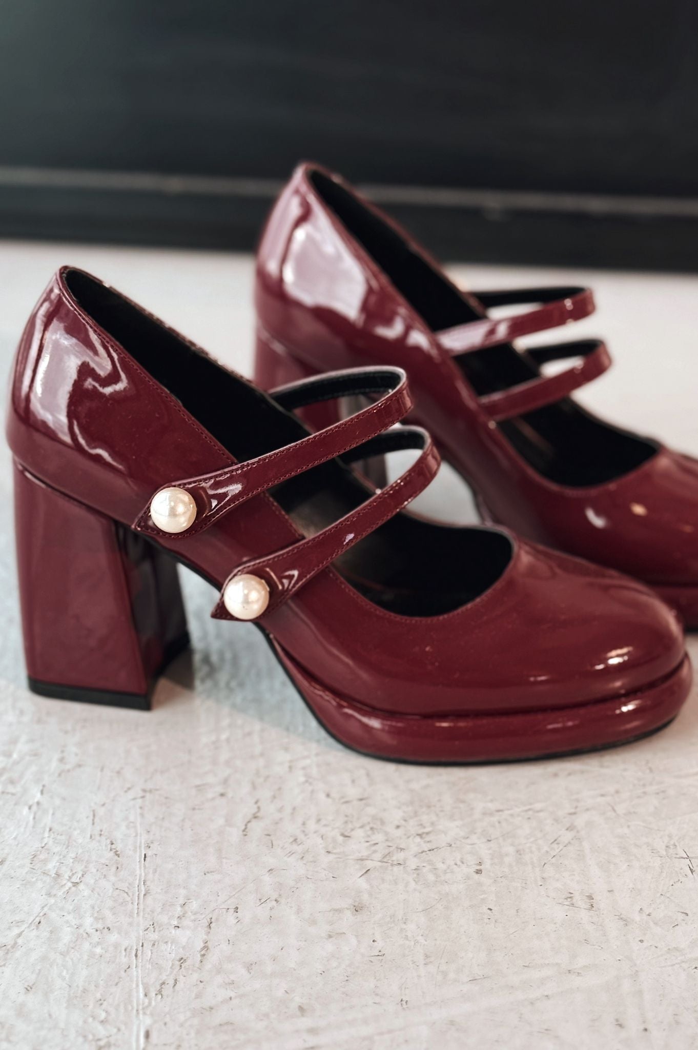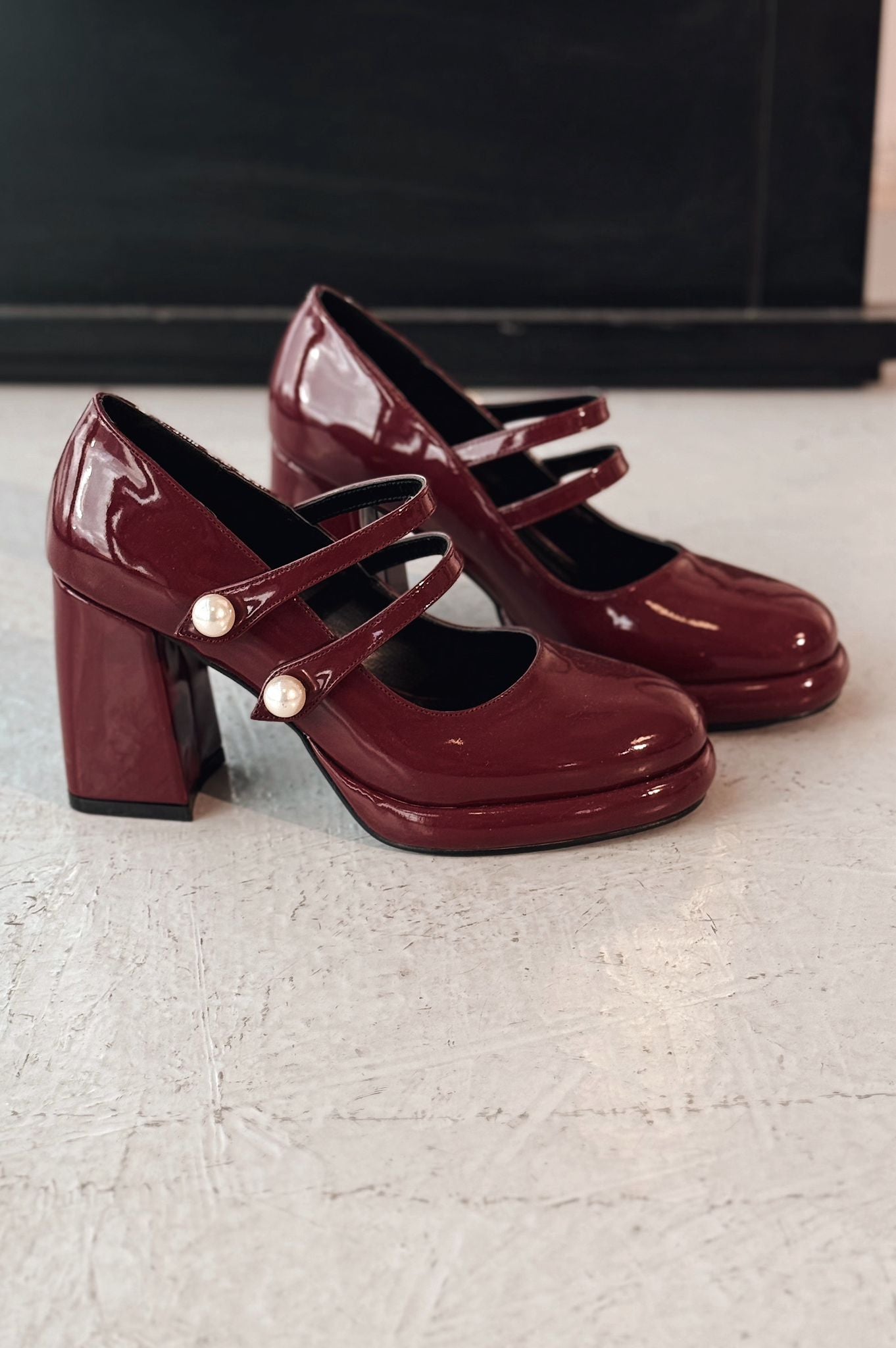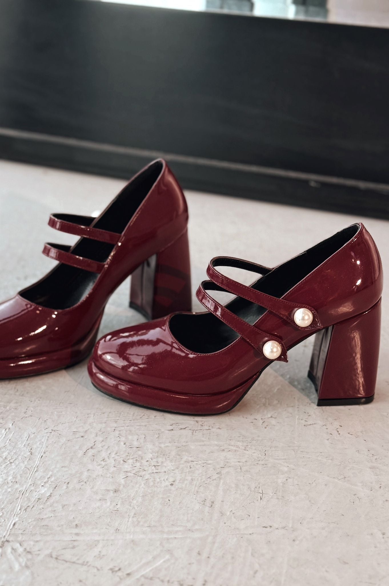 Negso Rugan İnci Detaylı Bordo Plarform Topuklu Mary Jane