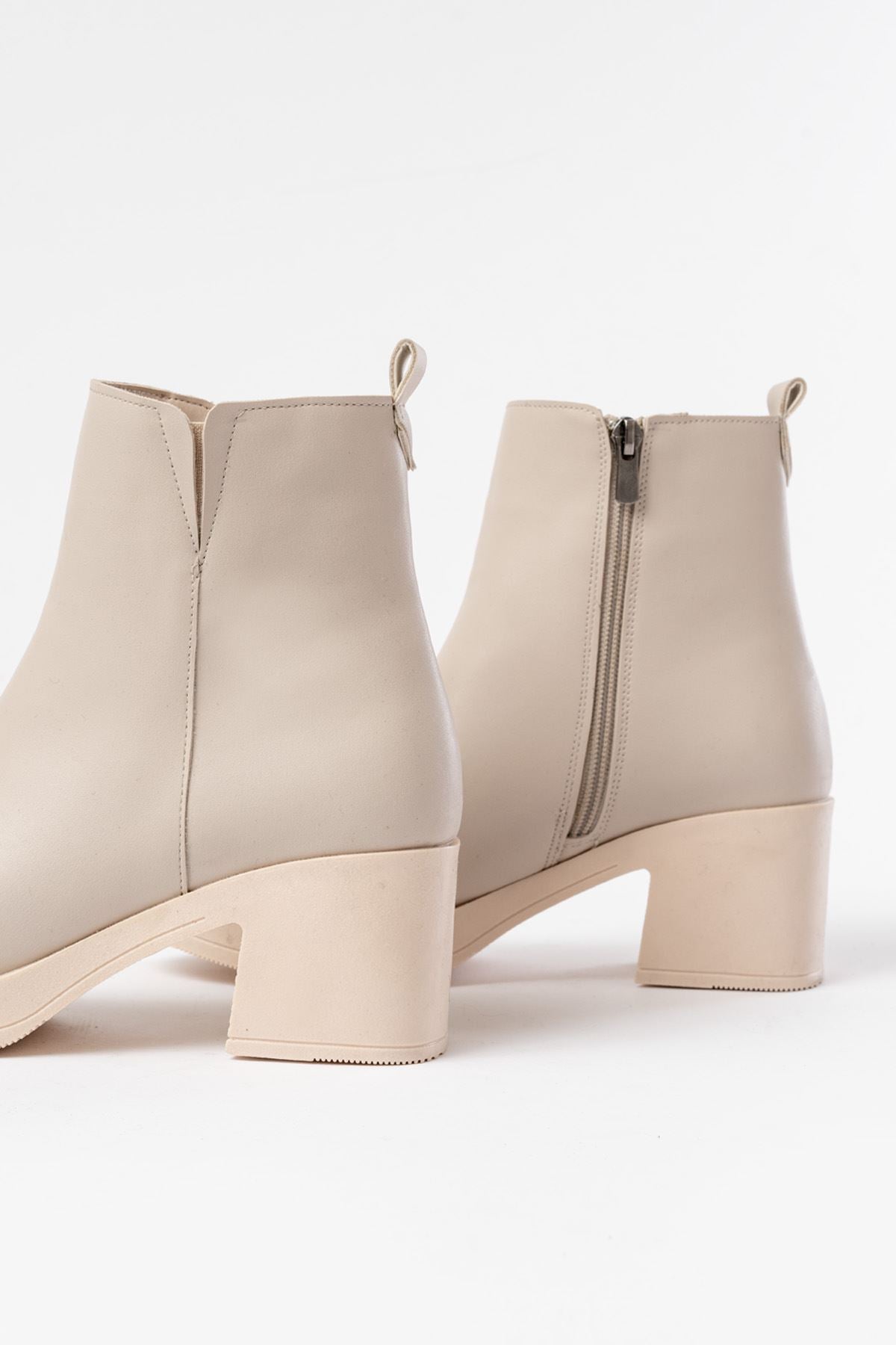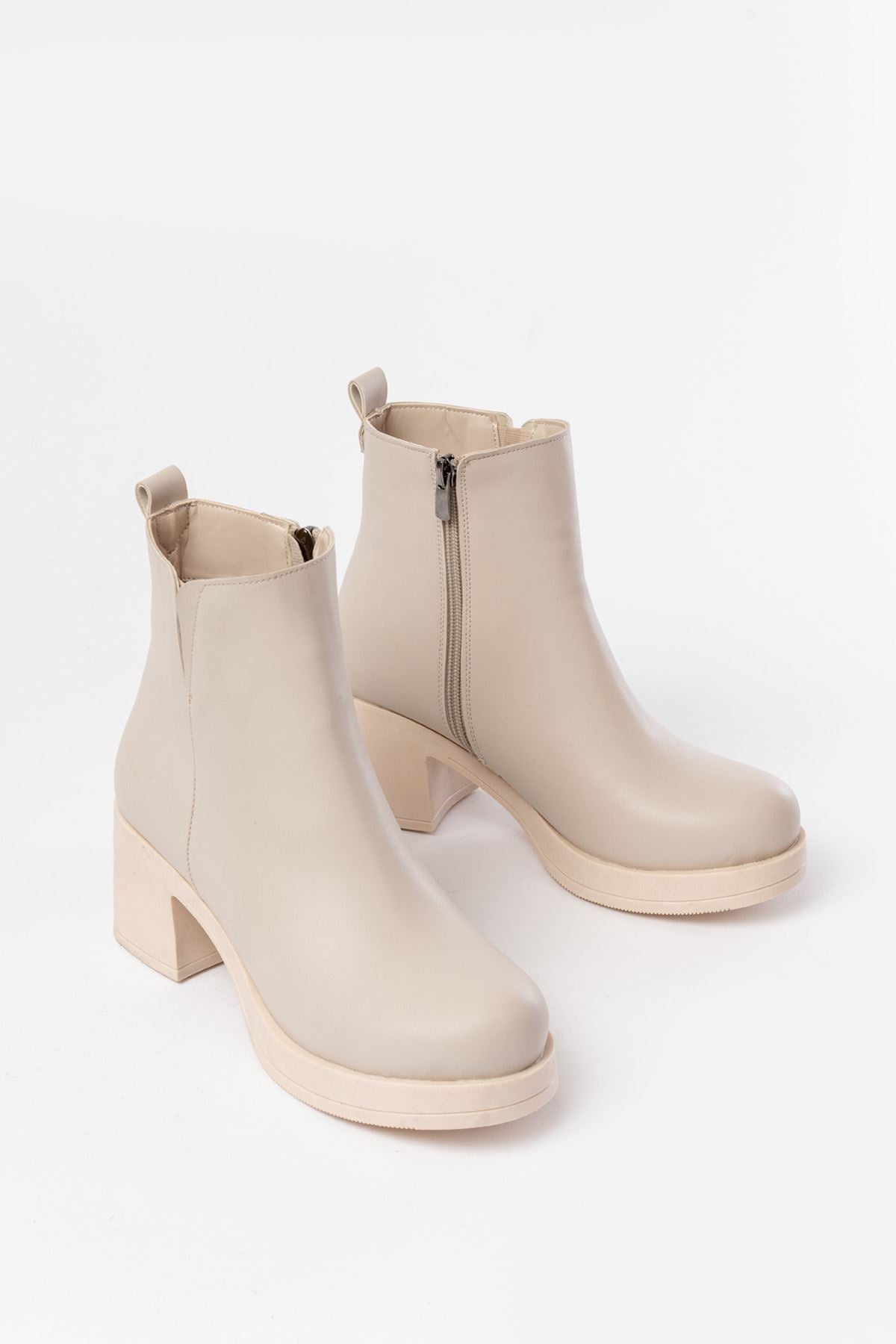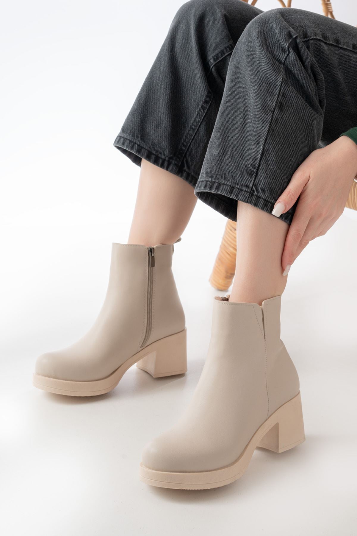 Nexora Bej Lastikli Fermuarlı Kalın Topuklu Günlük Kadın Bot