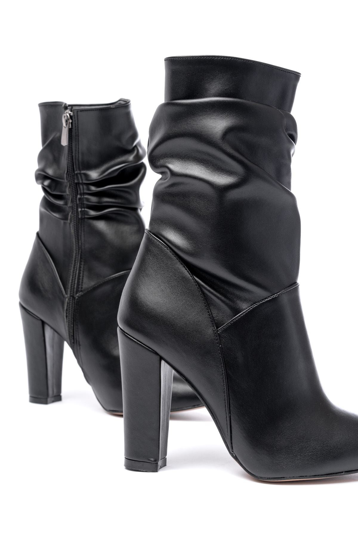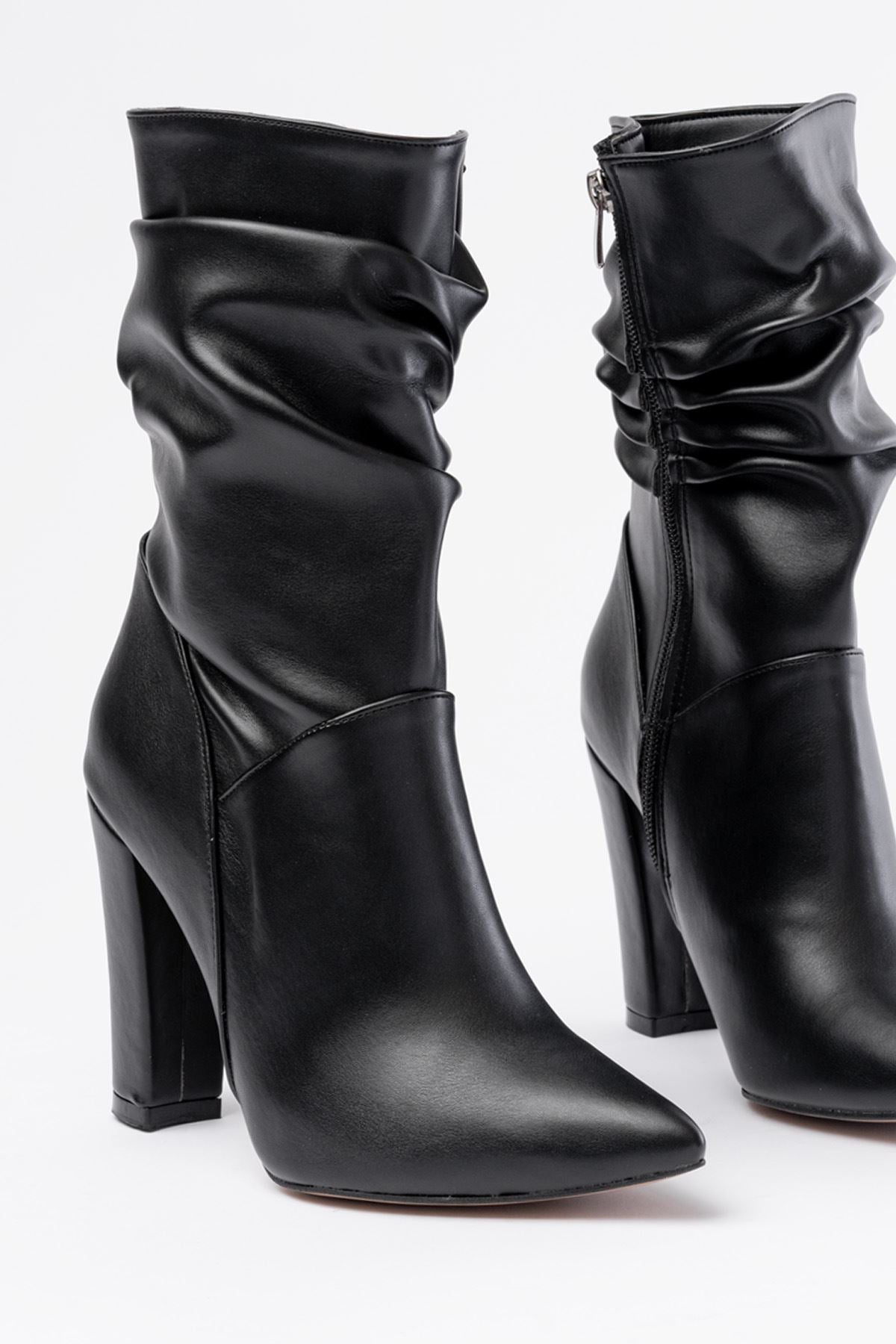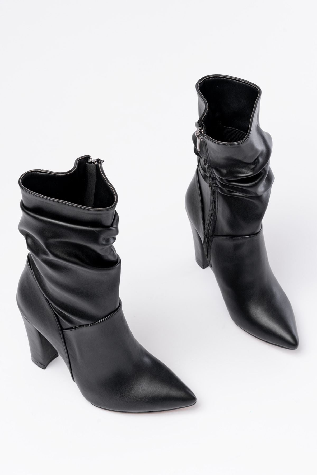 Noliro Siyah Yüksek Kalın Topuklu Körüklü Fermuarlı Kadın Bot