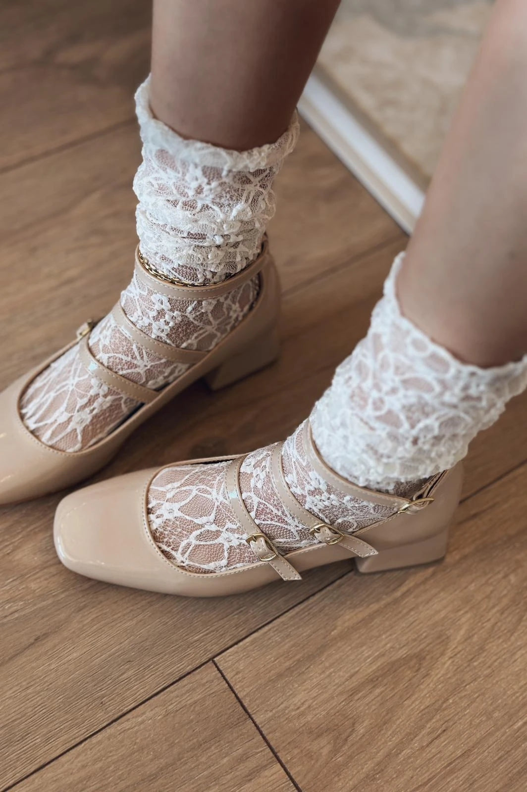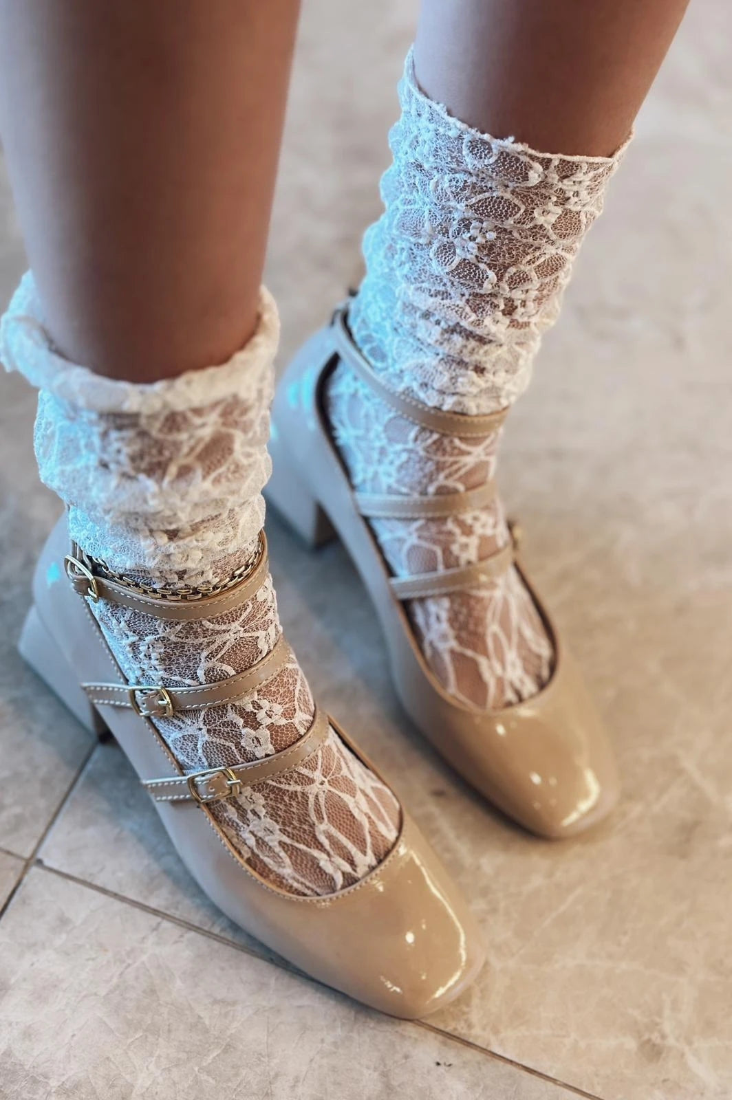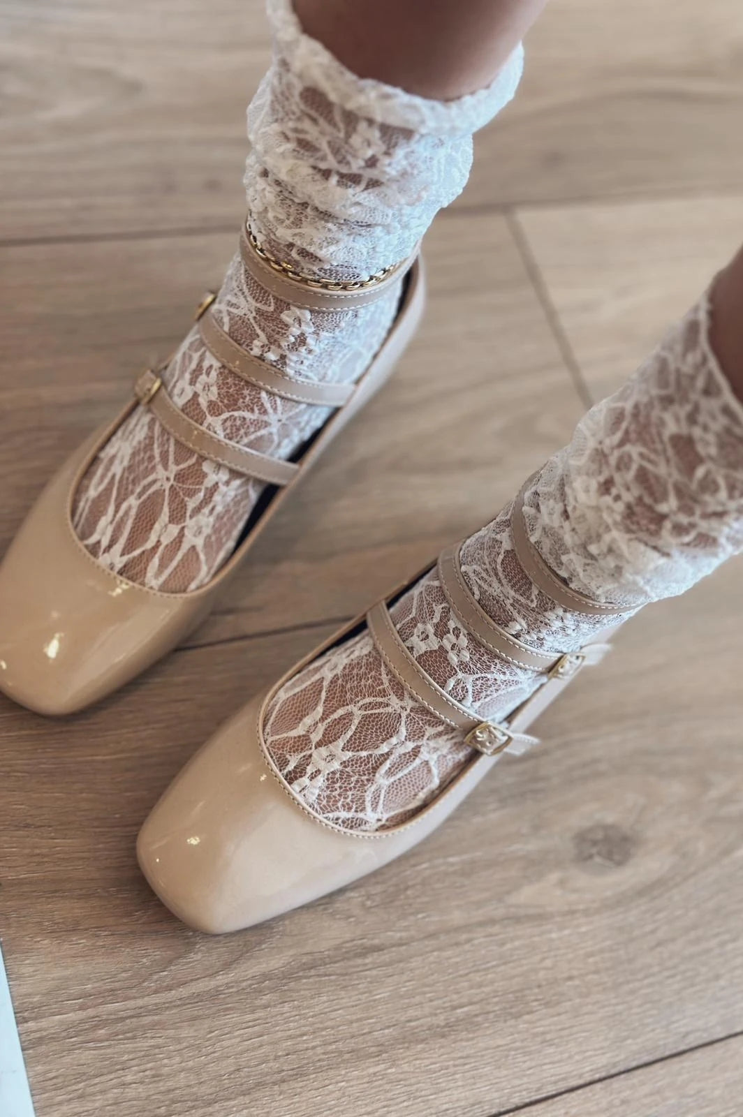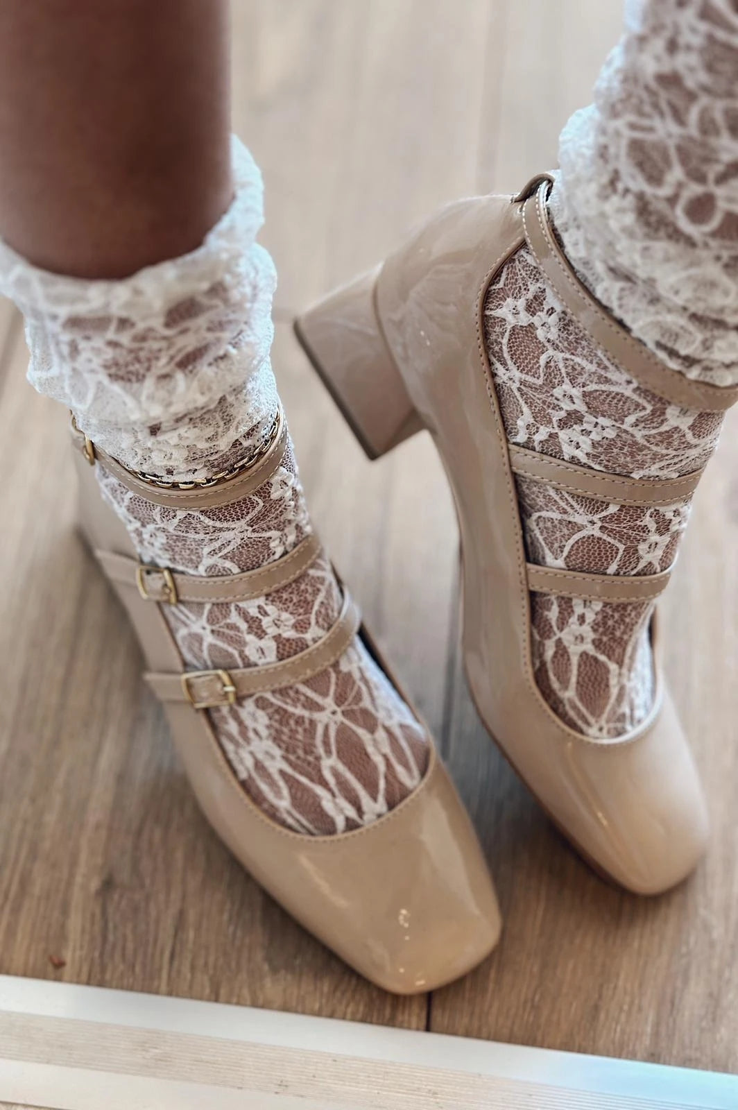 Noteras Rugan Mary Jane Kadın Topuklu Ayakkabı Bej